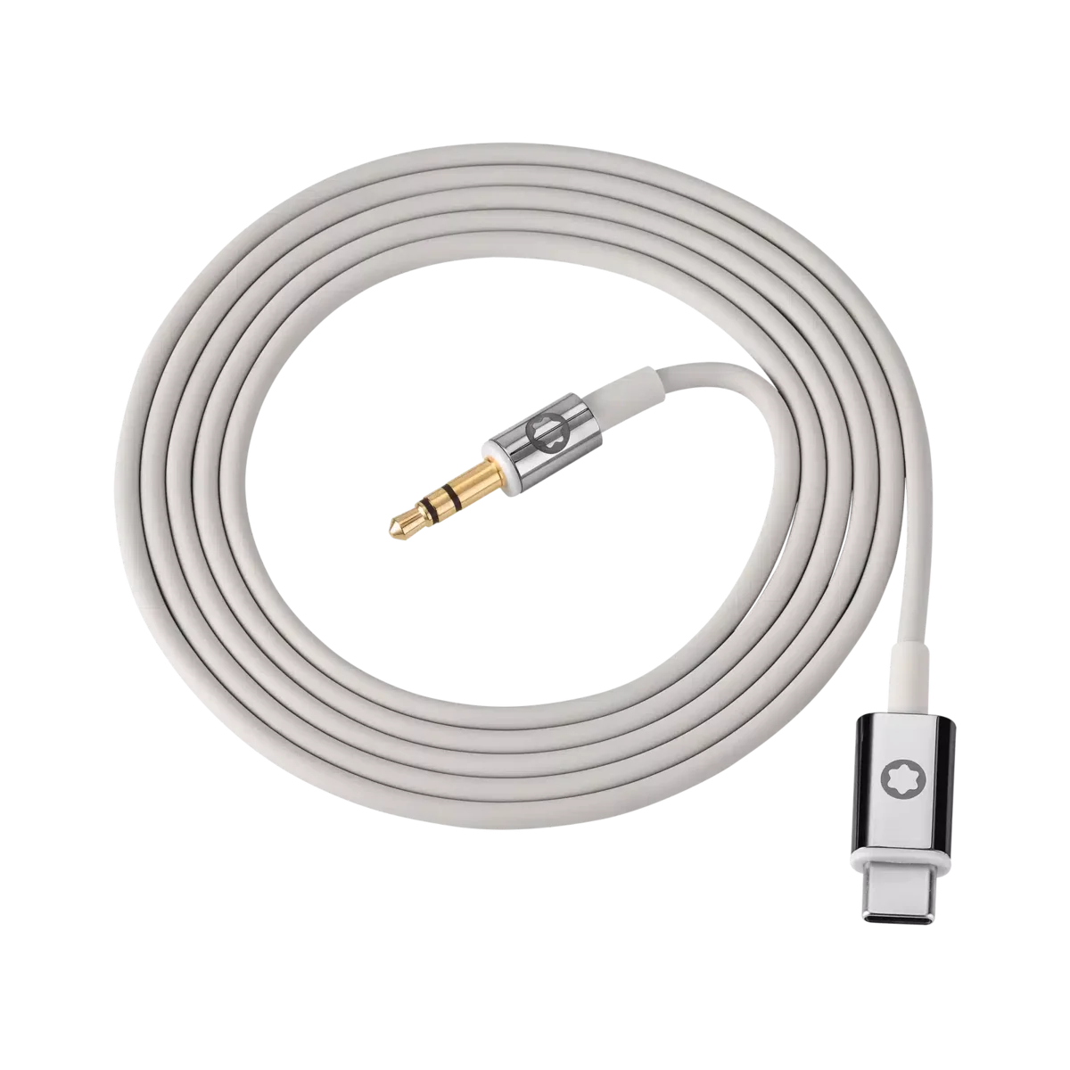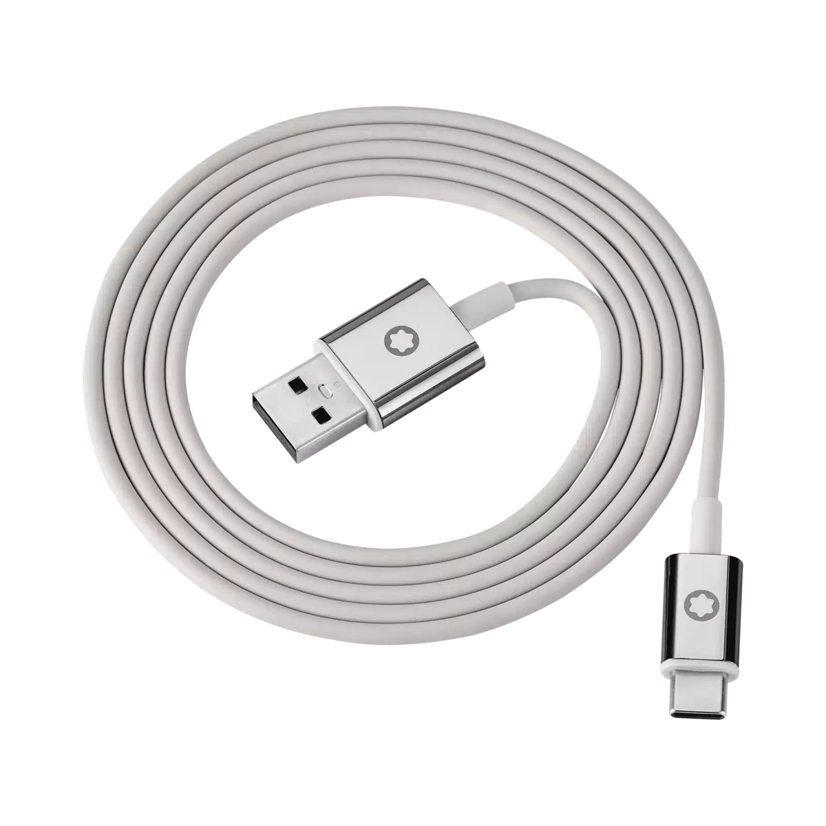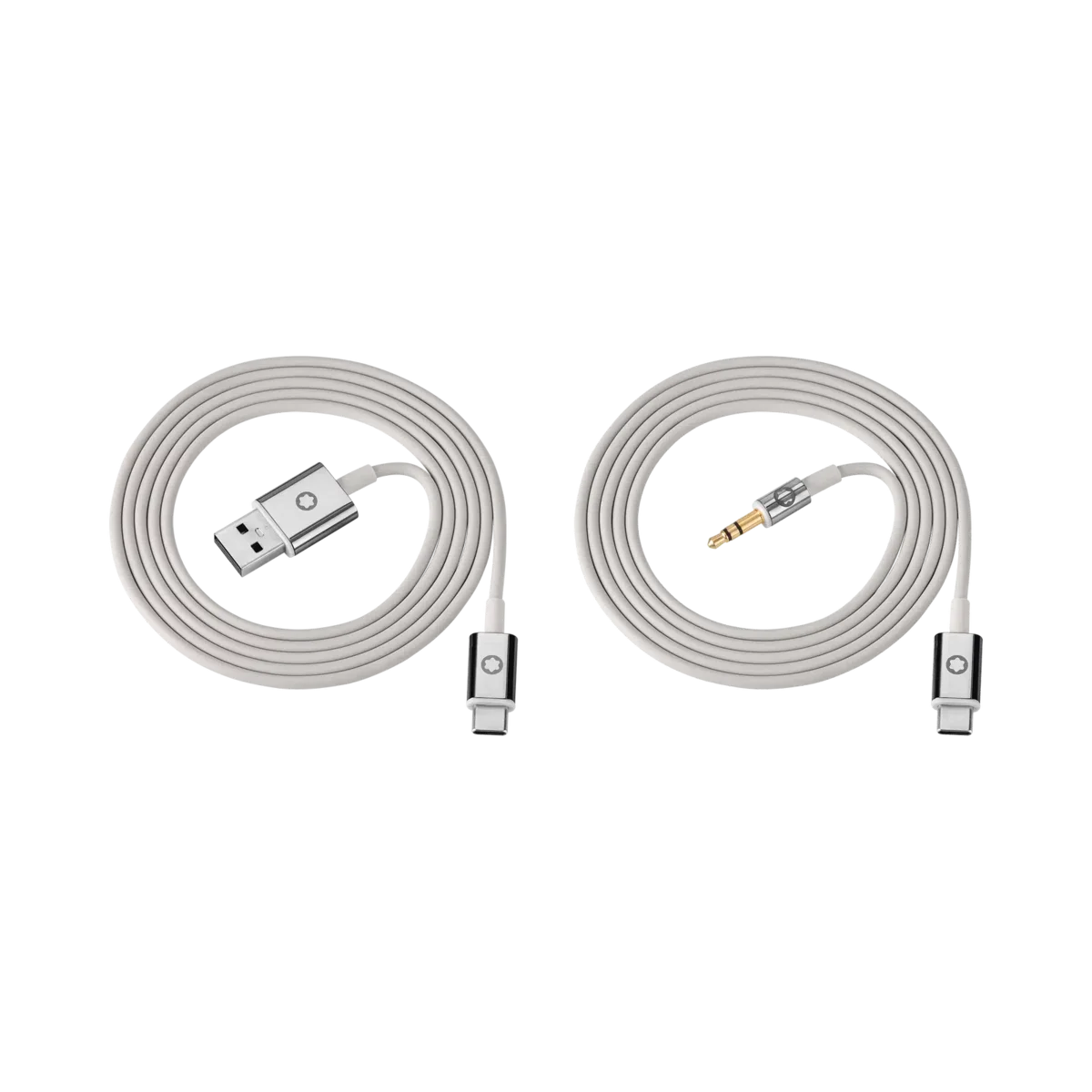 Ekstra kabelsæt til dine Montblanc MB 01-hovedtelefoner, der indeholder et gråt USB-C-opladerkabel og et gråt lydkabel.