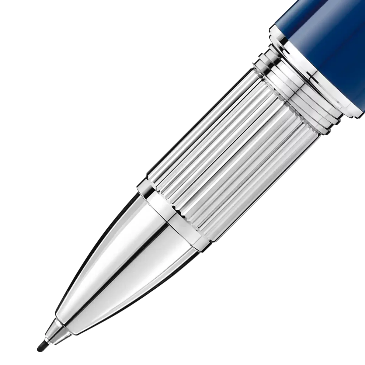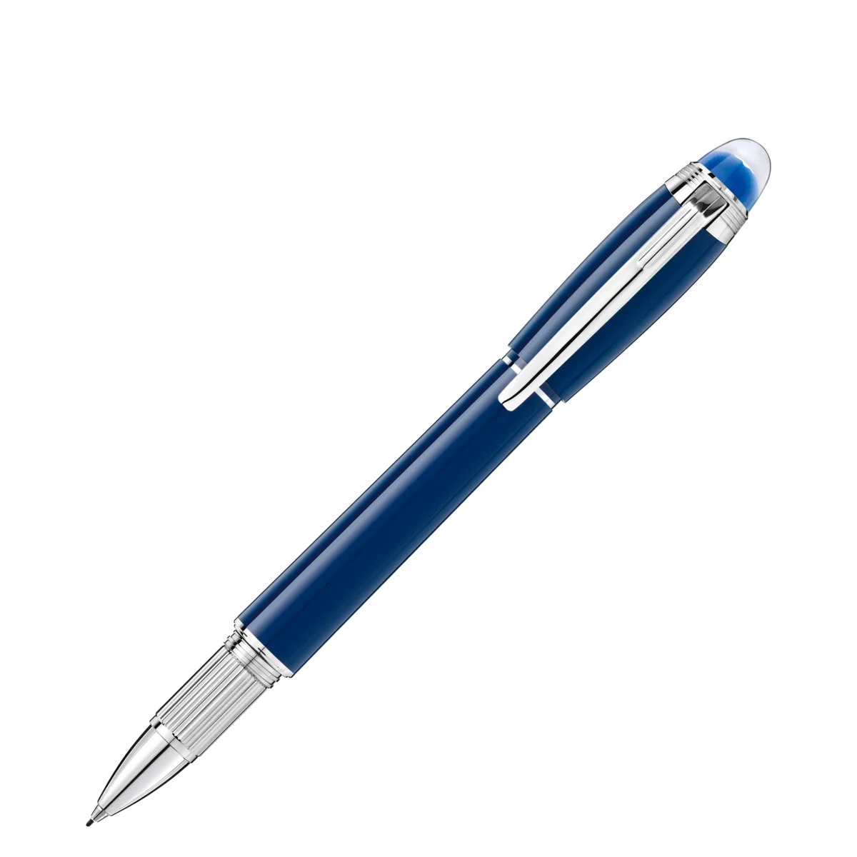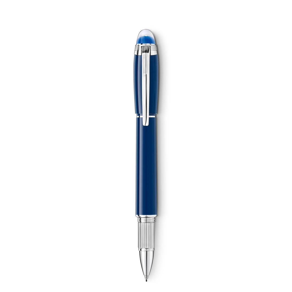 StarWalker Blue Planet handler om at vandre blandt stjernerne, udforske kosmos og fremmede galakser og være en del af et af de mest mystiske og magtfulde eventyr, menneskeheden nogensinde har begivet sig ud på: udforskningen af rummet. Når vi zoomer ind på vores planet Jorden, henter vi inspiration fra vandet, livets kilde. StarWalker-emblemet har en blå, gennemskinnelig kuppel med en stjerne, der svæver ovenpå, som symboliserer Jorden, der stiger op over månens horisont set fra månen. StarWalker Precious Resin Fineliner leveres med platinbelagte beslag og en blå krop og hætte af ædelharpiks. Identifikationsnummer MB132440 Fysisk vægt 28,03 g Dimensioner 135,4 mm * 14,9 mm