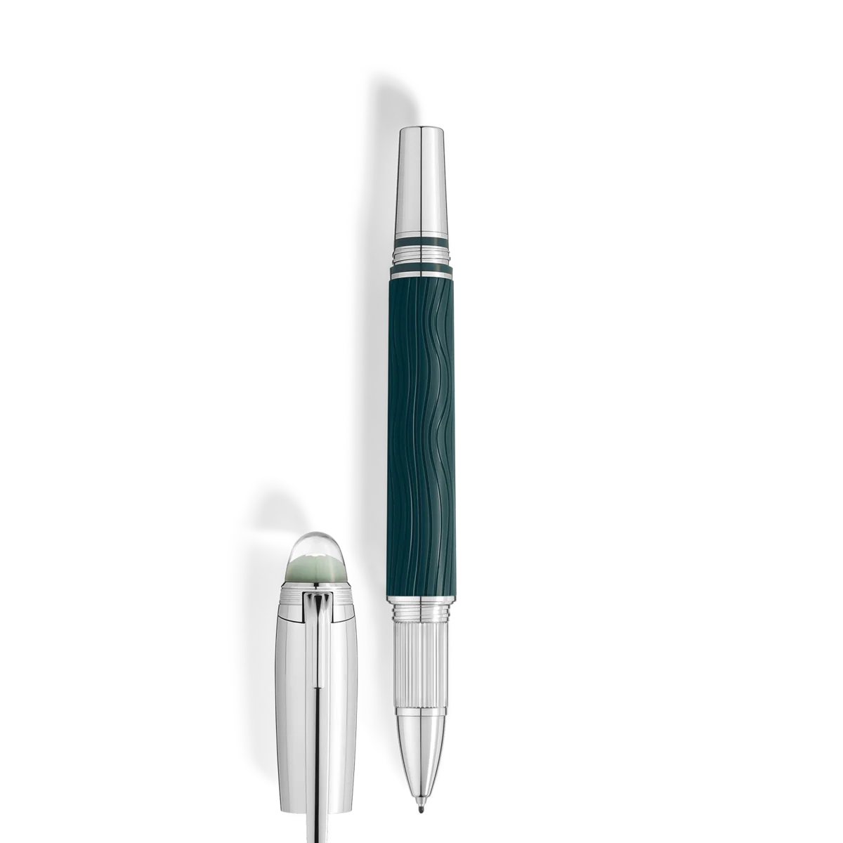 StarWalker PolarGreen bringer nordlysets skønhed til live. På Jorden kan mennesker kigge op mod himlen og blive transporteret til et eventyrligt rige, når de er vidne til det storslåede skue. Kuppelen på hætten er lavet af gennemsigtig harpiks og lyser i svagt lys, hvilket minder om de fortryllende dansende nordlys på nattehimlen. Bølgemønsteret på den mørkegrønne ædle harpiks på pennen fanger på fornem vis lysets spektrale glans, og den matte finish fremhæver de smukke refleksioner. Som prikken over i’et har Fineliner platinbelagt hætte og beslag. Identifikationsnummer MB132907 Fysisk vægt 38,52 g Dimensioner 135,5 mm * 13,1 mm