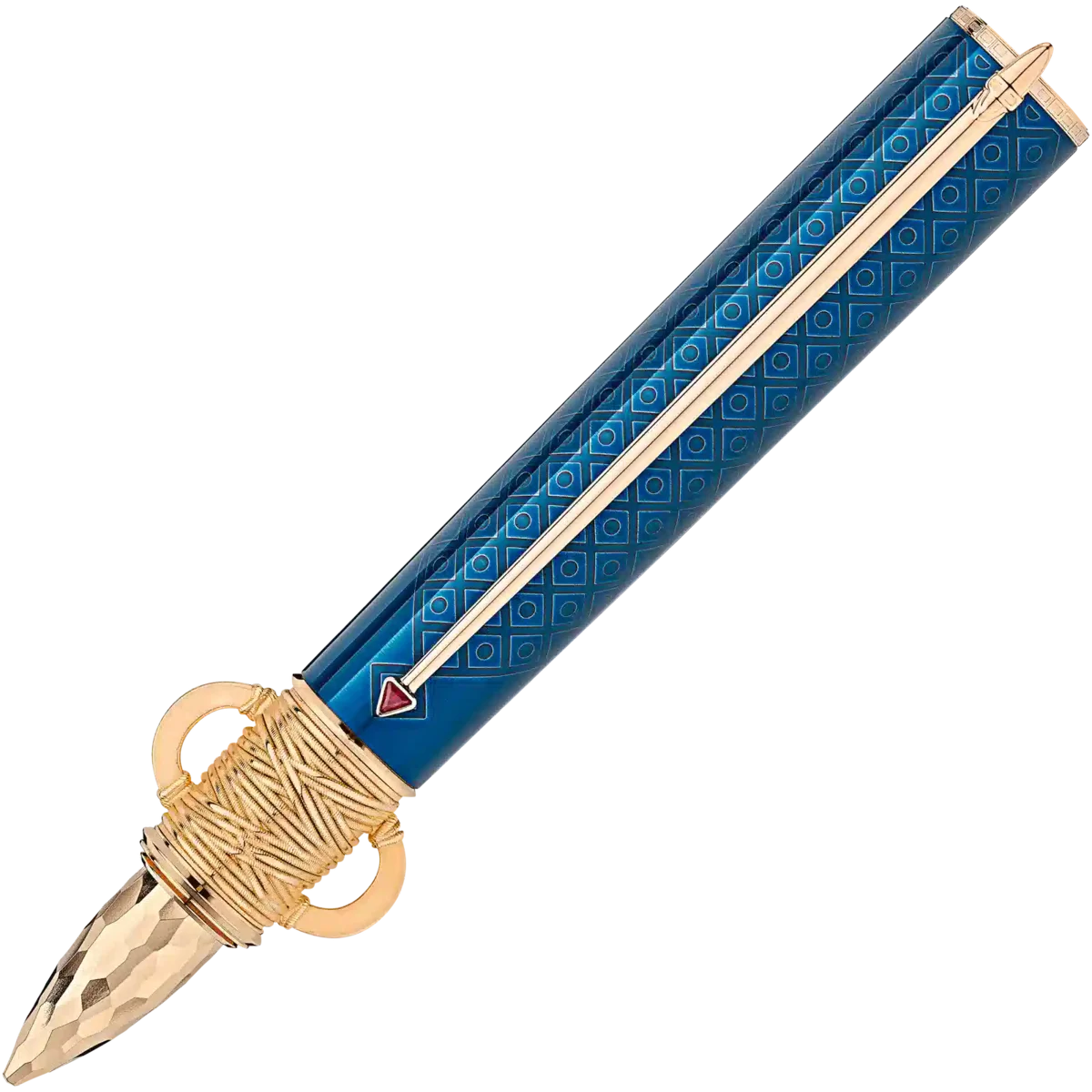 Moctezuma I blev kronet til hersker over det store aztekiske imperium i 1440 og indledte dermed aztekernes guldalder. Under hans regeringstid formede han det billede af den aztekiske stat, som vi kender i dag – en stat rig på kultur og mytologi. Hovedstaden Tenochtitlán, det nuværende Mexico City, blomstrede under hans styre. Montblanc Patron of Art Homage to Moctezuma I Limited Edition 4810 med signaturbelagte guldbeslag er dedikeret til denne suveræne hersker over en af de mest særlige kulturer i verdenshistorien. Det overordnede design er inspireret af en atlatl, et aztekisk spydkasteapparat. Formen på keglen, der er forfinet med en hammerfinish, er baseret på en aztekisk offerkniv med en obsidianklinge. Lakfarverne – petrol og karminrød – er inspireret af farverne på den kongelige kappe. De to hieroglyffer, der pryder hætten, symboliserer årene af Moctezuma I’s regeringstid. Den håndlavede Au 750 massivt guldspids er prydet med en fin gravering inspireret af den aztekiske glyf for byen Tenochtitlán: en trearmet kaktus med en kongelig diadem og to ruller.