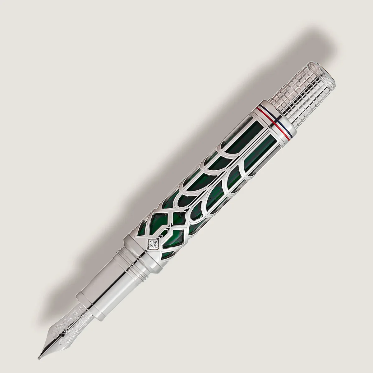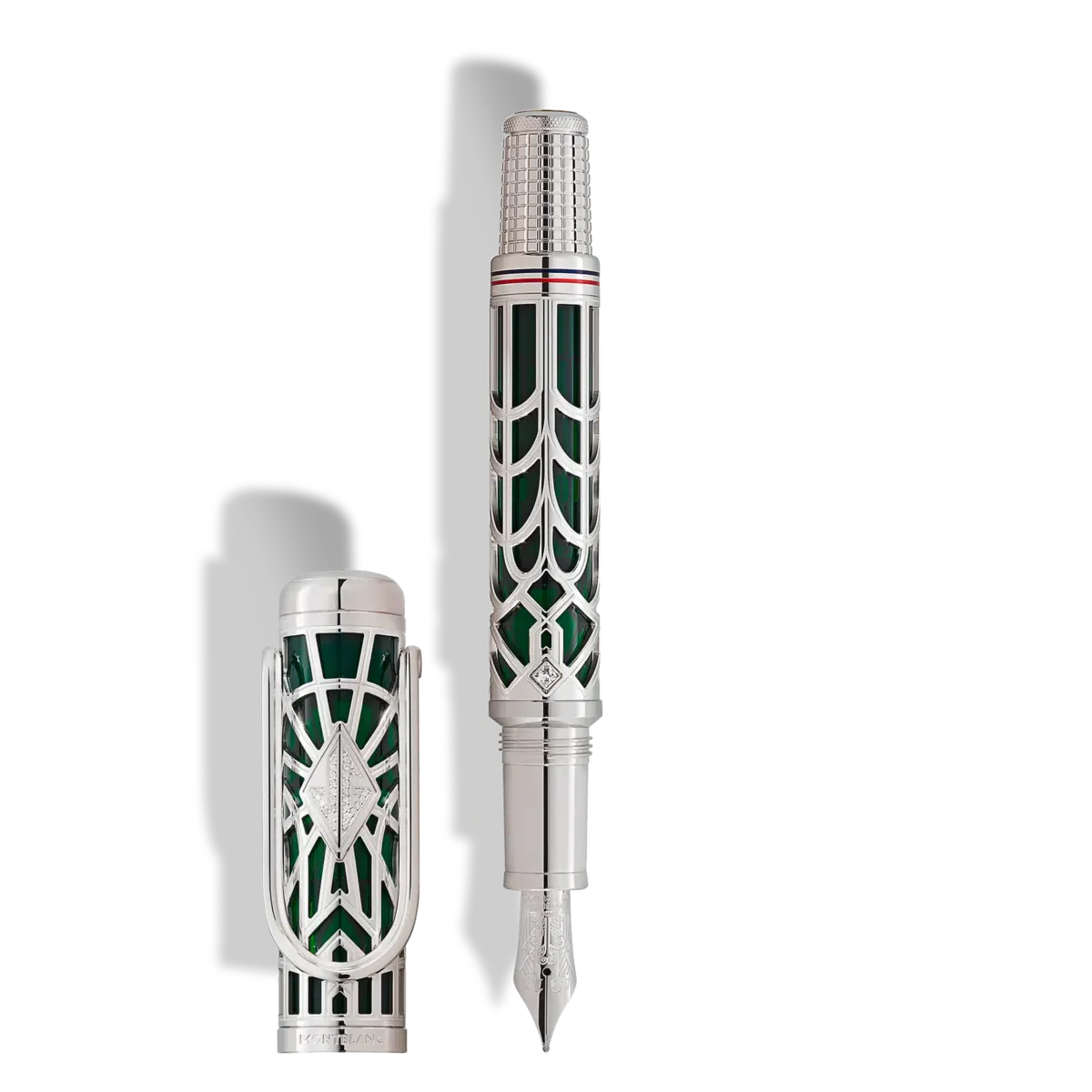Visse romaner går over i litteraturhistorien og bliver samtidig symbolet på en hel epoke. F. Scott Fitzgeralds ‘The Great Gatsby’ er en sådan perle i moderne amerikansk litteratur. Romanen, der blev udgivet i 1925, tegner et fascinerende billede af jazzalderen og de brølende tyvere, en tid med enestående velstand og selvforkælelse. Det pulserende New York City, de overdådige palæer på Long Island og de blændende fester i det fine samfund danner baggrund for historien om Jay Gatsby, en mystisk millionær, der ikke vil stoppe for noget for at genvinde kærligheden fra sin fortabte ungdomskæreste, Daisy Buchanan. Montblanc hylder dette ofte filmatiserede litterære mesterværk, der også er synonymt med den glamourøse art deco-verden, med Great Characters Homage to The Great Gatsby Limited Edition 30. Dekadencen i de brølende tyvere samt ønsket om luksus og overdådighed, der kendetegnede art deco-æraen, er fanget i mange detaljer i designet af Limited Edition 30. Skeletterede symmetriske buer og linjer er udformet af massivt Pt 950 platin, det ultimative symbol på rigdom og status, som ofte blev brugt af datidens berømte juvelerer til deres højkvalitets kreationer. De afslører den dybe grønne, gennemskinnelige overflade nedenunder, der repræsenterer det grønne lys på kajen ved Daisys hus, som står for længslen efter en bedre fremtid og Gatsbys ønske om at vinde Daisy tilbage igen. Denne symbolik afspejles også i de grønne tsavoritter, der er dygtigt håndsatte i form af Montblanc-emblemet i den massive platin-kappe. Den berusende, men tilsyneladende illusoriske magt, som penge har, symboliseres af den platinbelagte klips i form af en pengeklips. Den afrundede åbning er dekoreret med massive Pt 950 platin, diamantbesatte initialer af Jay Gatsby som et rombeformet Art Deco-monogram. Prinsesse-slebet diamanter på hætten og skaftet afrunder designet. En yderligere hilsen til art deco-bevægelsen er den rent lineære gravering på den håndlavede, rhodiumbelagte, massive Au 750 guldspids. Inspireret af de dengang hippe art deco-flasker imiterer den kunstfærdige gravering på keglen den graverede skruelåg på en sådan flaske. Myten om den amerikanske drøm refereres til ved de fine ringe i farverne fra det amerikanske flag, der pryder keglen. Et detaljeret motiv af en original amerikansk fredsdollar, der blev præget mellem 1921 og 1935, hvilket afspejler romanens periode, er kunstfærdigt indarbejdet i keglen.Tallet 30 er betydningsfuldt på flere måder. Det henviser til det begrænsede antal Great Characters Homage to The Great Gatsby Limited Edition 30, som markerer 30-års fødselsdagen for Nick Carraway, vores trofaste guide til den overdådige verden i East og West Egg. Midt i spændingen ved en afgørende konfrontation mellem Gatsby og hans ærkefjende Tom Buchanan, indser Nick, at det er hans fødselsdag: “Nej… Jeg har lige husket, at det er min fødselsdag.” Jeg var tredive. Den uhyggelige, truende vej mod et nyt årti strakte sig foran mig. Tallet 30 henviser også til Tom Buchanan. Daisys gådefulde ægtemand og Gatsbys rival er på samme alder som vores fortæller. Da Nick tegner et portræt af Toms komplekse karakter, beskriver han ham således: Han havde forandret sig siden sine år i New Haven. Nu var han en kraftig, stråhåret mand på tredive år med en ret hård mund og en hovmodig fremtræden.