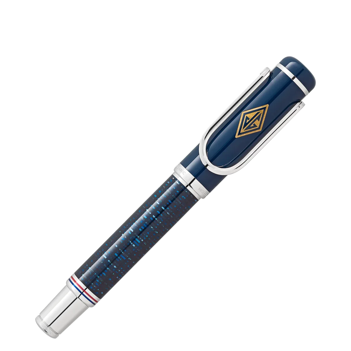Visse romaner går over i litteraturhistorien og bliver samtidig symboler på en hel epoke. F. Scott Fitzgeralds ‘The Great Gatsby’ er en sådan perle i moderne amerikansk litteratur. Romanen, der blev udgivet i 1925, tegner et fascinerende billede af jazzalderen og de brølende tyvere, en tid med enestående velstand og selvforkælelse. Det pulserende New York City, de overdådige palæer på Long Island og de blændende fester i det fine samfund danner baggrund for historien om Jay Gatsby, en mystisk millionær, der ikke vil stoppe for noget for at genvinde kærligheden fra sin fortabte ungdomskæreste, Daisy Buchanan.Det blændende New York i Gatsby-æraen, hvor de glitrende art deco-skyskrabere i den blå aftenhimmel inspirerede designet af Great Characters Homage to The Great Gatsby Special Edition. Skabt som en hyldest til et tidligt Montblanc-skriveinstrument fra art deco-æraen, synes overfladen på pennen, der er fremstillet ved hjælp af en særlig teknik, at reflektere den blomstrende bys lyst oplyste højhusfacader om natten. Det er ikke fiktion, men faktisk lyser det fluorescerende Montblanc-emblem i hætten som det grønne lys på kajen ved Daisy’s hus i ‘The Great Gatsby’. Det opfanger og lagrer lys om dagen, så det lyser i mørket. Penges åbenlyse magt symboliseres i denne udgave af den platinbelagte klips, der har form af en pengeklips. Den afrundede åbning prydes af Jay Gatsbys initialer i form af et rombeformet, guldbelagt Art Deco-monogram. Myten om den amerikanske drøm og designet af de ofte stilfulde lommelærker fra art deco-perioden refereres til ved keglen, der imiterer den indgraverede skruelåg på en lommelærke, og de fine ringe i farverne fra det amerikanske flag, der omgiver den. Essensen af den opfyldte amerikanske drøm afsløres, når man fjerner hætten på udgaven og får et glimt af den prægede, massive Au 585 rhodiumbelagte guldspids. Denne er dekoreret med et billede af Jay Gatsbys luksuriøse bil, som F. Scott Fitzgerald entusiastisk beskriver som værende af “en rig cremefarve, skinnende med nikkel, … og terrasseret med et labyrint af forruder, der spejlede et dusin sole.”