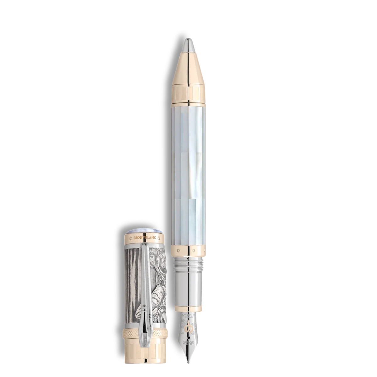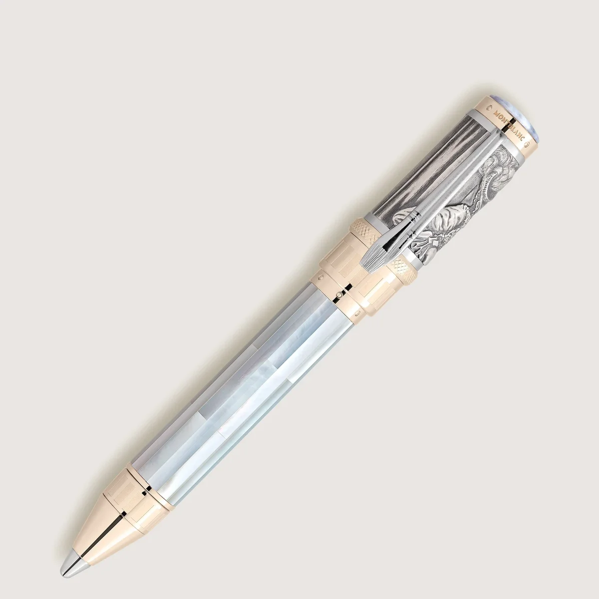Gennem historien har store kunstnere udtrykt den menneskelige oplevelse i et universelt sprog af form og skønhed. Montblanc Masters of Art-kollektionen hylder deres evige bidrag til stræben efter perfektion i kunsten – en stræben, som Montblanc både fejrer og deltager i. Pierre-Auguste Renoir er en af de mest fremtrædende forløbere for modernismen, hvis solbeskinnede malerier var med til at sætte tonen for en hel bevægelse: impressionismen. Som en hyldest til denne vigtige pioner inden for fransk kunst og mesterværkerne (såsom Dans på Moulin de la Galette fra 1876 og Frokost for bådfolket fra 1881) fra hans såkaldte ‘période nacrée’ – den perleagtige periode – har Montblanc skabt Masters of Art Homage to Pierre-Auguste Renoir Limited Edition 161.Den perlemorsagtige glans fra denne ‘perleperiode’ afspejles i det ukonventionelle valg af materialer til denne limited edition: fremstillet af massivt Au 750 guld og Ag 925 sterlingsølv, kombineret med indlægninger af perlemor, der selv er dannet lag på lag under havets bølger. Den resulterende struktur, hvor hvert lag bryder lyset og skaber et iriserende farvespil, giver perlemor en bemærkelsesværdig hårdhed og æstetisk tiltrækningskraft – egenskaber, der gjorde det til et af de mest fascinerende materialer for juvelerer i Belle Époque. Et af værkerne fra Renoirs ‘perleperiode’ er Kvinde med hat, færdiggjort i 1891. Iført en munter hat med bred skygge virker den unge kvinde fordybet, måske i en melodi, der afspejler den mesterlige komposition af farver, Renoir bruger i dette portræt: hendes fine træk, den let slørede baggrund eller det hvide i hendes bluse med flæser, der skifter fra lyse sølvfarvede accenter til en mørkere guldfarve og en delikat lilla nuance. Denne farvepalet afspejles i hele skriveinstrumentet: i Montblanc-emblemet af perlemor, der er indfattet i den skinnende blåviolette chalcedon med striber på den kunstfærdigt udformede hættekappe; i de solide Au 750 guldbeslag og det uovertrufne tredimensionelle relief i Ag 925 sterlingsølv på hætten; i iriseringen af perlemorindlæggene på skaftet. Hætten, der er lavet af massivt 750 guld, er indgraveret med året 1888, der markerer begyndelsen på Renoirs ‘perleperiode’. Et iøjnefaldende træk er den platinbelagte klips i form af to pensler, af den type, Renoir brugte til at skabe både de fine detaljer og de mere udstrakte flader, der udgjorde hans mesterværker.Som en hyldest til Renoirs tegnekunst er en sølvspids af blødt Ag 925 sterlingsølv integreret i den massive Au 750 guldkegle, så man selv kan lave sølvspids-skitser. Renoir brugte en kombination af maleteknikker i sin ‘perleperiode’ til at skabe motivet til ‘Unge piger ved klaveret’. For at understrege balancen og den æstetiske appel i scenen lod Renoir sig lede af princippet om det gyldne snit. Denne ‘guddommelige proportion’ (1,618…), løftet om perfekt skønhed ved hjælp af matematik, findes både i naturen og i kompositionen af mange af verdens mest beundrede kunstværker – og beskriver også forholdet mellem hætten og skaftets størrelse i Masters of Art-samlerkollektionen. Denne nøgle til harmoni er afbildet med det græske bogstav Phi, der pryder den delvist rhodiumbelagte, håndlavede, massive Au 750 guldspids og er omgivet af delikate blomsterbuketter, som så ofte er et kendetegn ved Renoirs vigtigste værker. Med henvisning til det gyldne snit, der ligger til grund for den harmoniske komposition i mange af hans mesterværker, er Masters of Art Homage to Pierre-Auguste Renoir Limited Edition begrænset til 161 eksemplarer.