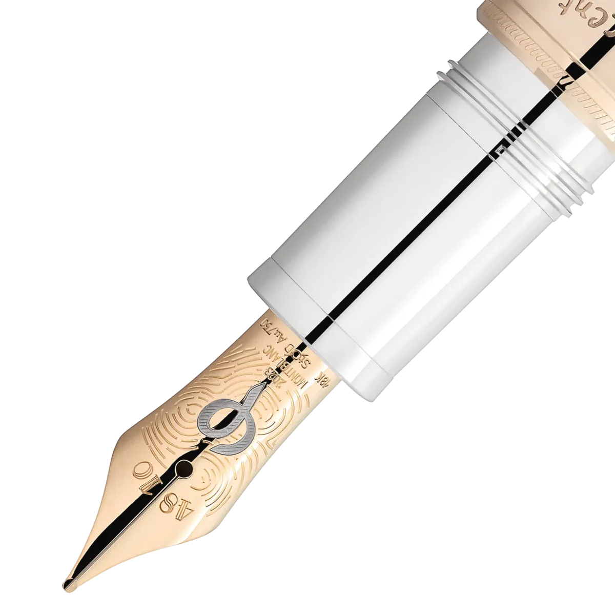 Med Montblanc Masters of Art Homage to Vincent van Gogh Limited Edition 161 hylder Montblanc Vincent van Gogh, en af de mest populære malere i slutningen af det 19. århundrede. Denne udgave lægger særlig vægt på hans tid i Saint-Rémy-de-Provence og Auvers-sur-Oise med designdetaljer, der blandt andet afspejler hans sidste værk, Tree Roots. I Saint-Rémy og Auvers-sur-Oise perfektionerede Van Gogh sin evne til at male naturlige scener set gennem linsen af sine følelser. Hvedemark og cypresser er et sådant maleri, der viser en stormfuld himmel over et landskab fuld af bevægelse. Van Gogh malede dette motiv fra asylet i Saint-Rémy tre gange. Hans tegning af det samme motiv, udført med blyant, rørpen og pen og blæk, er gengivet i graveringen på hætten i 925 sterlingsølv.Graveringen 1890 på tønderingen – ved siden af Vincents signatur i blåt – markerer året, hvor han tegnede sit sidste maleri, Trærødder. Tønden i sterlingsølv Ag 925 er dekoreret med lakindlægninger, hvis design og farver er hentet fra Trærødder, der viser en gruppe træer, hvis rødder er blottet af erosion på siden af en bakke. Van Gogh udviklede en løsere, friere stil og blev lige så dygtig med pensel og paletkniv – som han brugte til tykke, impulsive “impasto”-værker. Hans paletkniv inspirerede klipsen, mens hans fejende penselstrøg er udødeliggjort i lakken på hætten. Desuden er hans forkærlighed for at ryge pibe, som han henviste til i mange af sine selvportrætter, fanget i en subtil detalje på klipsen: den øverste del er formet som et pibehoved og dekoreret med en citrin. Som en hyldest til Vincents fascination af traditionelle japanske træsnit er den overordnede form inspireret af en japansk træskærerkniv. Den måde, Van Gogh fandt inspiration i japansk kunst, demonstrerer kunstens universalitet og kunstneriske koncepter som det gyldne snit eller 1,61 (Phi), som ikke kun tjente som inspiration for prægningen af Phi-symbolet på den håndlavede, solide Au 750 guldspids, men også for begrænsningen til 161 stykker.Van Goghs mange kreative impulser symboliseres i facetterne af blå lak, der kroner hætten. Indlejret i dette blå felt som en af Vincents lyse stjerner – et billede, der går igen i hans værker – er Montblanc-emblemet i massivt 750 guld. Med signaturguld og/eller signaturguldbelægning fremkalder Montblanc den oplyste nuance af gult guld, som er blevet en værdsat tone for Maison’s skriveinstrumenter. Identifikationsnummer MB129161 Fysisk vægt 146 g