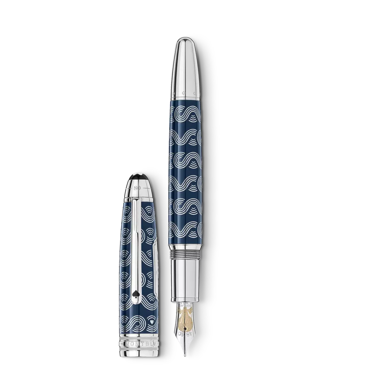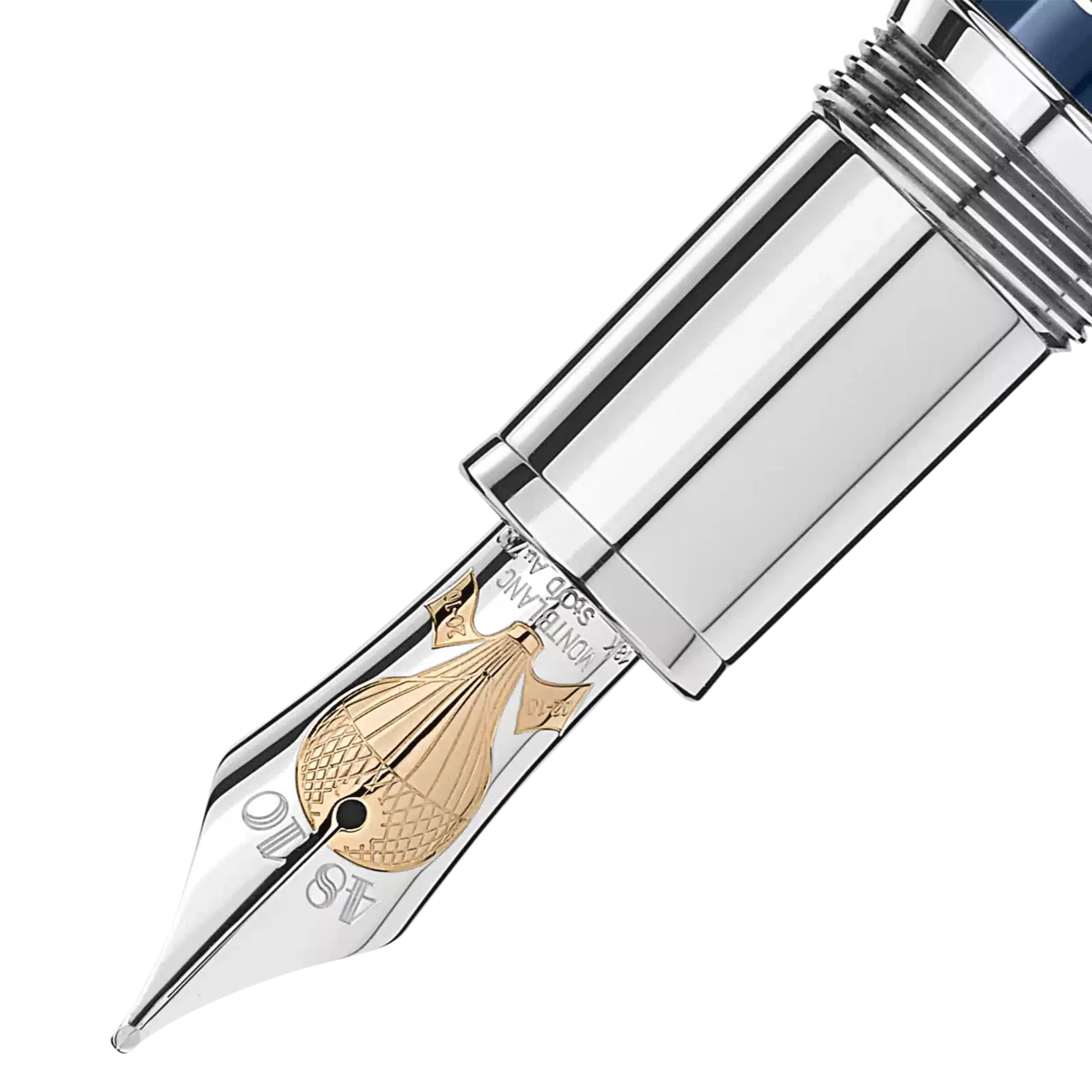 Meisterstück Around the World in 80 Days-kollektionen er inspireret af Jules Vernes berømte eventyrroman. Solitaire Le Grand-fyldepen i blå, gennemskinnelig lak med gradientfinish er inspireret af den første del af rejsen. Hovedpersonen rejser, hovedsageligt med dampskib, fra London til Bombay, krydser Middelhavet og passerer gennem Suezkanalen. Hætten og skaftet er prydet med et fræset mønster af romanens centrale elementer: havbølger, kortfarver og en kartouche med et lasergraveret dampskib. Hætten er præget med rejsenes længde, 18 dage fra London til Bombay og 80 dage i alt. Skriveinstrumentet er afsluttet med en håndlavet Au750 tofarvet rhodium- og champagnetone, guldbelagt penne, dekoreret med en luftballon og start- og slutdatoen for den eventyrlige rejse.