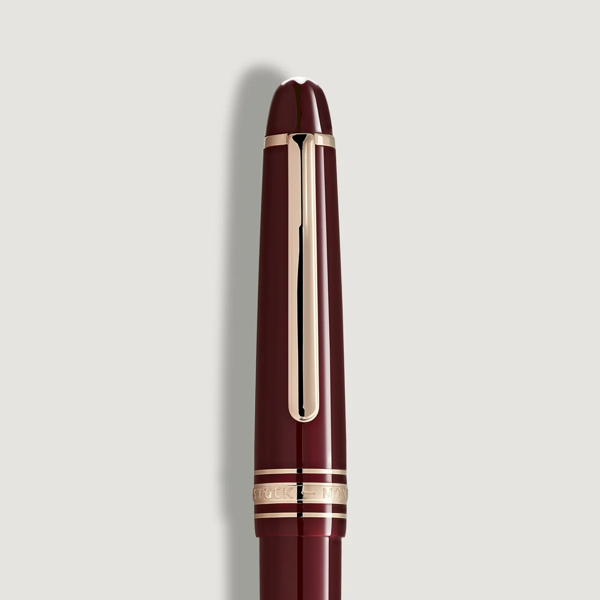 Det tidløse design af Montblanc Meisterstück Classique Burgundy Red afspejler Maison’s historie, hvor burgunder har været en fremtrædende farve siden 1920’erne. Denne farve har været en fast del af Montblancs arv lige siden. Hætten og skaftet på Meisterstück Burgundy Red fyldepen er fremstillet i burgunderrød ædelharpiks med karakteristiske guldbeslag og det ikoniske hvide Montblanc-emblem indlagt i hætten. Skriveinstrumentet er prydet med en håndlavet Au585/14K massiv guldspids, der er belagt med karakteristisk guld. Med signaturguld beskriver Montblanc den oplyste nuance af gult guld, som er blevet en værdsat tone for Maison’s skriveinstrumenter. Identifikationsnummer MB133006 Fysisk vægt 20,61 g Dimensioner 139,7 mm * 13,8 mm