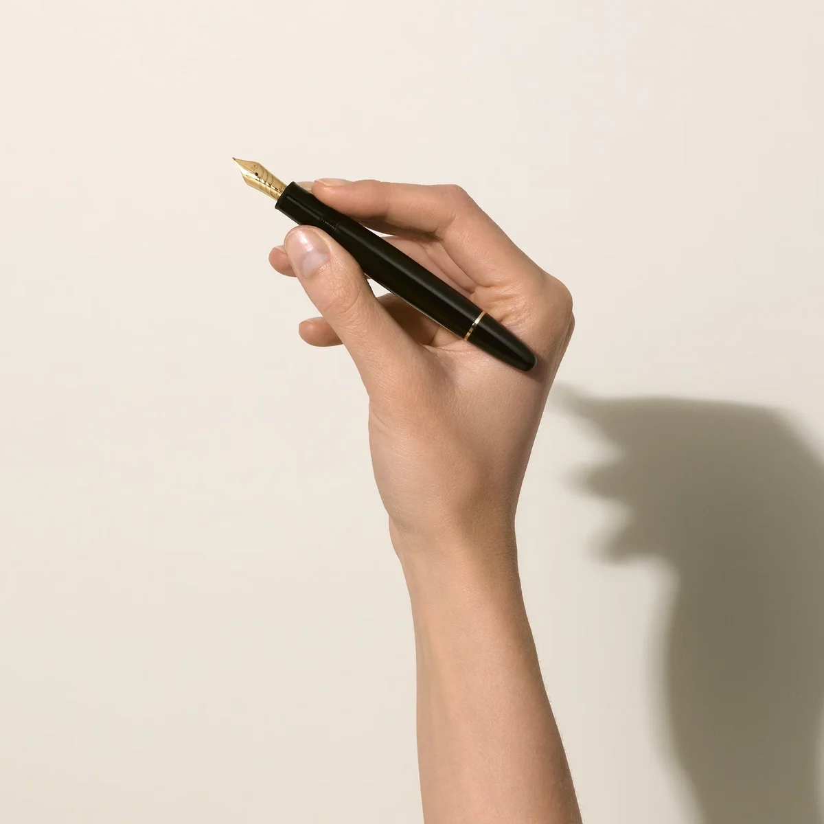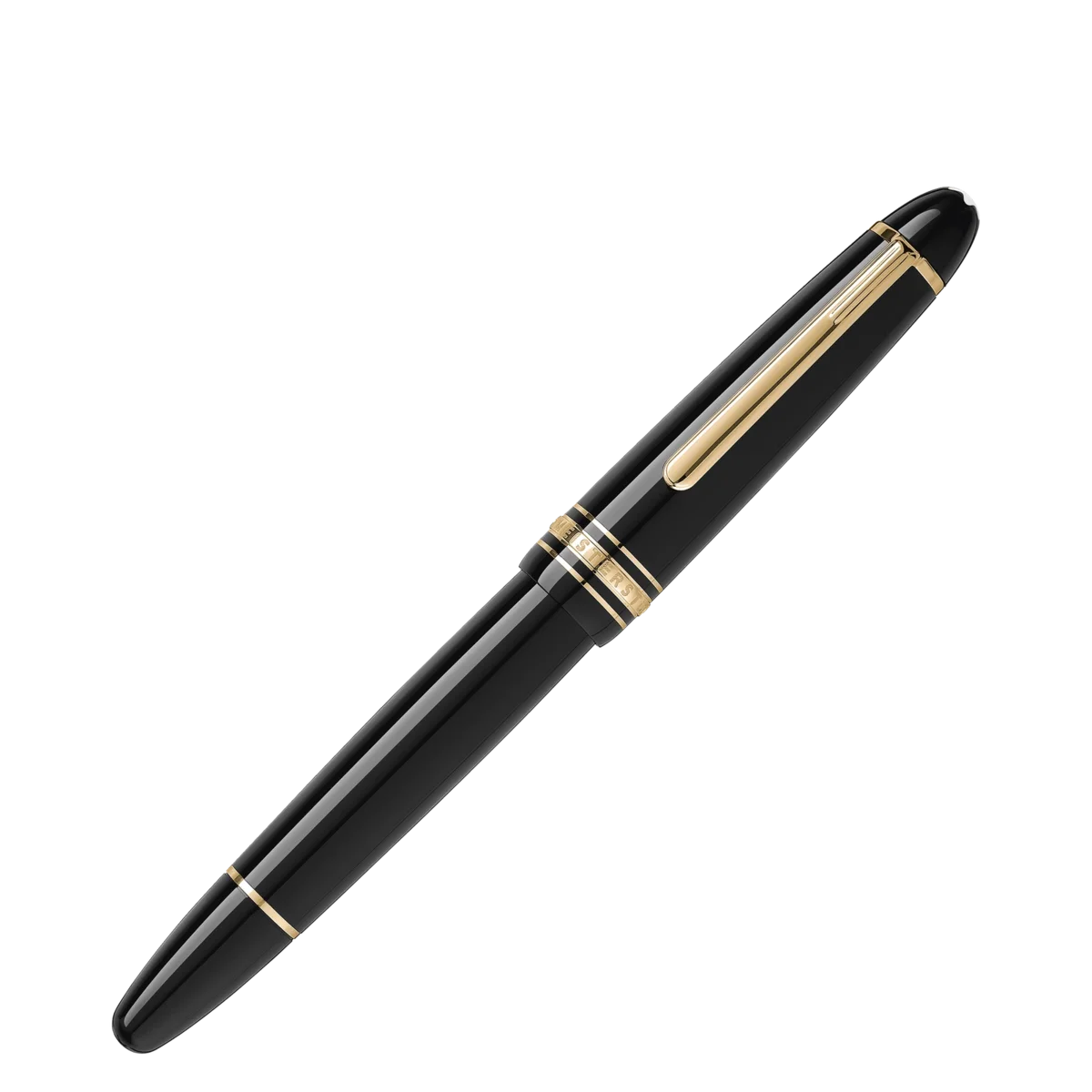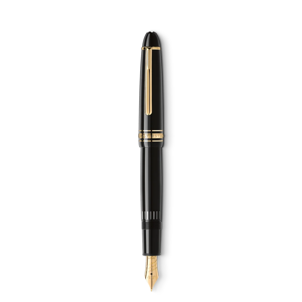 Hætten og skaftet er fremstillet i sort ædelharpiks med det ikoniske hvide Montblanc-emblem indlagt i hætten. Fyldepen er prydet med den innovative buede penne, der er håndlavet i Au750 massivt guld og dekoreret med tre fine parallelle linjer, et symbol inspireret af kalligrafiens bevægelser. Den buede penne giver mulighed for en række forskellige skrivestilarter og linjebredder, afhængigt af vinklen og retningen, som skriveinstrumentet holdes i.