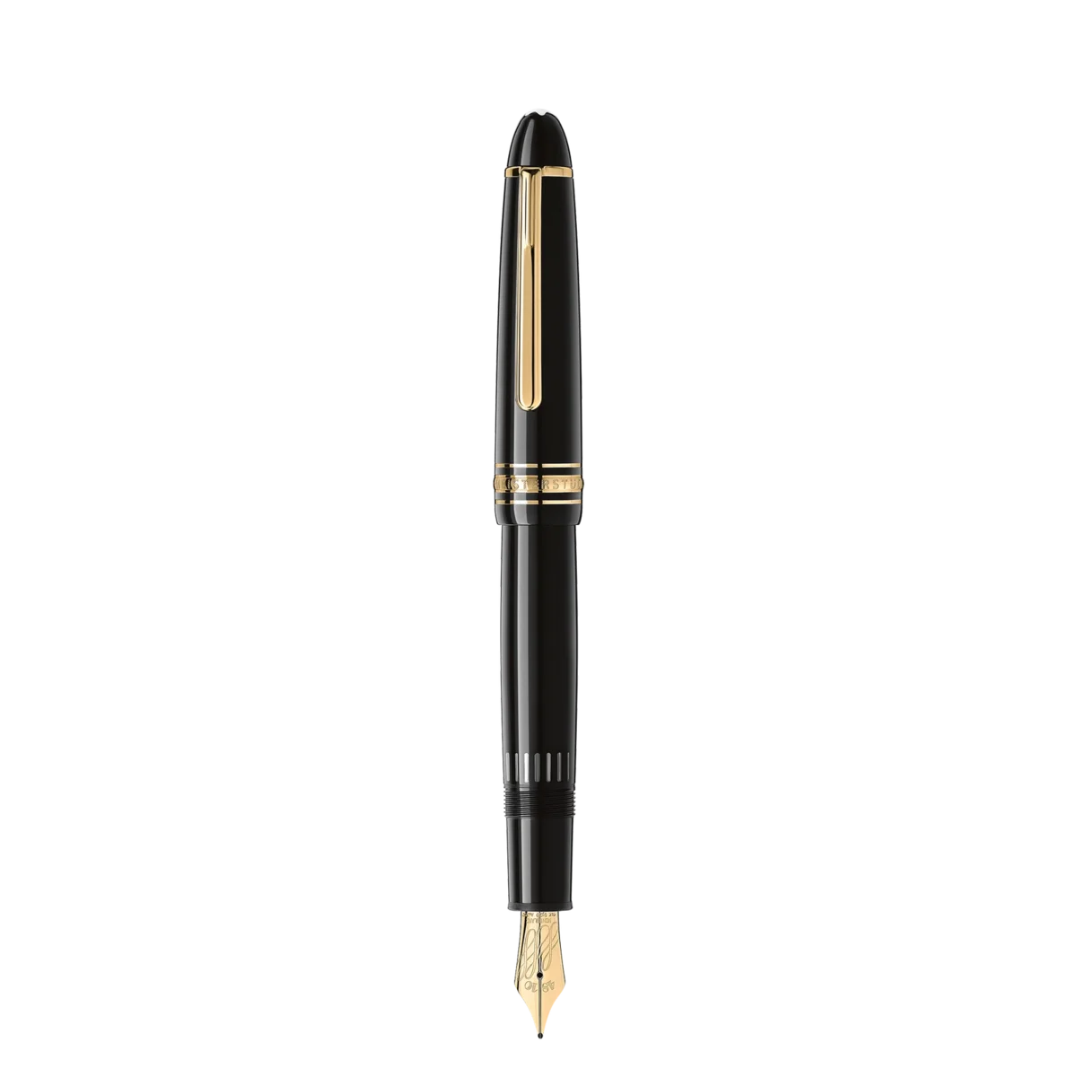 Montblanc Meisterstück LeGrand Gold-coated-kollektionen er et design, der skriver historie. Meisterstück, der blev introduceret i 1924, betyder “mesterværk” og er blevet et af symbolerne på luksuriøse skriveartikler af høj kvalitet. Hætten og skaftet er fremstillet i sort ædelharpiks med det ikoniske hvide Montblanc-emblem indlagt i hætten. Fyldepennen er kronet med en innovativ fleksibel penne, håndlavet i Au750 / 18K massivt guld og afsluttet med en delikat tredobbelt 8; et symbol inspireret af kalligrafiens bevægelser. Den fleksible penne giver mulighed for en lang række individuelle skrivestilarter og linjebredder, der kan variere fra ekstra fin (0,3 mm) til dobbelt bred (1,6 mm) afhængigt af det anvendte tryk.