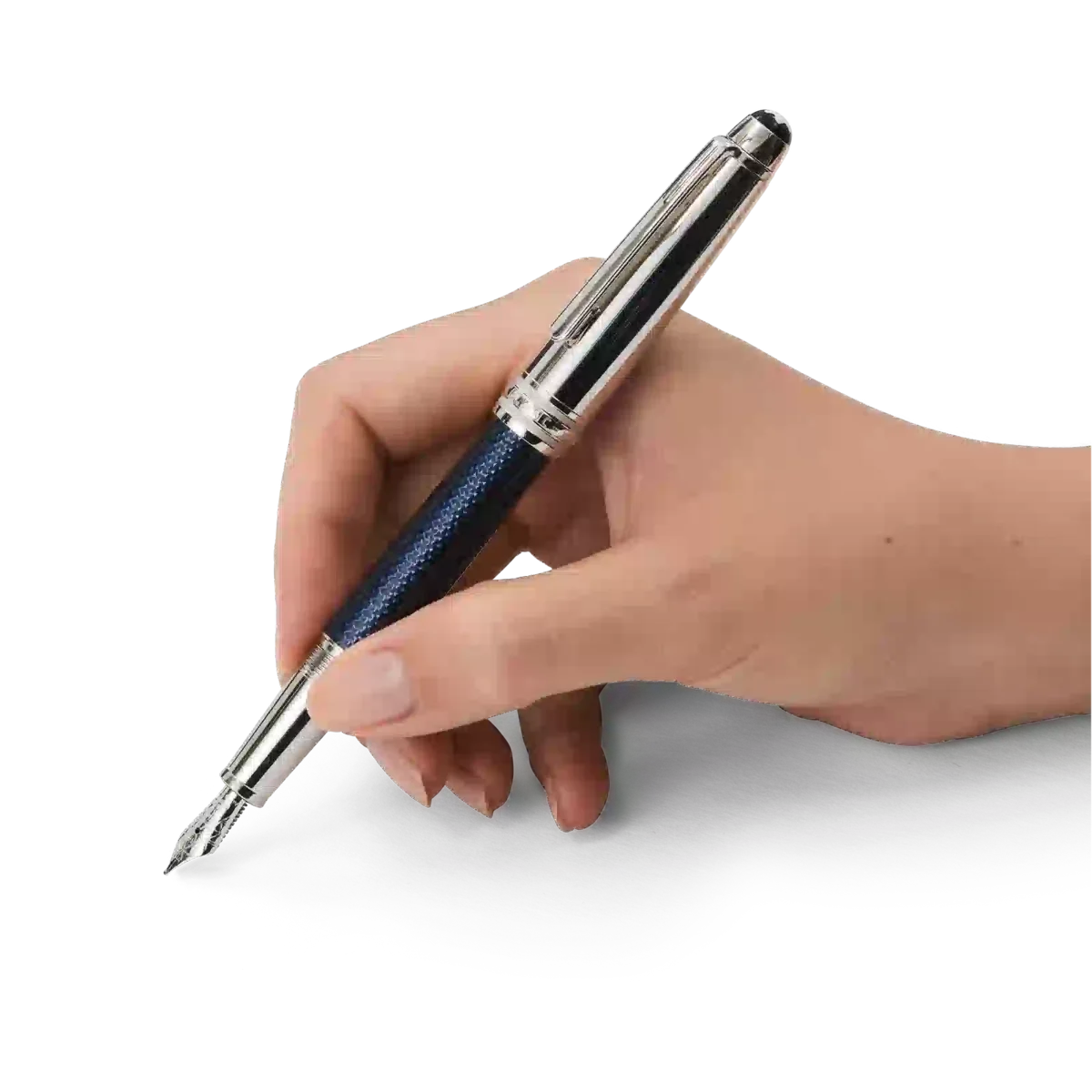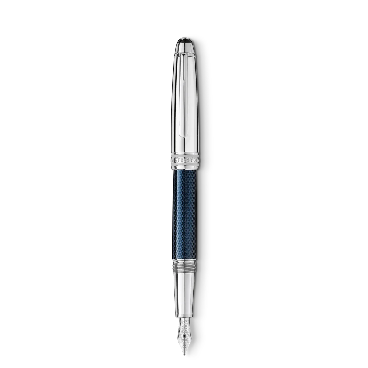 Meisterstück Solitaire Doué Blue Hour Classique præsenterer sig som et kostbart, blåt lakeret Solitaire-produkt med platinbelagte beslag. Den magiske time mellem dagslys og nat – den blå time – skaber en blød kontrast og en betagende stemning, som har været inspiration for designet. Det sekskantede mønster på den håndlavede rhodiumbelagte guldspids samt på pennen afspejler lysets brydning og nattrafikken i storbyerne.