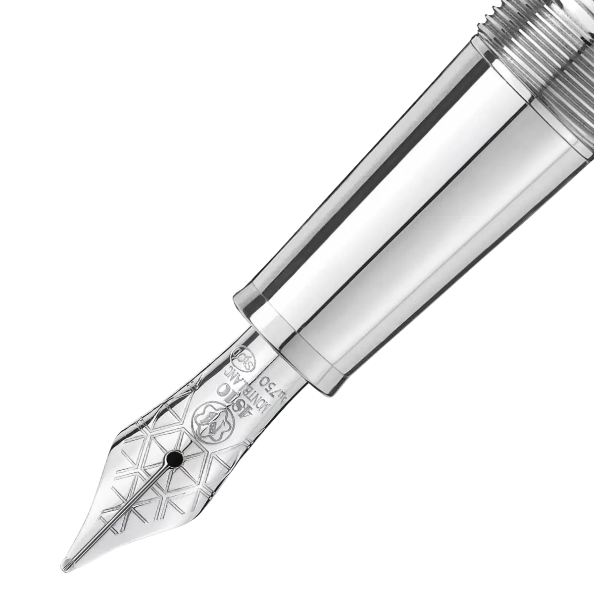 Meisterstück Solitaire Doué Blue Hour Classique præsenterer sig som et kostbart, blåt lakeret Solitaire-produkt med platinbelagte beslag. Den magiske time mellem dagslys og nat – den blå time – skaber en blød kontrast og en betagende stemning, som har været inspiration for designet. Det sekskantede mønster på den håndlavede rhodiumbelagte Au750 guldspids samt på pennen afspejler lysets brydning og nattrafikken i byerne.