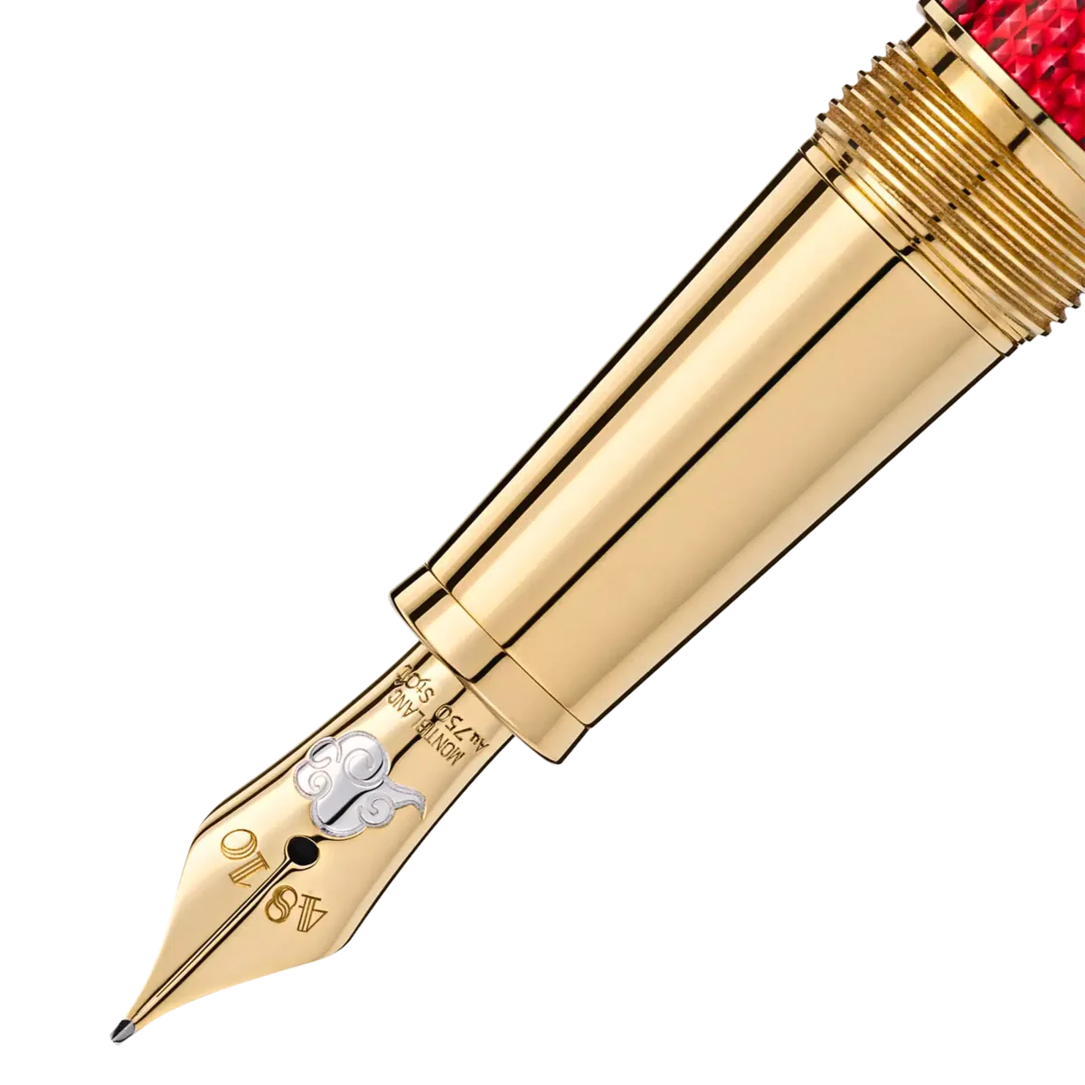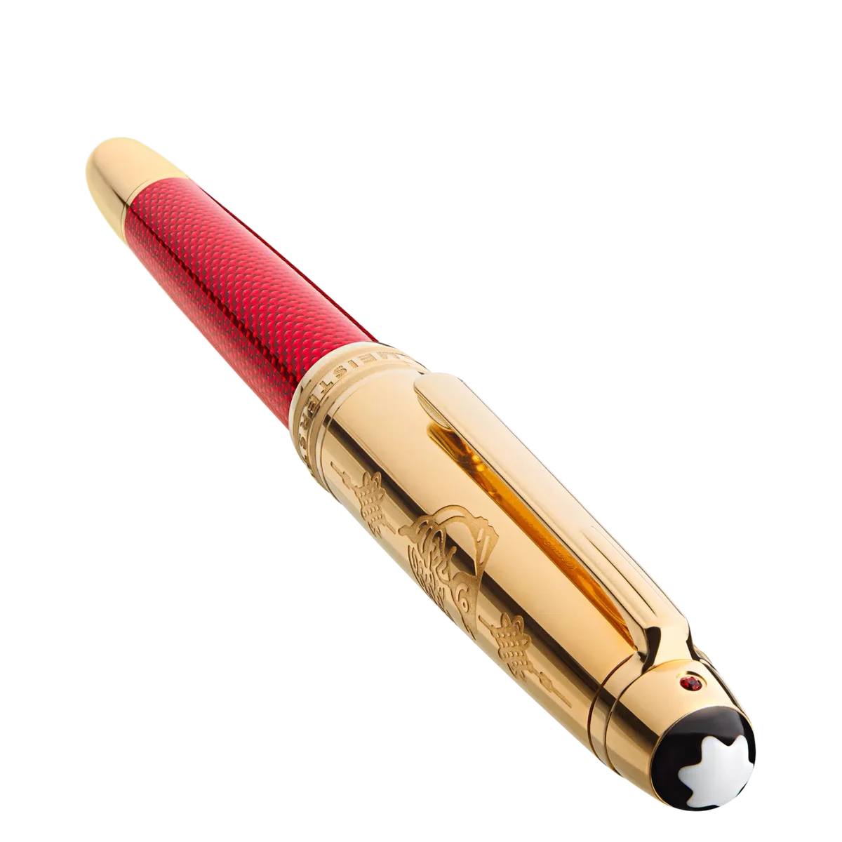 Meisterstück Solitaire Doué Red Hour er en specialudgave, der hylder nogle af de ældste kinesiske symboler. Den præsenterer sig som en kostbar, rødlakeret fyldepen med guldbelagte beslag. Den røde farve på pennen symboliserer lykke og glæde i den traditionelle kinesiske kultur. Hætten er prydet med et design, der kombinerer kinesisk knudebinding og koi-karper, som også er symboler på lykke. Hætten er prydet med en 1,5 mm rubin, og den guldbelagte penne er præget med rhodiumbelagte “lykkebringende skyer”, et tegn på lykke, glæde og lykke.