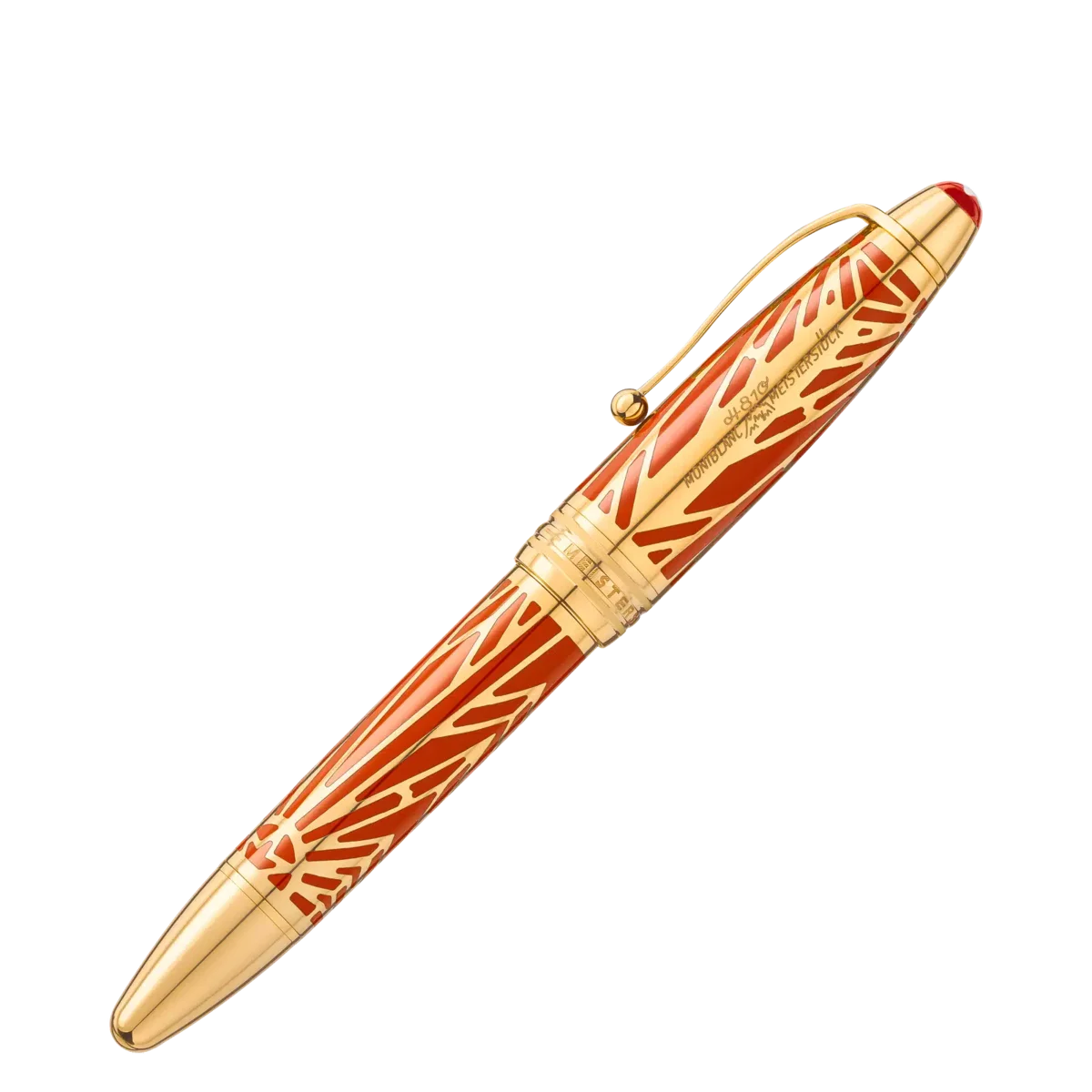 Siden lanceringen i 1924 har Montblancs Meisterstück været bredt anerkendt som det ultimative fine skriveinstrument, der symboliserer raffineret smag og en dristig udvidelse af sig selv. Uanset om det bruges til at skrive et kærlighedsbrev eller underskrive et historisk dokument, har Meisterstück sat et uudsletteligt præg på historiens sider. For at ære denne milepæl har Montblanc dykket dybt ned i sine arkiver og skabt Origin-kollektionen, der hylder brandets rige historie og arv. Kollektionen er inspireret af tidlige designs fra vores arkiver samt designelementer fra de tidligste Meisterstück-udgaver, der fanger den oprindelige ånd og tilfører den et moderne præg.Det indviklede mønster på den guldbelagte hætte og krop, der delvist er belagt med koralfarvet lak, går tilbage til et uudgivet design, der har været gemt væk i årtier, hvilket giver Montblanc mulighed for endelig at introducere dette længe glemte design, der minder om Art Déco-perioden. Klipsen er en hyldest til de tidlige klipsformer, der findes i nogle af de første Meisterstück-skriveinstrumenter, og vækker en følelse af nostalgi. Ved nærmere eftersyn kan man opdage det originale Meisterstück-logo, der har prydet hætten som et symbol på høj kvalitet siden dens begyndelse. Denne jubilæumsudgave er kronet med en massiv guldspids, der stolt viser tallet “100” sammen med årene “1924” og “2024”. Skål for endnu 100 års excellence med Meisterstück!