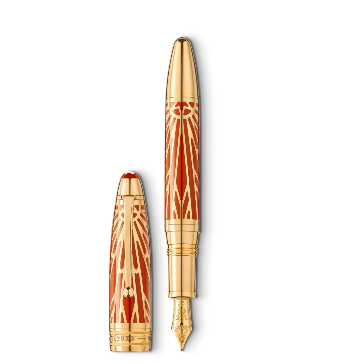 Siden lanceringen i 1924 har Montblancs Meisterstück været bredt anerkendt som det ultimative fine skriveinstrument, der symboliserer raffineret smag og en dristig udvidelse af sig selv. Uanset om det bruges til at skrive et kærlighedsbrev eller underskrive et historisk dokument, har Meisterstück sat et uudsletteligt præg på historiens sider. For at ære denne milepæl har Montblanc dykket dybt ned i sine arkiver og skabt Origin-kollektionen, der hylder brandets rige historie og arv. Kollektionen er inspireret af tidlige designs fra vores arkiver samt designelementer fra de tidligste Meisterstück-udgaver, der fanger den oprindelige ånd og tilfører den et moderne præg.Det indviklede mønster på den guldbelagte hætte og krop, der delvist er belagt med koralfarvet lak, går tilbage til et uudgivet design, der har været gemt væk i årtier, hvilket giver Montblanc mulighed for endelig at introducere dette længe glemte design, der minder om Art Déco-perioden. Klipsen er en hyldest til de tidlige klipsformer, der findes i nogle af de første Meisterstück-skriveinstrumenter, og vækker en følelse af nostalgi. Ved nærmere eftersyn kan man opdage det originale Meisterstück-logo, der har prydet hætten som et symbol på høj kvalitet siden dens begyndelse. Denne jubilæumsudgave er kronet med en massiv guldspids, der stolt viser tallet “100” sammen med årene “1924” og “2024”. Skål for endnu 100 års excellence med Meisterstück!