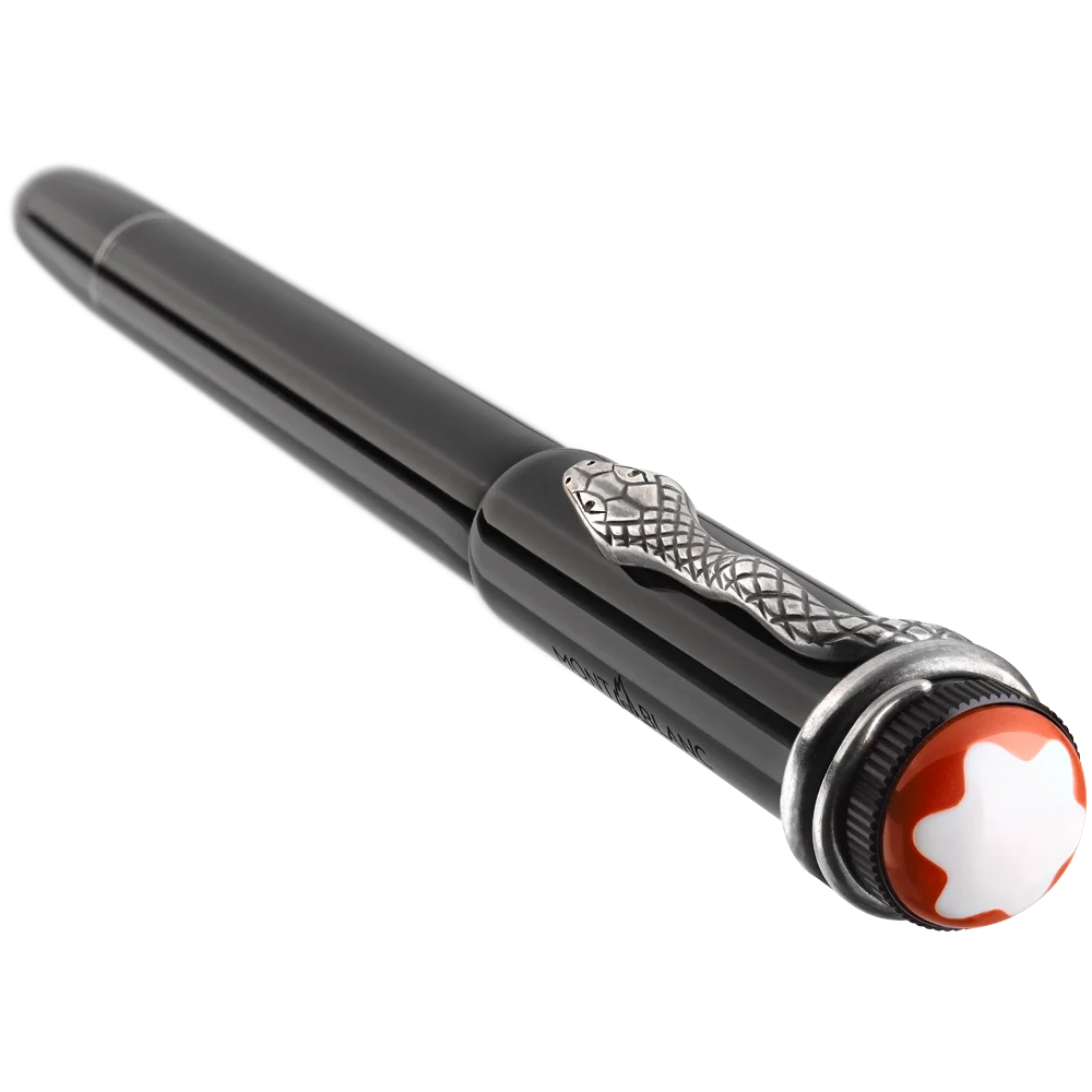 Da den eksklusive fyldepen “Rouge et Noir” blev udviklet i 1906, blev den betragtet som en enestående teknisk bedrift, der sikrede enkel betjening uden behov for at dyppe pennen i et blækhus. Heritage Collection Rouge et Noir hylder Montblancs 110 år gamle pionerånd. Den legendariske skriveinstrument er blevet genfortolket og har fået en længere, slankere silhuet, moderne stempelpåfyldningsteknologi og håndværk, der er forfinet gennem generationer. Den eksklusive fyldepen har en krop af sort ædel lak kombineret med en sort ædel harpiks hætte. Snake Clip i vintage-look med matchende beslag. Klemmen er fremstillet ved en stemplings- og viklingsproces i en speciel legering og er ældet ved en unik galvanisk og afskrabningsproces. Identifikationsnummer MB132108 Fysisk vægt 150 g Dimensioner 136 mm * 16 mm