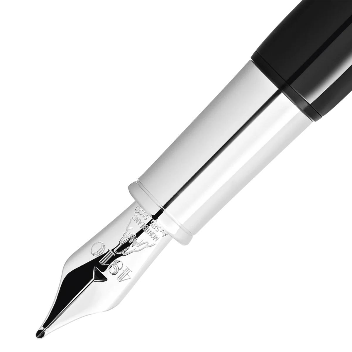Montblanc Heritage Collection Rouge et Noir “Baby” hylder Montblanc-husets pionerånd og rige arv. Inspireret af de originale Montblanc “Baby”-penne fra 1920’erne genfortolker Montblanc det dengang uventede design og giver det et moderne twist. Navnet “Baby” beskriver på legende vis dens lille størrelse sammenlignet med andre Montblanc-skriveinstrumenter. Den er skabt i sort ædel lak og med platinbelagte beslag og kronet af et Montblanc-emblem i ædel harpiks omgivet af den ikoniske koralfarve fra Montblanc Rouge et Noir-kollektionen.Den håndlavede Au 585 massivt guldspids er prydet med en tegning af Mont Blanc-bjerget. Identifikationsnummer MB127800 Fysisk vægt 30,92 g Dimensioner 99 mm * 11,8 mm