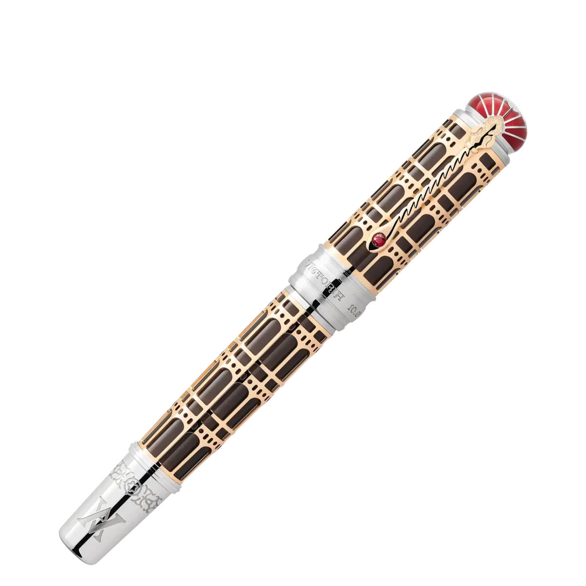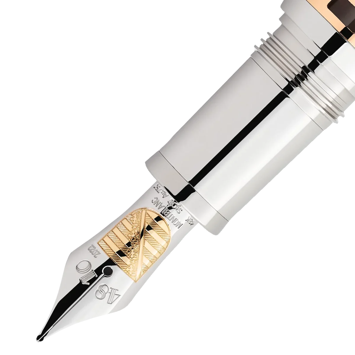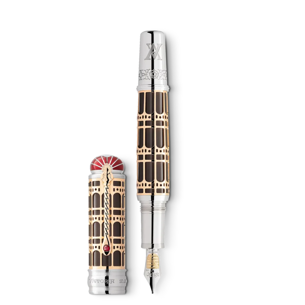 Montblanc Patron of Art Edition i 2022 er dedikeret til dronning Victoria og prins Albert. Limited Edition 888 er en bemærkelsesværdig parudgave, hvor den ene udgave ærer dronning Victoria og den anden hendes gemal prins Albert. Montblanc Patron of Art Homage to Albert Limited Edition 888 hylder prins Albert og hans store bedrifter. Fyldepennen leveres med en hætte og et skaft lavet af grå, gennemskinnelig lak og et solidt Au 750 signaturguldskeletoverlay. Skelettet er inspireret af Crystal Palace, som Albert byggede, og hvor han afholdt “The Great Exhibition” i 1851. Den grå farve er en hyldest til den tartan, som Albert selv havde skabt til Balmoral Castle i Skotland. Beslagene er platinbelagte. Klipformen er en hyldest til hans kones scepter og er prydet med en rød granat. Hætten er inspireret af Crystal Palace’s kuppel og er prydet med Montblanc-emblemet lavet af perlemor. Mens hætten bærer indgraveringen “Albert” og deres bryllupsdato ligesom en vielsesring, pryder en særlig indgravering keglen. Som en hyldest til hans personlige våbenskjold er den håndlavede, solide Au 750 guld-tvefarvede pennepunkt præget med et mønster inspireret af Sachsens våbenskjold. Med signaturguld og/eller signaturguldbelægning beskriver Montblanc den oplyste nuance af gult guld, som er blevet en værdsat farve for Maison’s skriveinstrumenter.