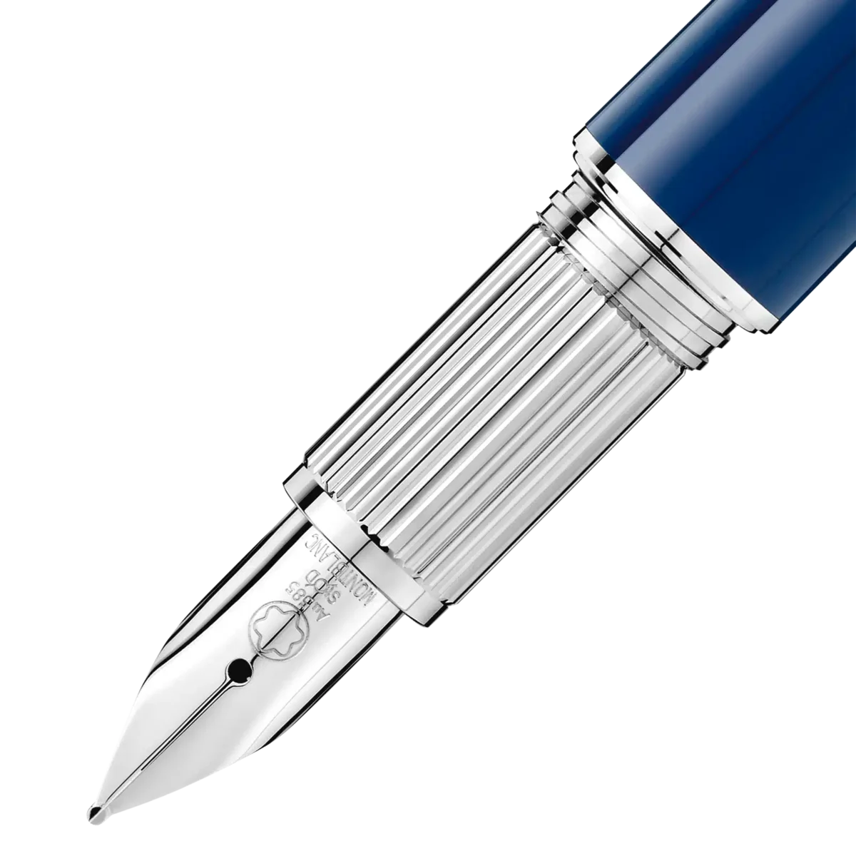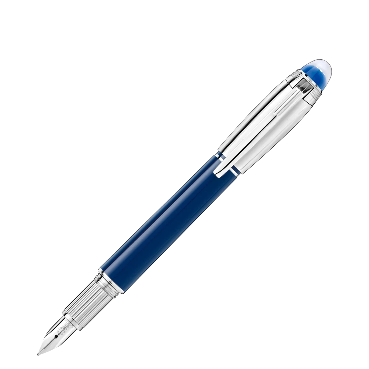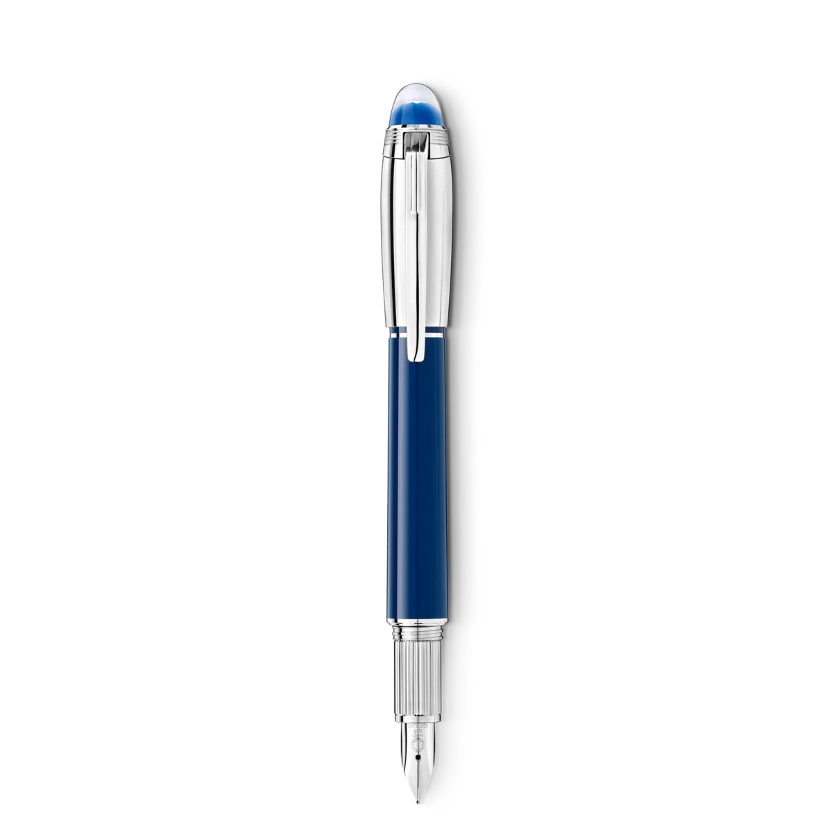 StarWalker Blue Planet handler om at vandre blandt stjernerne, udforske kosmos og fremmede galakser og være en del af et af de mest mystiske og magtfulde eventyr, menneskeheden nogensinde har begivet sig ud på: udforskningen af rummet. Når vi zoomer ind på vores planet Jorden, henter vi inspiration fra vandet, livets kilde. StarWalker-emblemet har en blå, gennemskinnelig kuppel med en stjerne, der svæver ovenpå, som symboliserer Jorden, der stiger op over månens horisont set fra månen. StarWalker Blue Planet Doué fyldepen har en platinbelagt hætte og beslag og en blå krop af ædelharpiks. Fyldepen er håndlavet med en rhodiumbelagt Au585 /14 K guldspids. Identifikationsnummer MB132436 Fysisk vægt 34,09 g Dimensioner 135,7 mm * 14,9 mm
