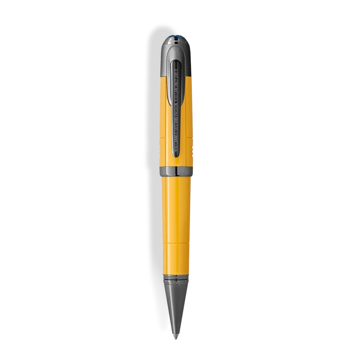 Navnet Ferrari står for æstetisk design, kraftfulde motorer, næsten uendelig teknisk innovation og en af de mest indflydelsesrige mænd i bilhistorien. Med en enorm vision og en uhæmmet passion for motorsport førte Enzo Ferrari sit firma til enestående prestige og skabte en legende, der lever videre. Montblanc har dedikeret Montblanc Great Characters Enzo Ferrari Special Edition til manden og hans passion for racerløb. Med inspiration fra både våbenskjoldet for Enzo Ferraris hjemby Modena og den symbolske farve i Scuderias logo hylder denne udgave Ferraris anden sjæl – farven gul. Datoerne for Enzo Ferraris fødsel og hans første sejr i motorsport er indgraveret på keglen, mens hans underskrift og navnet på hans fars værksted, ‘Officina Meccanica Alfredo Ferrari’, med henvisning til Enzo Ferraris fødested, er indgraveret på hætten. Den er kronet af Montblanc-emblemet i ædelharpiks i blåt – som en yderligere hyldest til Modenas våbenskjold – og omgivet af intrikat metalarbejde, der minder om en vintage bilgrill. Enzo Ferraris første sejr på Circuito del Savio var også begivenheden, der markerede begyndelsen på det nu berømte Ferrari-logo. Blandt de mange tilskuere, der beundrede Enzo Ferraris dristige kørsel den dag, var familien til ace-piloten Francesco Baracca, der havde tjent under 1. verdenskrig i samme enhed som Enzos bror Dino. Francesco Baraccas mor, grevinde Paolina Biancoli, foreslog, at Enzo Ferrari skulle bruge emblemet med en springende, uhæmmet hest fra hendes søns fly på sine racerbiler for at bringe held. Hestens association med en nationalhelts mod og vilje til at dominere gjorde den til et ideelt symbol for Enzo. Ni år senere blev Cavallino Rampante for første gang brugt på en gul baggrund til at pryde en bil. Det var i 1932 ved Spa 24 Hours, og Scuderia Ferrari-teamet tog 1. og 2. pladsen med to biler med det springende hest. Cavallino Rampante er indgraveret på hætten af Montblanc Great Characters Enzo Ferrari Special Edition sammen med grevindens ord: “Le porterà fortuna” (“Det vil bringe dig held”). Den første bil, der blev fremstillet af Ferrari, 125 S med tolv cylindre, forlod fabrikken i Maranello den 12. marts 1947. Tolv indgraverede linjer symboliserer de tolv cylindre. Enzo Ferraris motto, “Du kan ikke beskrive passion, du kan kun leve den”, pryder den rutheniumbelagte klips.