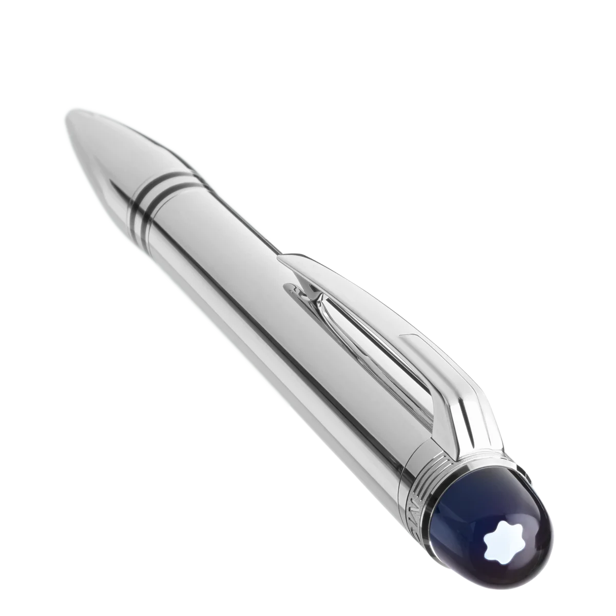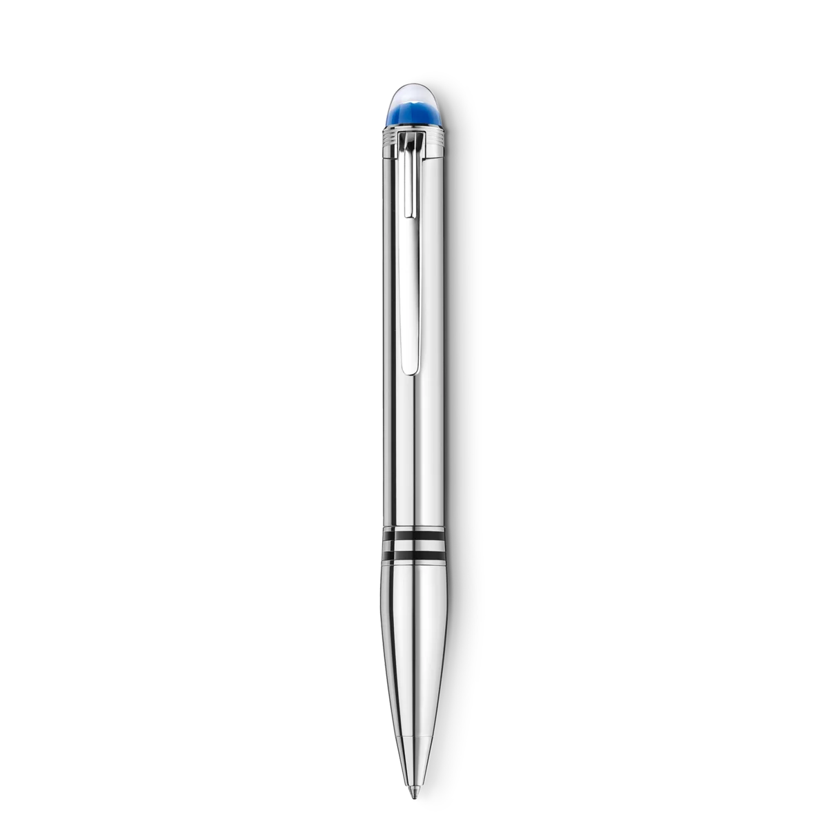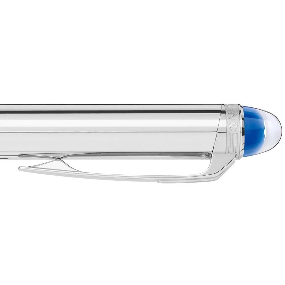 Den nye StarWalker handler om at vandre blandt stjernerne. Den handler om at udforske kosmos og fremmede galakser. Om at være en del af et af menneskehedens mest mystiske og magtfulde eventyr: udforskningen af rummet. Kollektionens nye design hylder den enorme følelse, som alle rumrejsende beskriver, når de ser vores blå planet svæve i det uendelige rum. Den unikke StarWalker-emblemetechnologi har en blå, gennemskinnelig kuppel under Montblanc-emblemet, der minder om Jorden, der dukker op over månens horisont. StarWalker Metal leveres med en platinbelagt krop og beslag. Identifikationsnummer MB132513 Fysisk vægt 57,88 g Dimensioner 134,5 mm * 13,1 mm