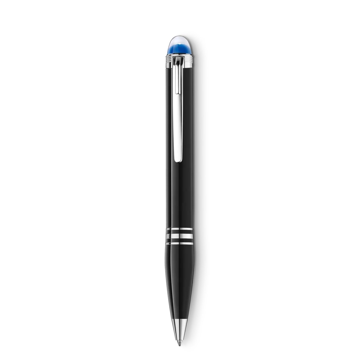 Den nye StarWalker handler om at vandre blandt stjernerne. Den handler om at udforske kosmos og fremmede galakser. Om at være en del af et af menneskehedens mest mystiske og magtfulde eventyr: udforskningen af rummet. Kollektionens nye design hylder den enorme følelse, som alle rumrejsende beskriver, når de ser vores blå planet svæve i det uendelige rum. Den unikke StarWalker-emblemetechnologi har en blå, gennemskinnelig kuppel under Montblanc-emblemet, der minder om Jorden, der stiger op over månens horisont. StarWalker Doué leveres med platinbelagte beslag og en sort krop af ædelharpiks. Identifikationsnummer MB132509 Fysisk vægt 31,67 g Dimensioner 134,5 mm * 13,1 mm * 13,1 mm