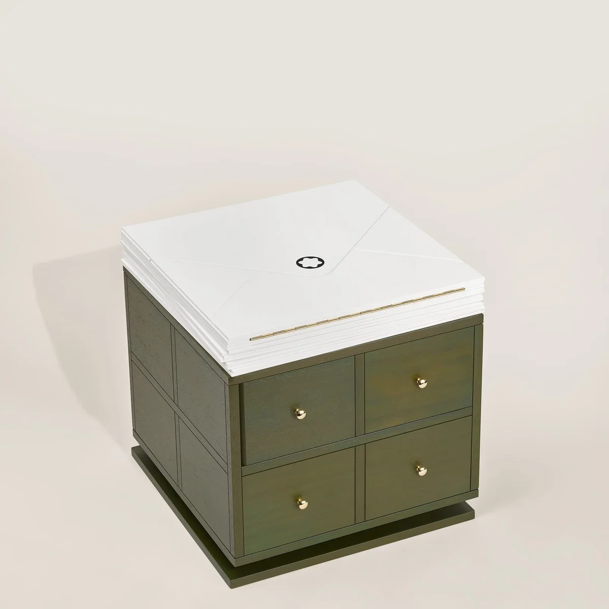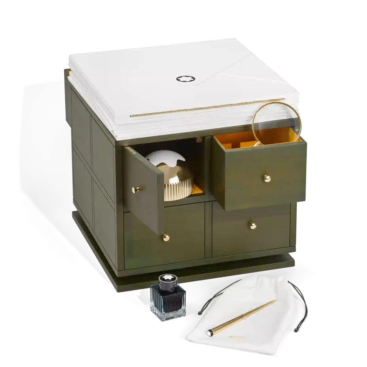 Montblanc introducerer Happy Holidays-sættet 2025, en hyldest til den tidløse kunst at skrive breve. Sættet er begrænset til kun 100 eksemplarer på verdensplan og er både et samlerobjekt og en meningsfuld gave, der fungerer som en betydningsfuld påmindelse om vigtigheden af personlig udtryk og menneskelige relationer.Sættet kommer i en fint udformet æske, hvis design minder om en forfatters kuriositetskabinet, hvor kreative mennesker kunne opbevare de minder, de havde samlet på deres rejser. Bag hver af de otte skuffer udfolder sig en rejse gennem de snedækkede tinder af Mont Blanc og Maison’s historie. De nøje udvalgte genstande tjener til at vække kreativiteten, give sæsonbestemt komfort og støtte rejser, mens et øverste rum i form af en konvolut afslører en eksklusiv Montblanc-fyldepen og julekort. Oplevelsen af at pakke sættet ud afspejler selve skrivningens ånd: tankevækkende, personlig og bevidst, bragt til live i en vintage-inspireret grøn og guldfarvet palet.