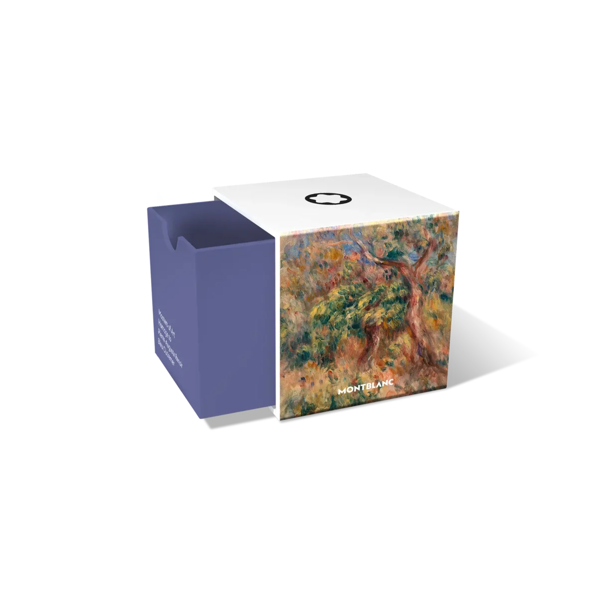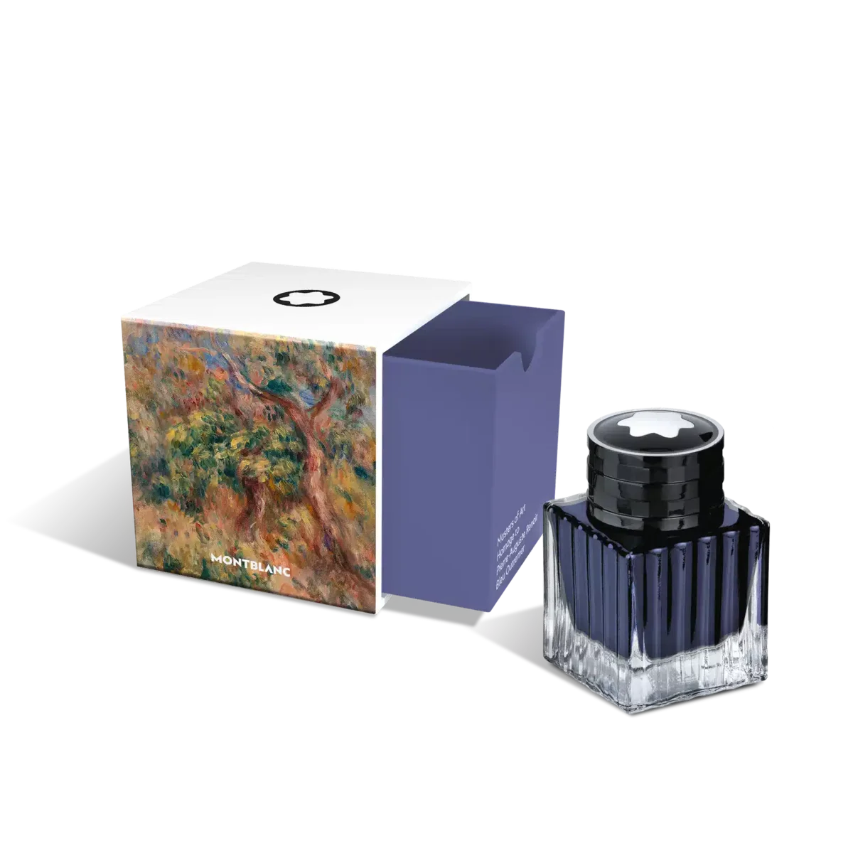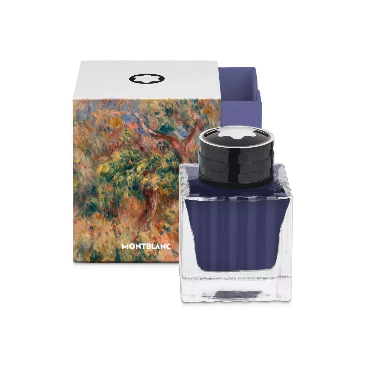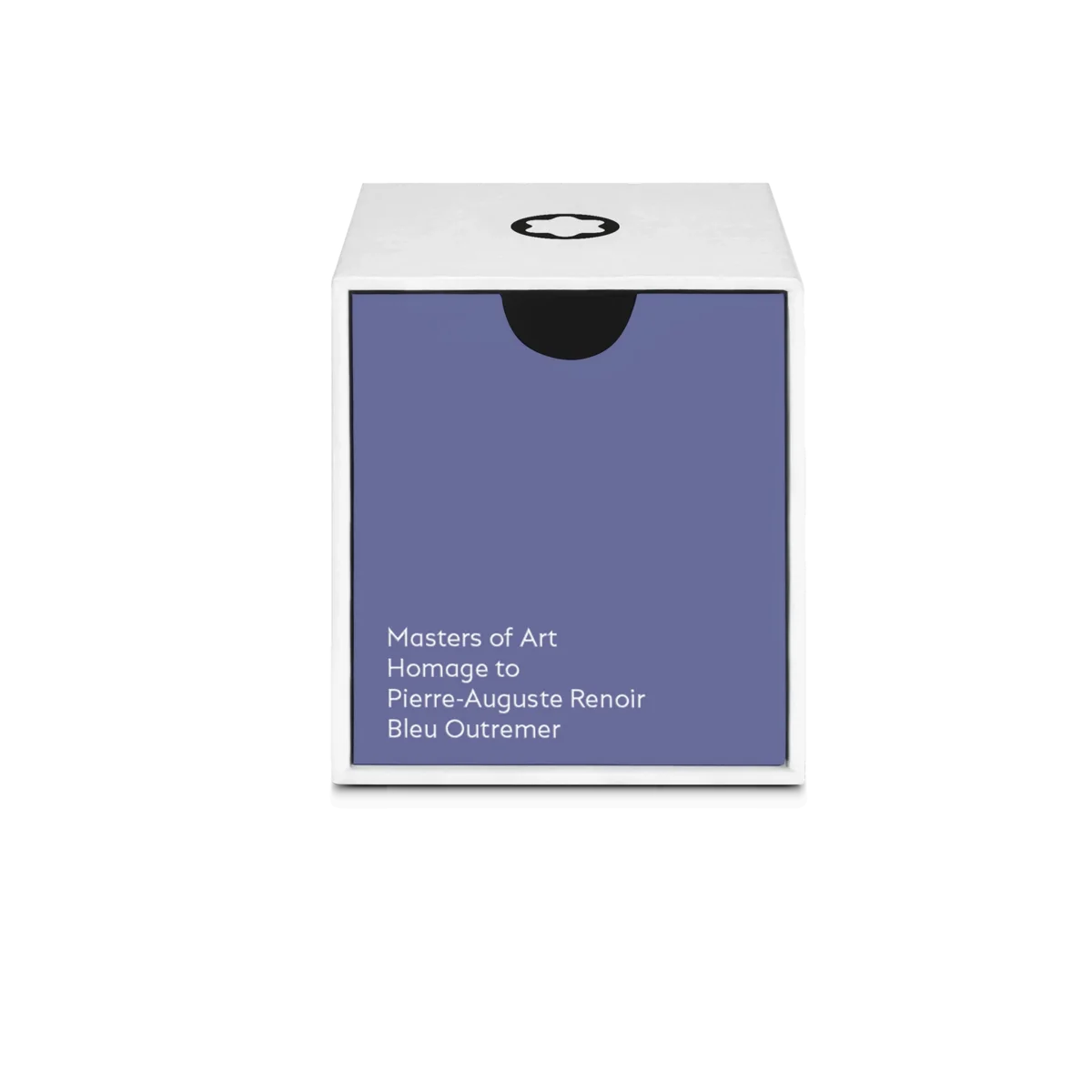 Montblanc blækflaske, Masters of Art Homage to Pierre-Auguste Renoir, Bleu Outremer (ultramarinblå) – 50 ml Montblanc Special Edition blækflasker kommer i firkantet emballage, der afspejler koncepterne og temaerne i hver kollektion, hvilket gør dem til værdifulde samlerobjekter for Montblanc-entusiaster.