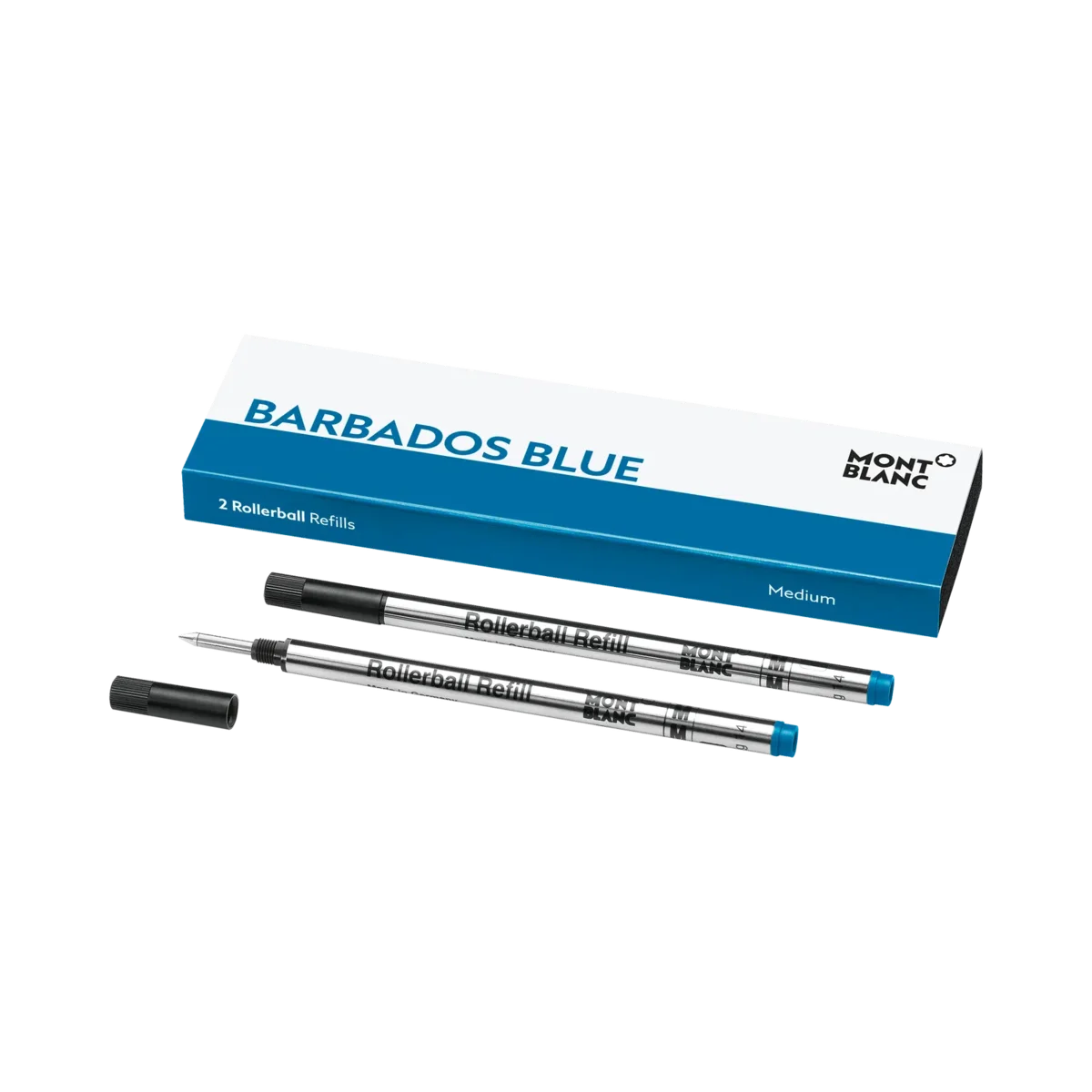 Montblanc rollerball-refiller, Barbados Blue. Passer til alle Montblanc rollerball-/fineliner-penne undtagen Meisterstück LeGrand, Montblanc M og Heritage-kollektionens capless rollerballs. Emballageenheder = 2 refiller. M = Medium.