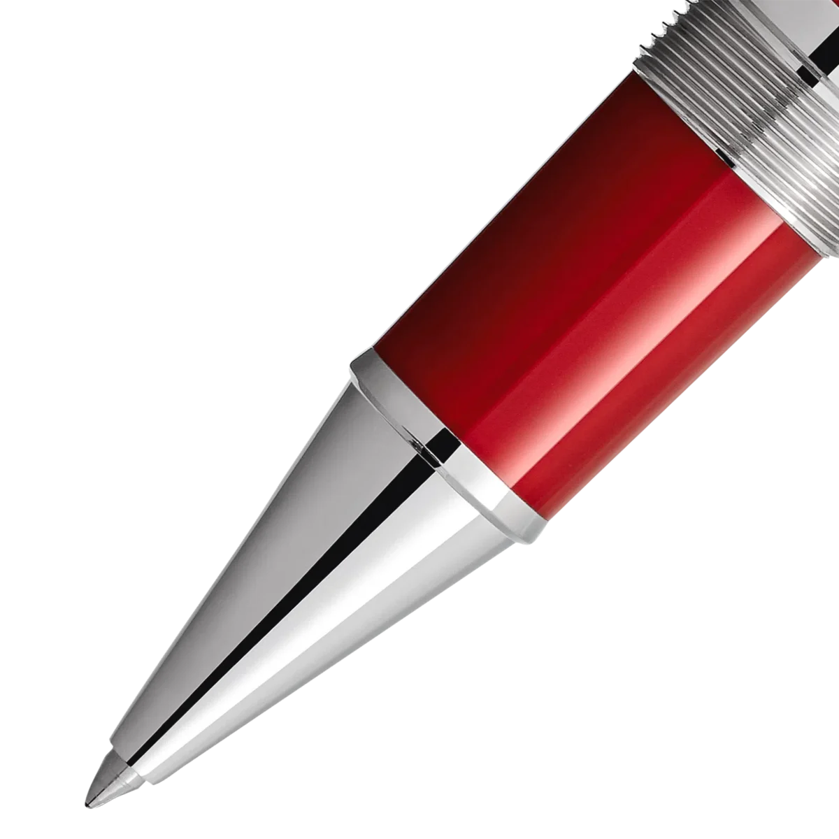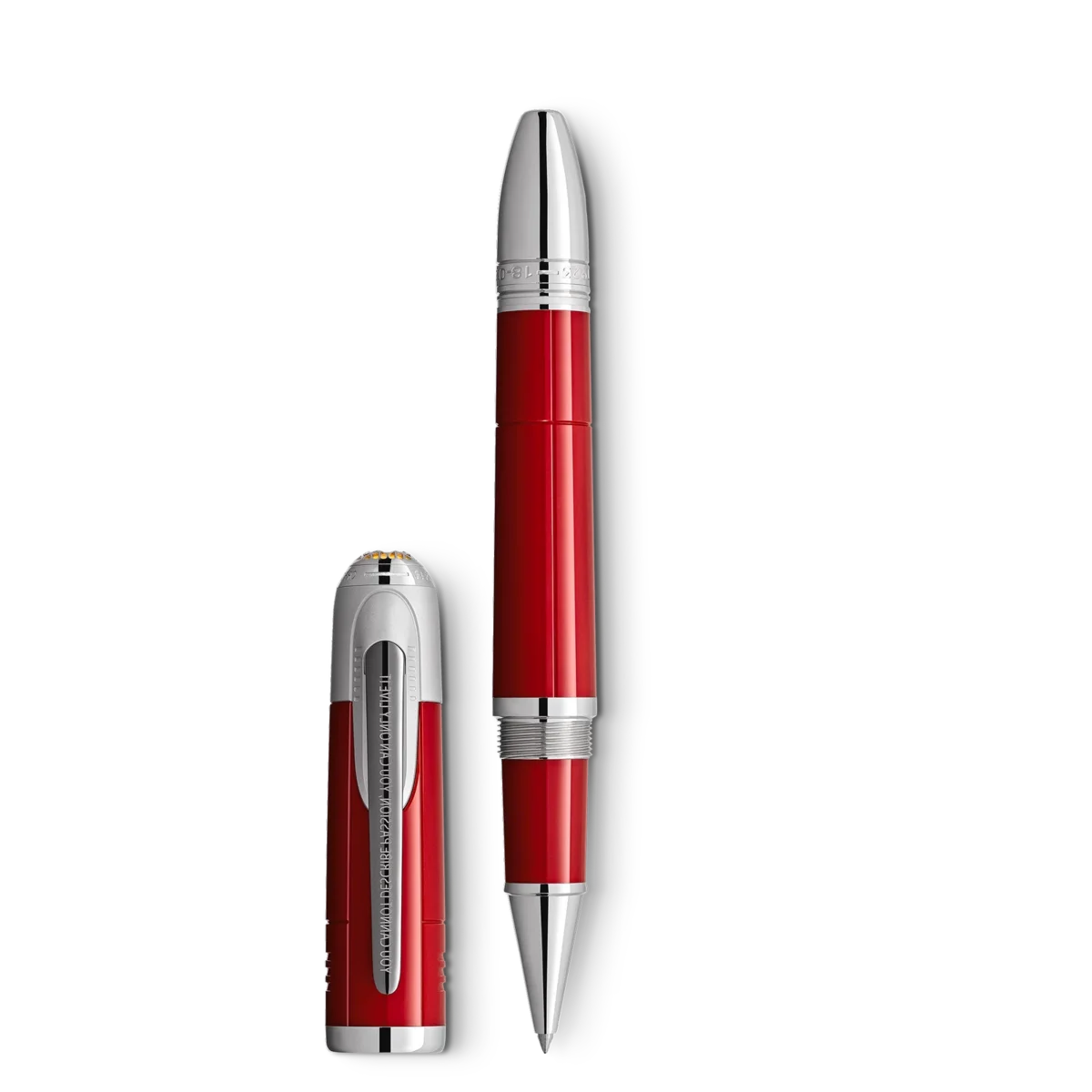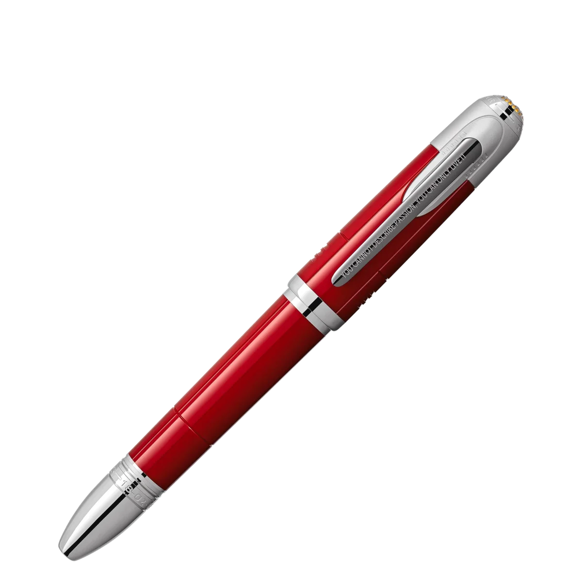 I 2021 hylder Montblanc den visionære Enzo Ferrari: både racerkører og iværksætter. Han grundlagde den legendariske Scuderia Ferrari og etablerede et globalt bilimperium, hvis navn er blevet synonymt med fremragende kvalitet og en passion for hastighed. Udgaven er fremstillet af rød ædelharpiks og symboliserer begyndelsen på Enzo Ferraris passion for motorsport. Farven er inspireret af “Rosso 70 Anni”, en speciel rød farve, der repræsenterer forskellige ikoniske røde nuancer gennem årene. Den blev oprindeligt udviklet for at fejre Scuderia Ferraris 70-års fødselsdag. Hætten er kronet med et Montblanc-emblem indlejret i et metalgitter på en gul overflade, der hylder Ferraris fødested. Modena, Italien. Den springende hest, det berømte emblem på Ferrari-biler, er afbildet på bagsiden af hætten. Metalklipsene er prydet med et berømt citat af Enzo: “Du kan ikke beskrive passion, du kan kun leve den.” Keglen viser to vigtige datoer i Enzo Ferraris tidlige karriere. Identifikationsnummer MB132145 Fysisk vægt 55,12 g Dimensioner 147,5 mm * 17,5 mm