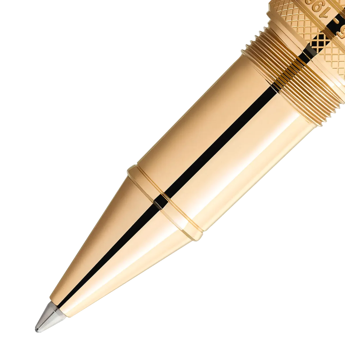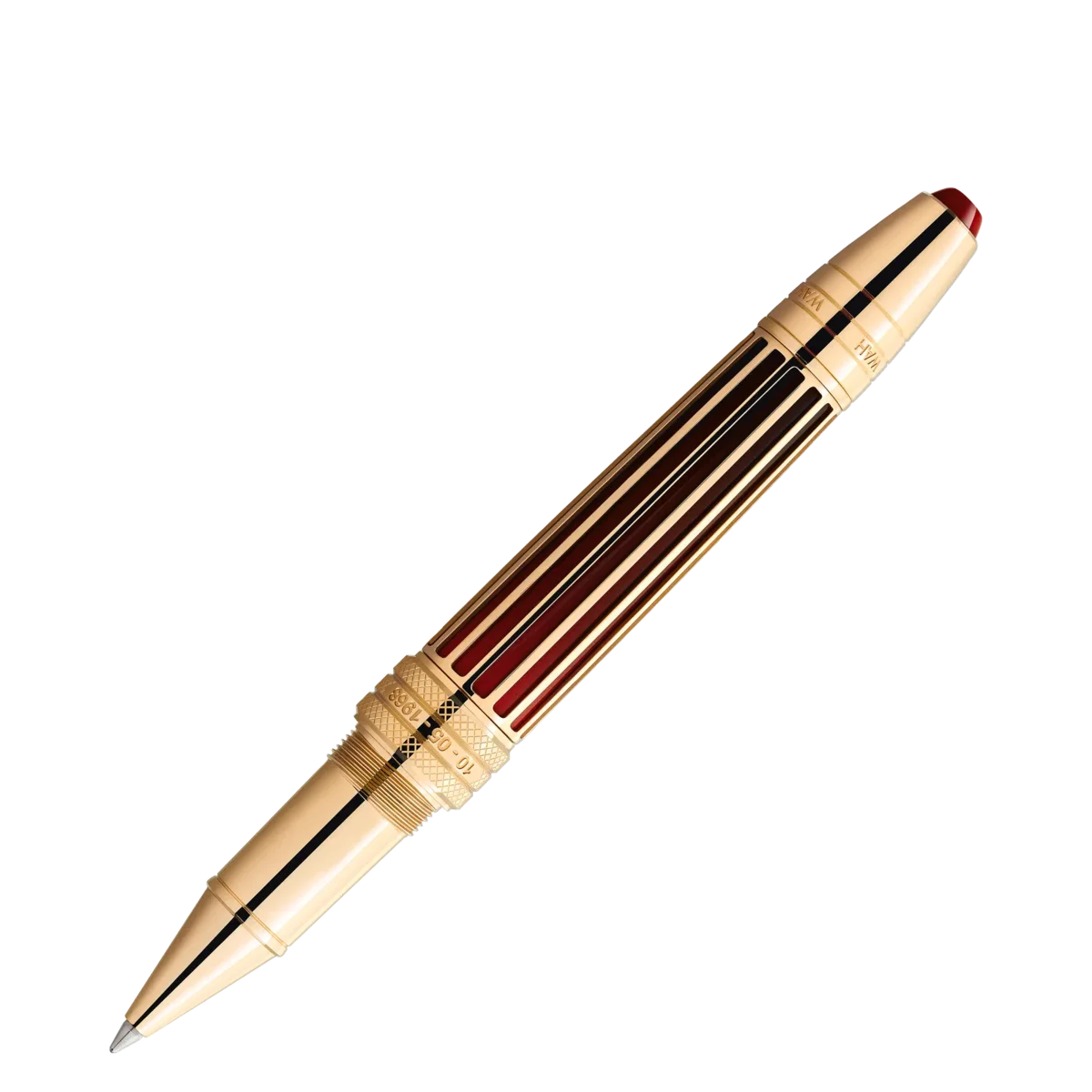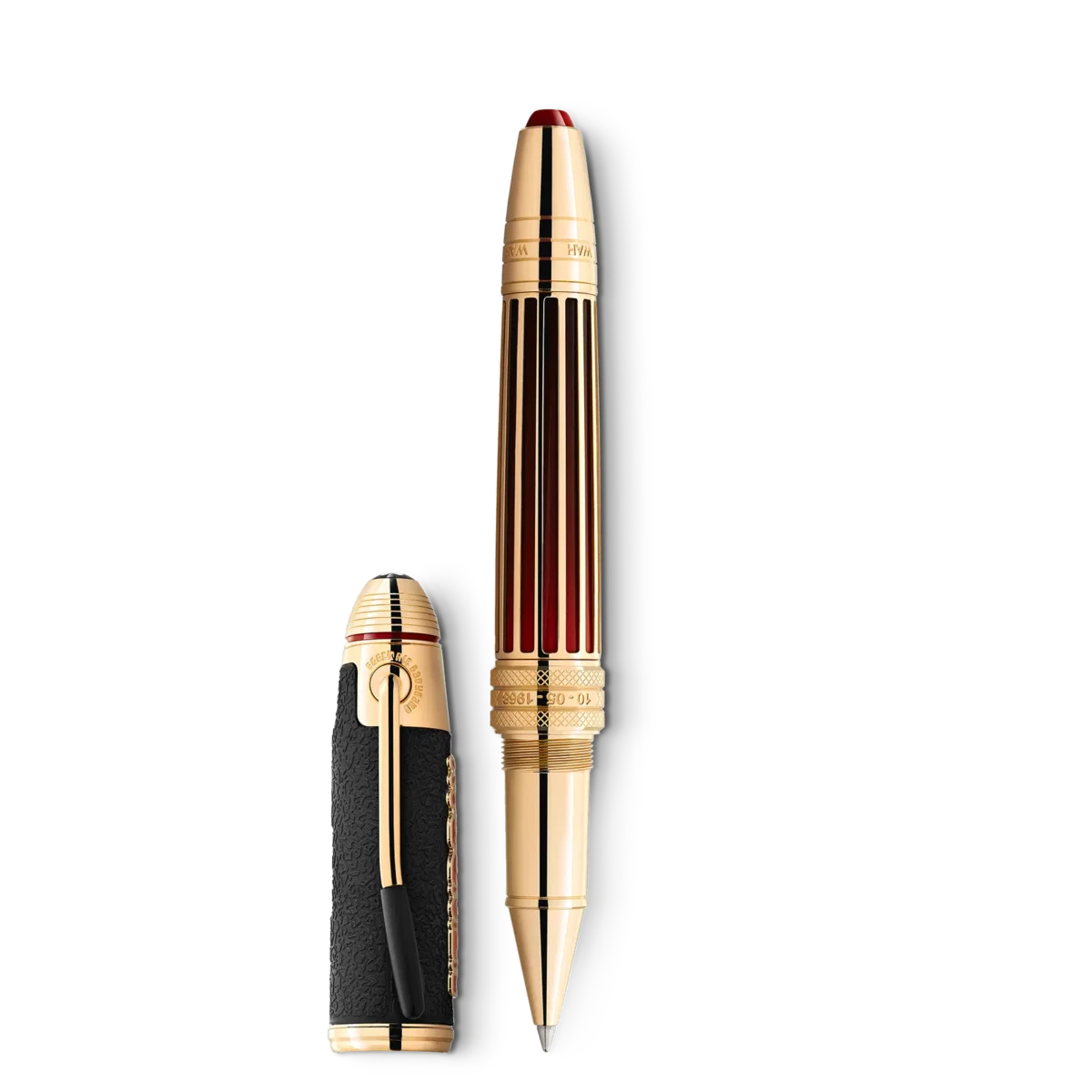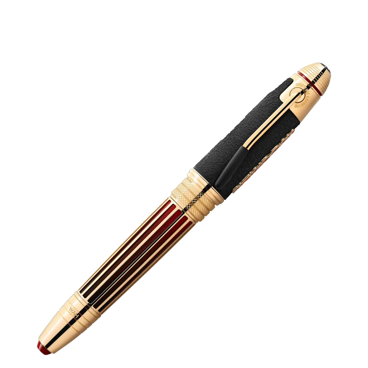 I 2022 hylder Montblanc en af de mest berømte musikere i det 20. århundrede, der af mange anses for at være en af de mest indflydelsesrige elektriske guitarister i populærmusikkens historie: Jimi Hendrix.Inspireret af coveret til albummet “Electric Ladyland” fra 1968 har denne Limited Edition 1942 en degradé-lakering, der holdes fast af et skeletagtigt overlag. Hættens overflade symboliserer materialet i en forstærker, som Hendrix brugte, og har et lakeret emblem. Den gule guldbelagte klips er vinklet, så den ligner vibrato-stangen på en elektrisk guitar. Montblanc-emblemet på hætten er lavet af ædelharpiks. Et andet slående detalje er den gule guldbelagte ring på skaftet, der er inspireret af et guitar-kabel fra 1960’erne – den er indgraveret med datoen for en berømt Jimi Hendrix-koncert.
