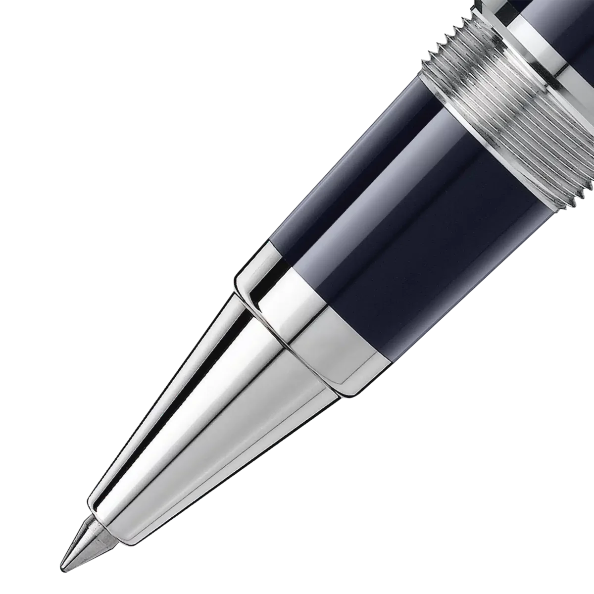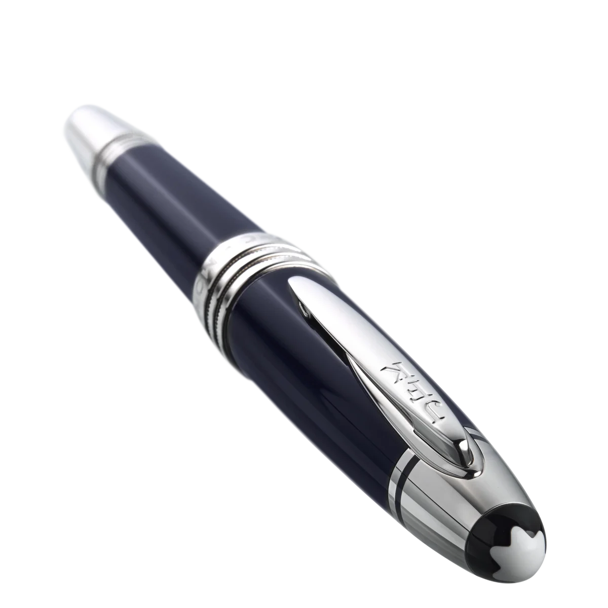Special Edition John F. Kennedy er en hyldest til en af de mest respekterede personer i moderne historie og indeholder symbolske referencer til J.F. Kennedys liv i subtile designdetaljer. Den blå ædle harpiks henviser både til Kennedys tid i den amerikanske flåde og den berømte Ivy League-stil. Hans initialer “JFK” er indgraveret på den platinbelagte klips, og de tre platinbelagte hætteringe symboliserer Kennedys tre brødre. Special Edition er kronet med Montblanc-emblemet i ædelharpiks. Identifikationsnummer MB132090 Fysisk vægt 51,7 g Dimensioner 147,9 mm * 16,5 mm * 16,5 mm