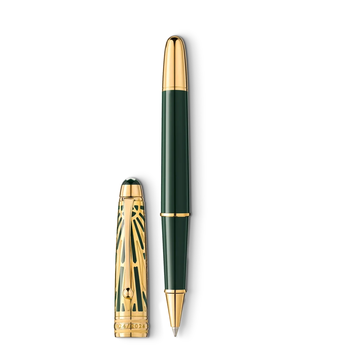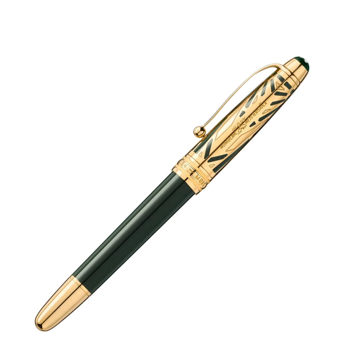 Siden lanceringen i 1924 har Montblancs Meisterstück været bredt anerkendt som det ultimative fine skriveinstrument, der symboliserer raffineret smag og en dristig udvidelse af sig selv. Uanset om det bruges til at skrive et kærlighedsbrev eller underskrive et historisk dokument, har Meisterstück sat et uudsletteligt præg på historiens sider. For at ære denne milepæl har Montblanc dykket dybt ned i sine arkiver og skabt Origin-kollektionen, der hylder brandets rige historie og arv. Kollektionen er inspireret af tidlige designs fra vores arkiver samt designelementer fra de tidligste Meisterstück-udgaver, der fanger den oprindelige ånd og tilfører den et moderne præg.Det indviklede mønster på den guldbelagte hætte, der er belagt med grøn lak, går tilbage til et uudgivet design, der har været gemt væk i årtier, hvilket giver Montblanc mulighed for endelig at introducere dette længe glemte design, der minder om Art Déco-perioden. Klipsen er en hyldest til de tidlige klipsformer, der findes i nogle af de første Meisterstück-skriveinstrumenter, og vækker en følelse af nostalgi. Ved nærmere eftersyn kan man opdage det originale Meisterstück-logo, som har prydet hætten som et symbol på høj kvalitet siden dens opståen. Denne jubilæumsudgave er dekoreret med en speciel hættering, der viser årene “1924” og “2024”. Skål for endnu 100 års excellence med Meisterstück!