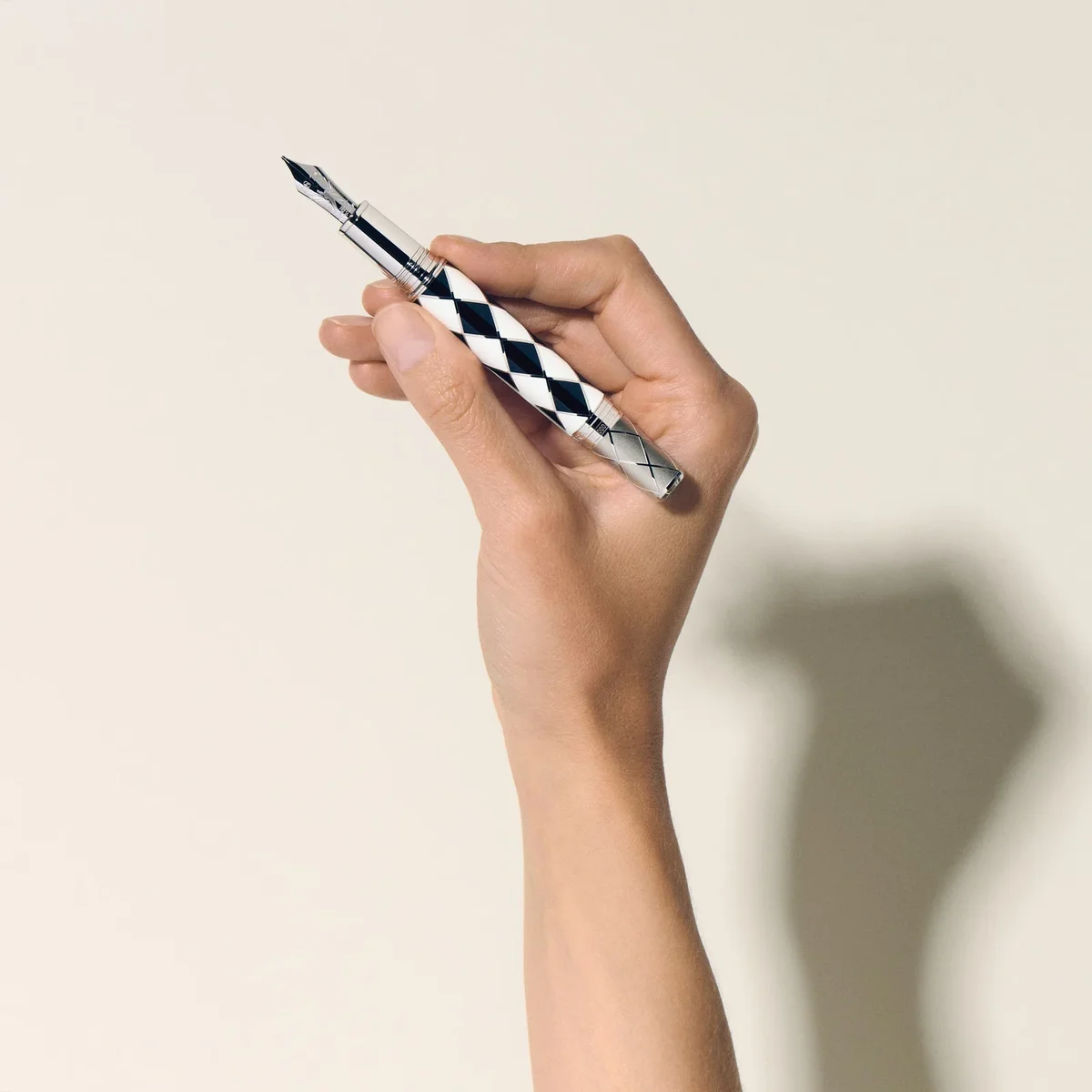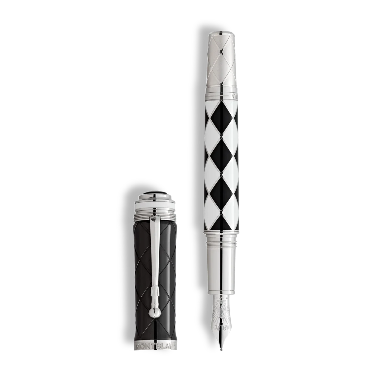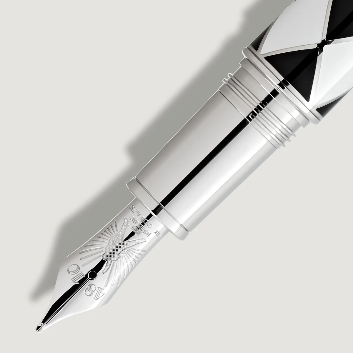 I rockmusikkens rige historie er der få navne, der har strålet så konsekvent som Queen. Med en karriere, der strækker sig over mere end fem årtier, er bandet et af verdens mest succesrige nogensinde. I denne periode kom Queen til at symbolisere den musikalske kreativitet, og de fleste af deres sange toppede hitlisterne i ugevis. De skabte noget, der lignede deres eget musikalske univers, bestående af en kombination af hård rock, glam rock, pop, funk og opera, og nedbrød grænserne mellem genrerne. Montblanc dedikerer sin Great Characters Homage to Queen Limited Edition 1975 til disse ikoner inden for rockmusikken, inspireret af albummet A Night At The Opera. Sort og hvid. Ingen anden farvekombination beskriver en så skarp kontrast, og ingen anden kunne bedre symbolisere omfanget af Queens musikalske univers. I en periode var The Black and the White endda udset til at blive titlen på deres andet studiealbum og var mottoet for Mercurys spektakulære fødselsdagsfest elleve år senere. Limited Edition 1975 fremstår også i denne kontrastfulde skikkelse. Bandets fjerde studiealbum overgik imidlertid alt, hvad der var kommet før, og betragtes som det mest gennemarbejdede album i det 20. århundrede. De fire kunstnere, der medvirkede på det, er gået over i historien: Freddy Mercury, den karismatiske frontmand med et stemmeomfang på flere oktaver og et rigt vibrato; Brian May, den virtuose guitarist med sin umiskendelige elektriske guitarlyd; John Deacon, den meget kreative bassist, og Roger Taylor, bandets rytmiske hjerte. Som en hyldest til disse fire exceptionelle musikere er deres stiliserede portrætter foreviget på den sorte hætte på skriveinstrumentet, baseret på kunstværket fra de ikoniske Queen II- og Hot Space-covers. Albummet A Night at the Opera – og især dets centrale nummer Bohemian Rhapsody – er et eksempel på Freddie Mercurys drøm om at skabe en plade af episke proportioner. Singlens seks minutter lange, ekstravagante arrangement kombinerer klaverballader, opera og rock, indimellem lag på lag af operatiske, kaskadeagtige vokaler og finurlige referencer til figurer som Galileo eller Scaramouche, en figur fra Commedia dell’Arte. Mercury selv, der var kendt for sine ekstravagante scenekostumer, glidede ofte ind i rollen som en anden figur fra Commedia dell’Arte, Harlequin. Hans berømte tætsiddende dragt med sort-hvidt diamantmønster understregede hans ukonventionelle scenepersonlighed og inspirerede det rombeformede design af tonen. Udgaven hylder også Brian May og hans fantastiske guitarspil, som var så afgørende for albummets lyd, ved at give den platinbelagte membran sit karakteristiske udseende. Dette minder om volumen- og tonekontrolknapperne på Mays berømte elektriske guitar. Membranringen er præget med albummets navn: A Night at the Opera. Udgivelsesåret, 1975, inspirerede beslutningen om at begrænse udgaven til 1975 fyldepenne og 1975 rollerballs. Den krone, som Mercury bar under den afsluttende fortolkning af God Save The Queen, var inspirationen bag silhuetten af hætten på Limited Edition og er samtidig en metafor for bandets majestætiske karakter og dets musikalske arv. Den platinbelagte klips er designet til at ligne et mikrofonstativ som en reference til et af kendetegnene ved Freddie Mercurys liveoptrædener. Identifikationsnummer MB131968 Fysisk vægt 86,2 g Dimensioner 144,8 mm * 17,8 mm