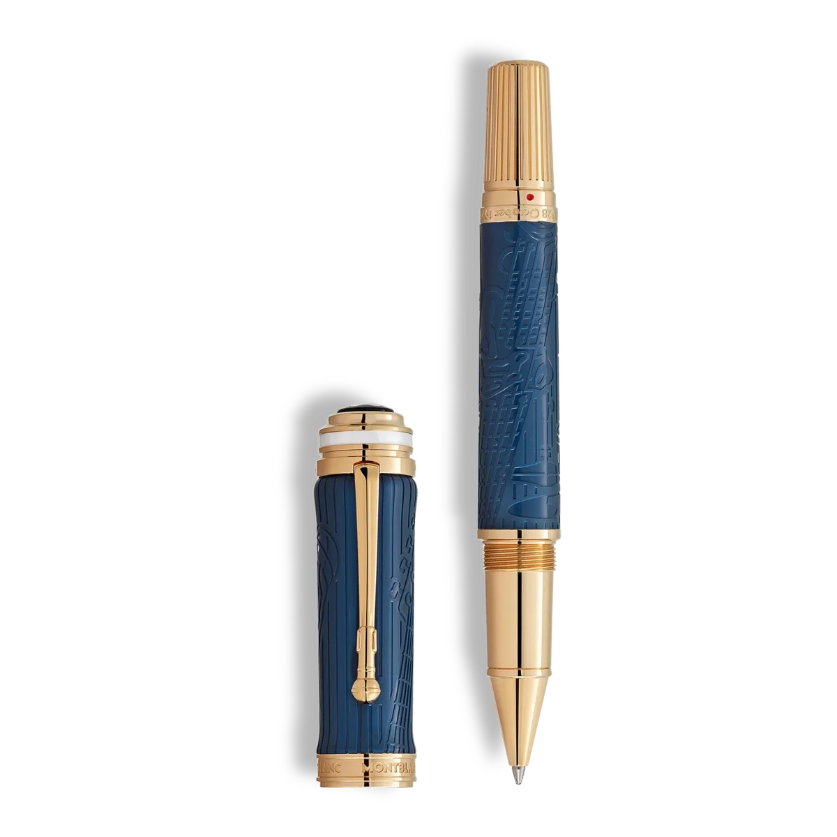 I rockmusikkens rige historie er der få navne, der har strålet så konsekvent som Queen. Med en karriere, der strækker sig over mere end fem årtier, er bandet et af verdens mest succesrige nogensinde. I denne periode kom Queen til at symbolisere den musikalske kreativitet, og de fleste af deres sange toppede hitlisterne i ugevis. De skabte noget, der lignede deres eget musikalske univers, bestående af en kombination af hård rock, glam rock, pop, funk og opera, og nedbrød grænserne mellem genrerne. Med inspiration fra albummet Greatest Hits II fra 1991 hylder Montblanc med Great Characters Homage to Queen Special Edition et af Queens mest succesrige albums. I tråd med den slående farvekombination på dobbelt-LP’en Greatest Hits II kommer udgaven i mørkeblå med forgyldte beslag. De fire musikere bag lyden på dette legendariske kompilationalbum er gået over i historien: Freddy Mercury, den karismatiske frontmand med et stemmeomfang på flere oktaver og et rigt vibrato; Brian May, den virtuose guitarist med sin umiskendelige elektriske guitarlyd; John Deacon, den alsidige og kreative bassist; og Roger Taylor, bandets rytmiske hjerte. Som et tegn på deres musikalske virtuositet, der gjorde albummet fra 1991 til et af de mest solgte og kendte i verden, er deres “værktøjer” subtilt foreviget på den ædle harpiks: mikrofon og bas på hætten; guitar og trommesæt på cylinderen. På deres album Greatest Hits II præsenterede bandet et bredt udvalg af deres hits, fra rockhymner til iørefaldende popsange – herunder ikoniske numre som A Kind of Magic, klassikere som Radio Ga Ga og The Show Must Go On, det medrivende I Want to Break Free eller det rørende Under Pressure, et samarbejde med David Bowie. Ud over Freddy Mercurys stemme var nøglen til bandets særlige lyd Brian Mays fremragende guitarspil. Skriveinstrumentet hylder ham og hans virtuositet med sin spidsform. Den er designet med de karakteristiske volumen- og tonekontrolknapper fra hans berømte elektriske guitar i tankerne og har et delikat riflet mønster, en lille rød prik samt en indgravering af udgivelsesdatoen for Greatest Hits II-albummet.Den krone, som Mercury bar under den afsluttende fortolkning af God Save The Queen, var inspirationen bag silhuetten af Special Edition-hættens top og er samtidig en metafor for bandets majestætiske karakter og dets musikalske arv. Den guldbelagte klips er designet til at ligne et mikrofonstativ som en reference til et af kendetegnene ved Freddie Mercurys liveoptrædener.