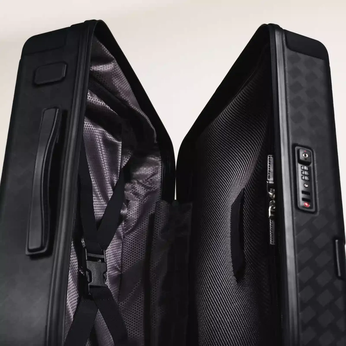 Denne #MY4810 kabinekuffert kombinerer æstetik med funktionalitet og er den ideelle ledsager til forretningsrejser og storbyferier. De støjsvage hjul og de komfortable læderhåndtag med et multi-stop-system gør den nem at transportere, mens TSA-låsen giver ekstra sikkerhed og praktisk anvendelighed. Trolleyen, der måler 38 x 55 x 23 cm (volumen 37 l), accepteres generelt som håndbagage. Det rummelige interiør er opdelt i to hovedrum og har en visitkortholder.