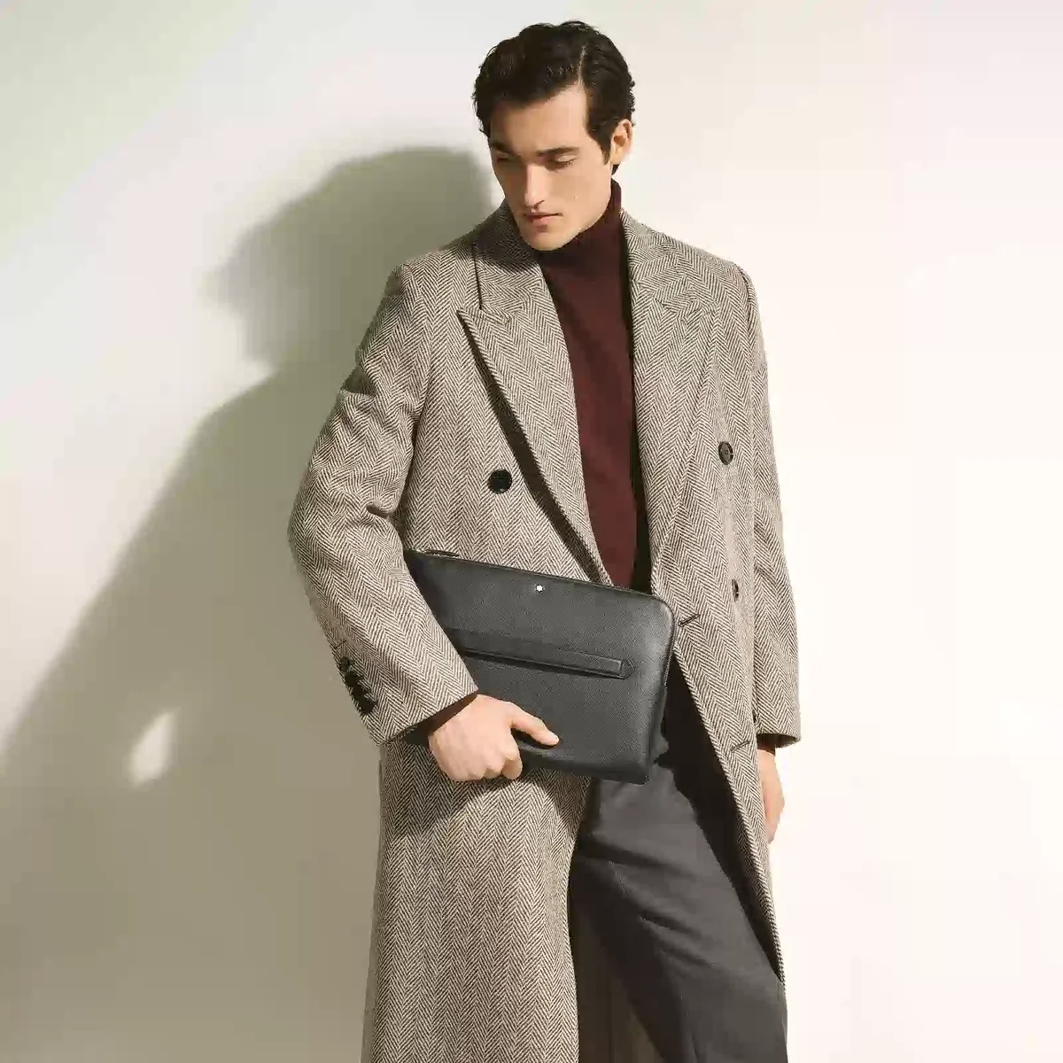 Denne Saffiano-trykte læder-laptoptaske kombinerer funktion med stil og holder din computer sikker og beskyttet, uanset hvor din arbejdsdag fører dig hen. Læderhåndtaget gør det muligt at bære den på forskellige måder.