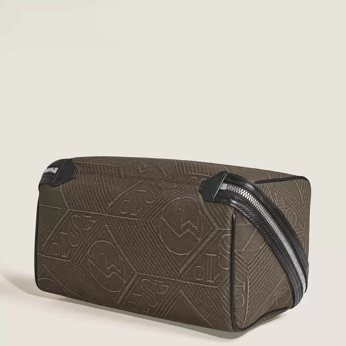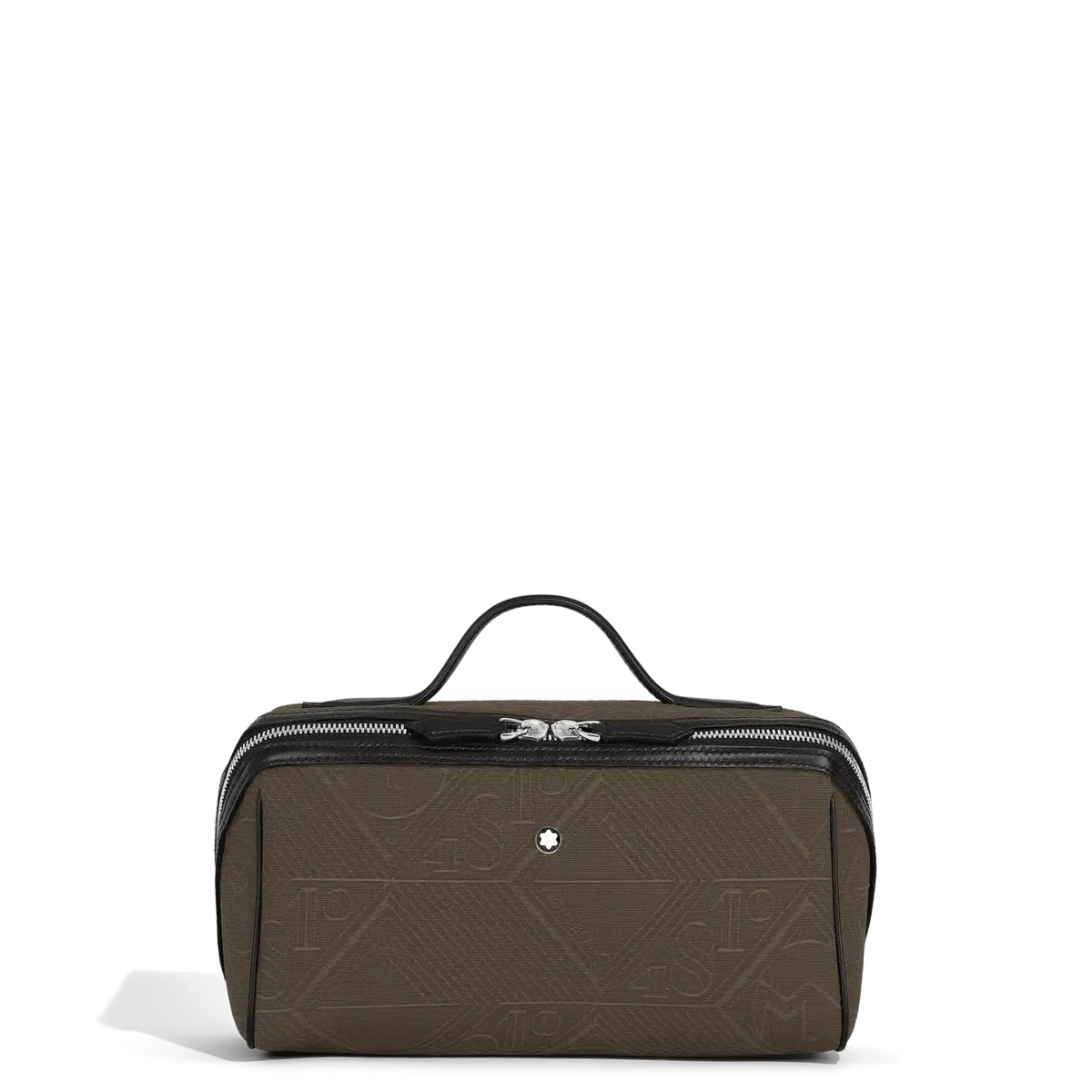 Toilettasken kombinerer raffineret håndværk med rejsevenlig funktionalitet. Den er fremstillet af det innovative 4810 jacquard-materiale, og dets strukturerede, tredimensionelle mønster er inspireret af Montblancs art deco-arv, det arkitektoniske design af Montblanc Haus og den ikoniske 4810 m høje bjergtop. Den khakifarvede nuance, der er opnået gennem jacquardvævning, stykkefarvning og stenvask, tilføjer en tidløs, brugt charme. Den er designet med henblik på bekvemmelighed og har en 360° lynlåsåbning, et læderhåndtag øverst, to rum og en indvendig lynlåslomme, der gør det nemt at organisere sine ting på rejsen.