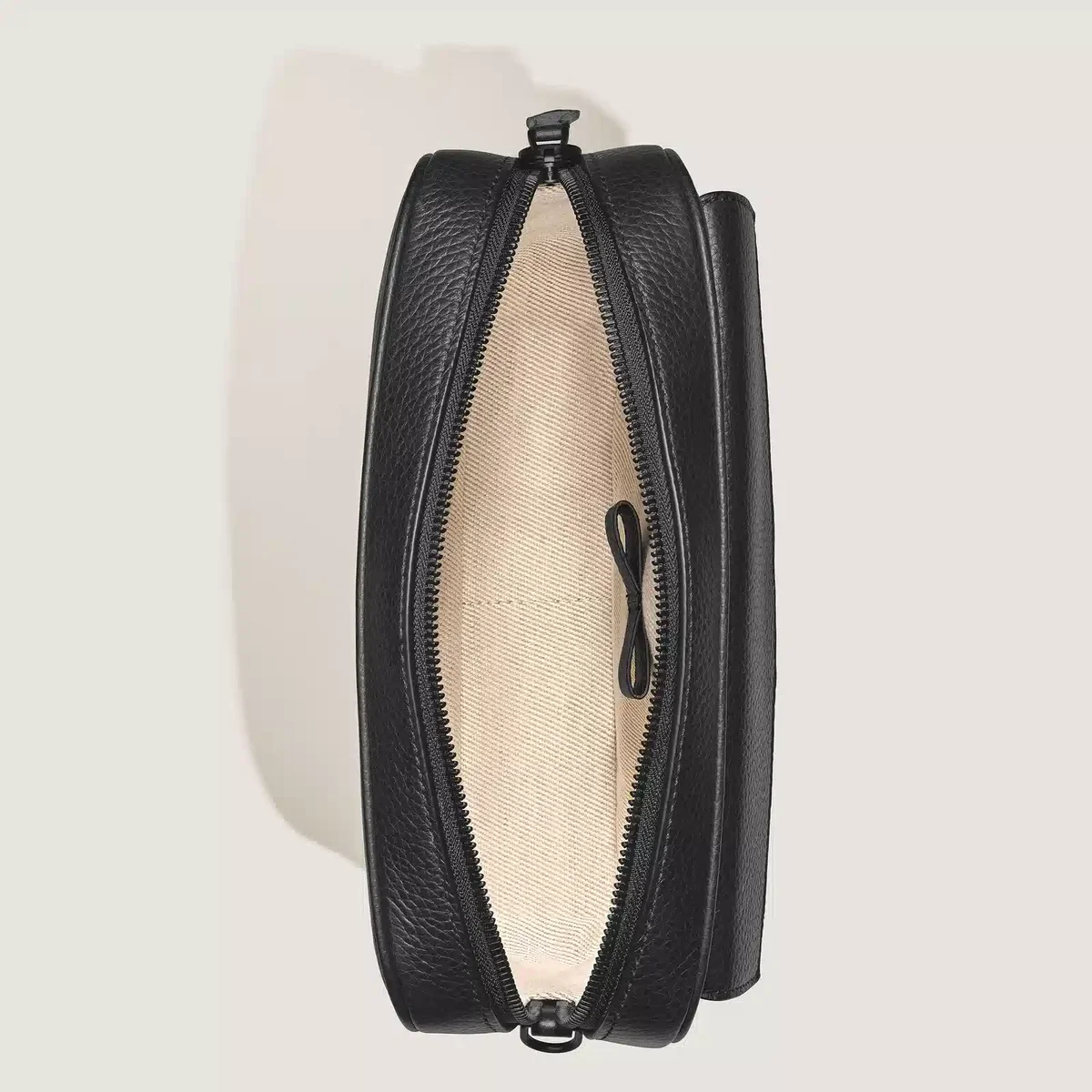 Oplev den elegante messenger-taske, der er fremstillet af struktureret, men blødt sort læder og har den sikre M LOCK 4810-lukning foran. Designet omfatter et rummeligt hovedrum, en let tilgængelig frontlomme under klappen og en indvendig åben lomme, så du kan holde orden på dine ting. For at give tasken et personligt præg kan låsen foran tilpasses, så tasken bliver helt unik. Den justerbare og aftagelige skulderrem sikrer komfortabel og alsidig transport med ubesværet stil.