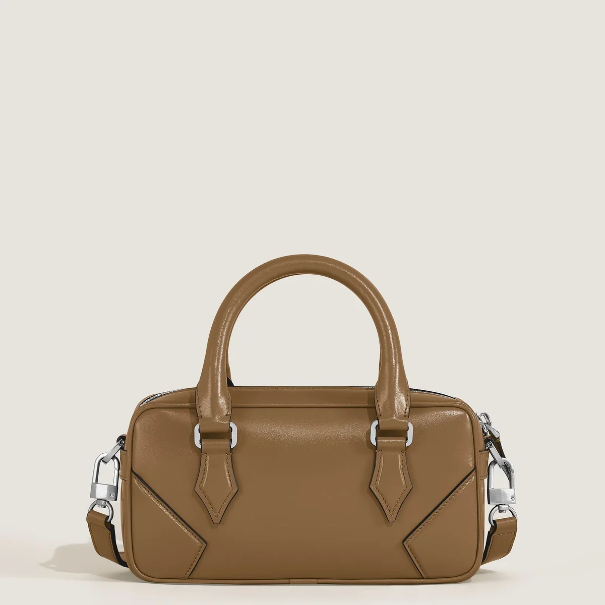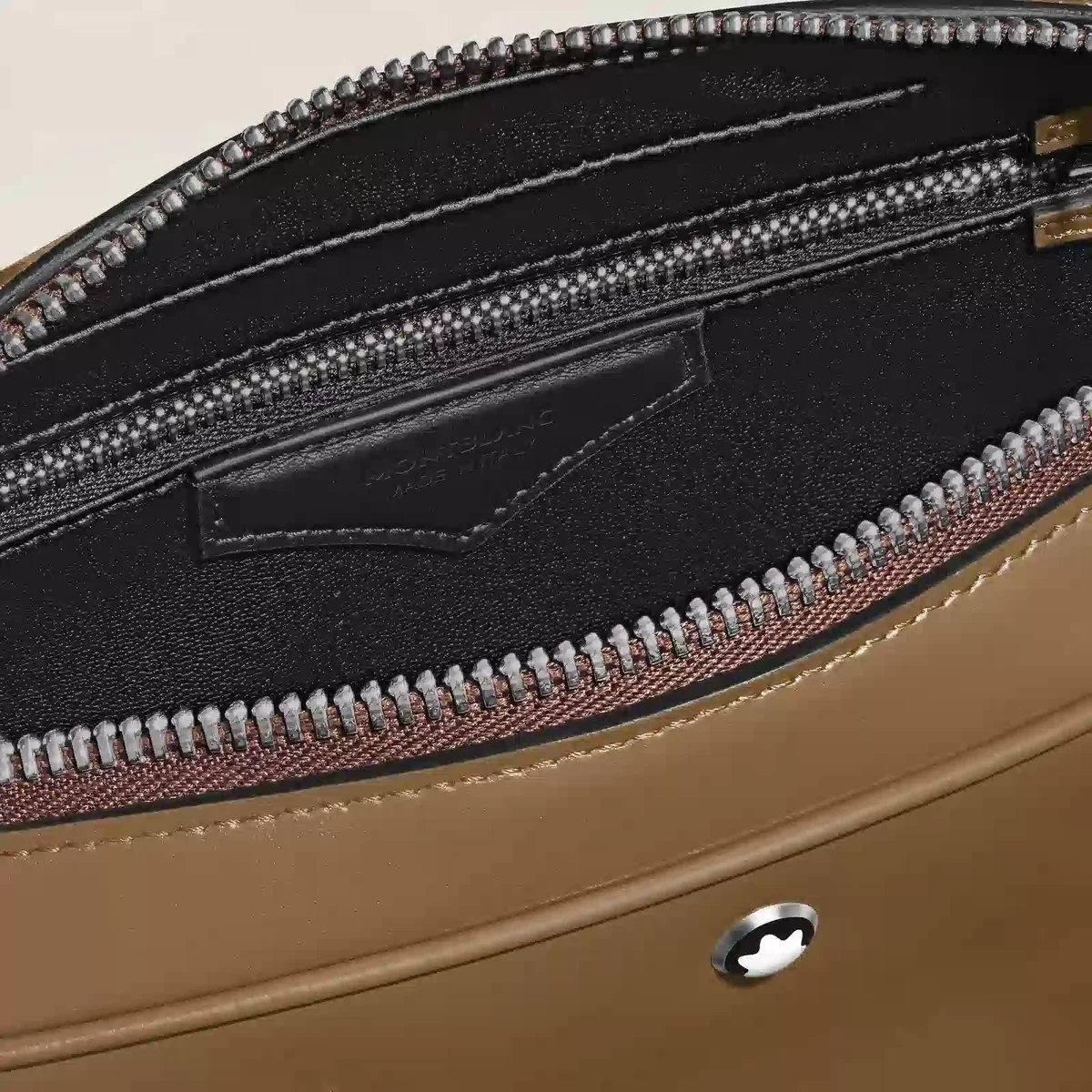 Oplev den nye stilfulde lille bowlingtaske, der er fremstillet af elegant sandfarvet Meisterstück-læder. Denne alsidige taske har et rummeligt hovedrum og en praktisk lynlåslomme til mindre nødvendigheder. Den har to håndtag i toppen og en justerbar, aftagelig skulderrem og kombinerer ubesværet funktionalitet med raffineret elegance.