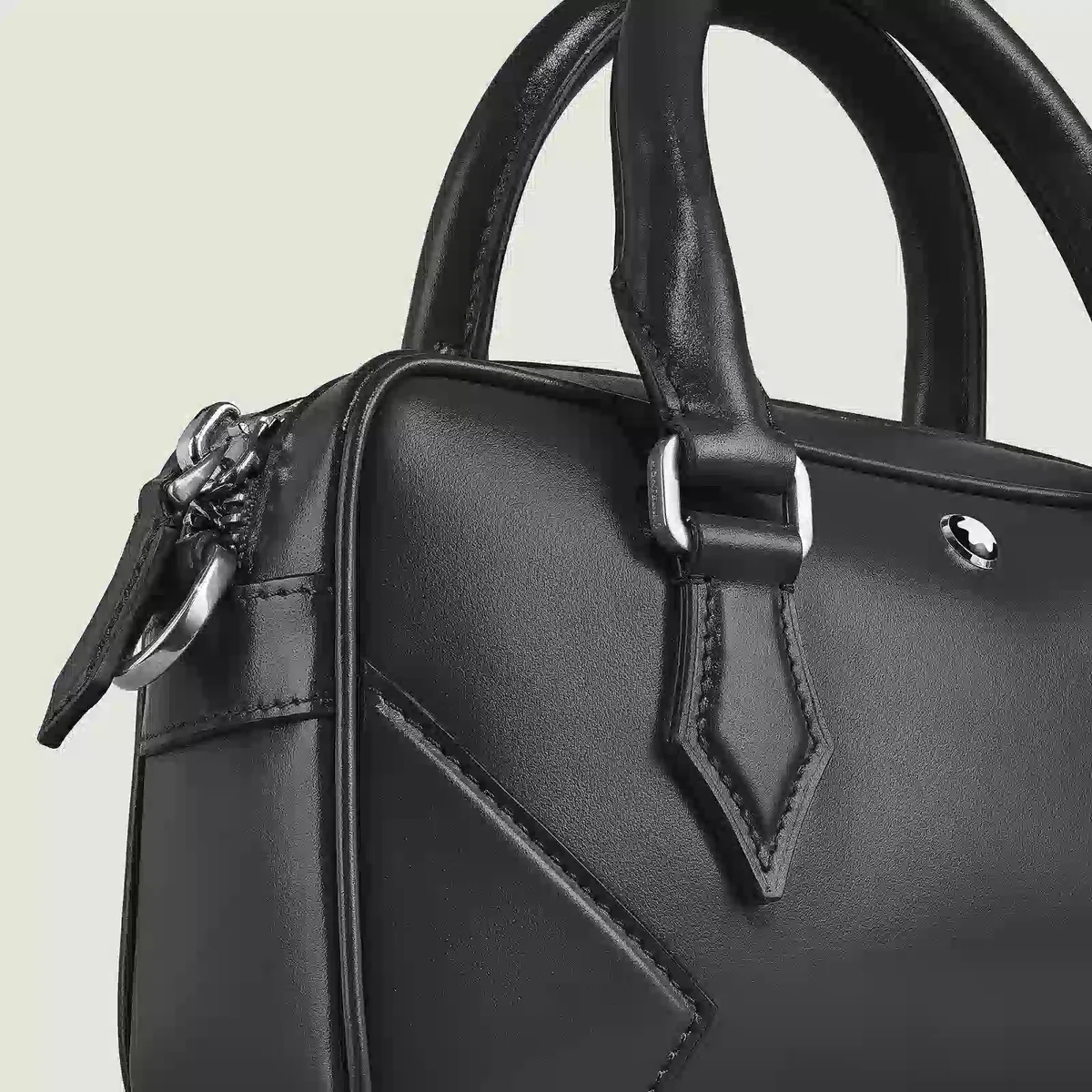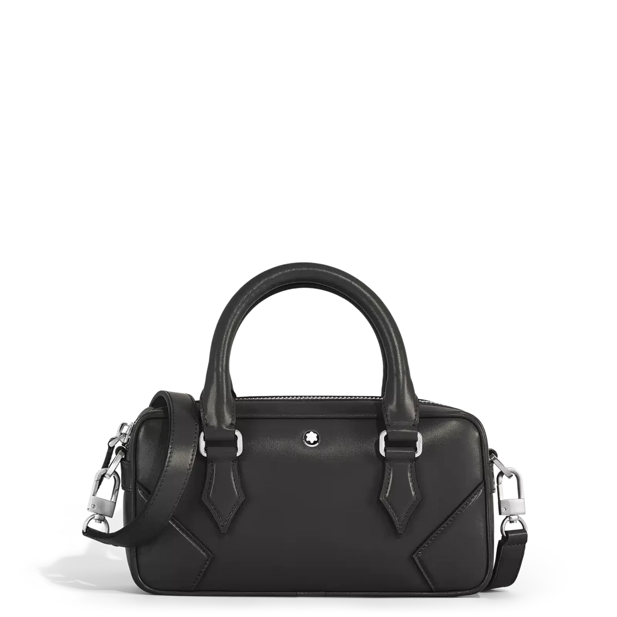 Oplev den nye stilfulde lille bowlingtaske, der er fremstillet af glat sort Meisterstück-læder. Denne alsidige taske har et rummeligt hovedrum og en praktisk lynlåslomme til mindre nødvendigheder. Den har to håndtag i toppen og en justerbar, aftagelig skulderrem og kombinerer ubesværet funktionalitet med raffineret elegance.