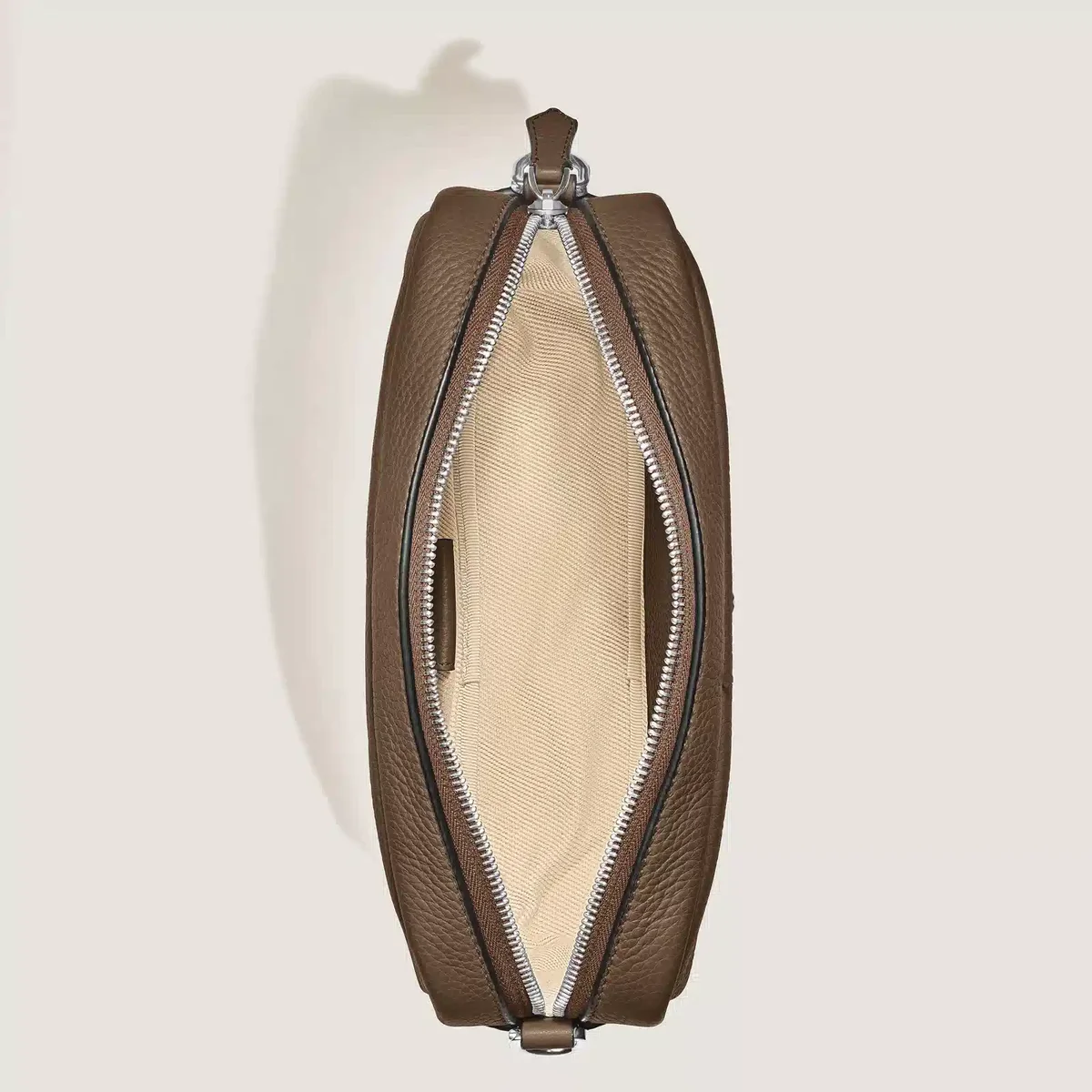 Denne lille crossbody-taske er fremstillet af blødt noisette-kornet kalveskind og har en rektangulær silhuet, der fremhæves af Meisterstück-læderdetaljer, herunder en markant lynlåstrækker i form af en penespids og raffinerede sadelsting, der minder om sporene efter en pen. Den er designet med henblik på praktisk anvendelighed og har et hovedrum med en åben lomme og to penneholdere, mens en aftagelig, justerbar skulderrem giver alsidige bæremuligheder med ubesværet stil.