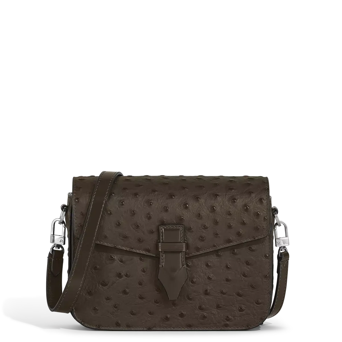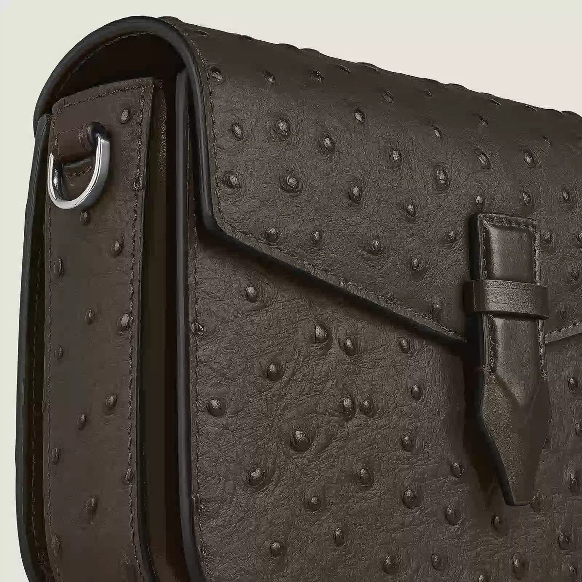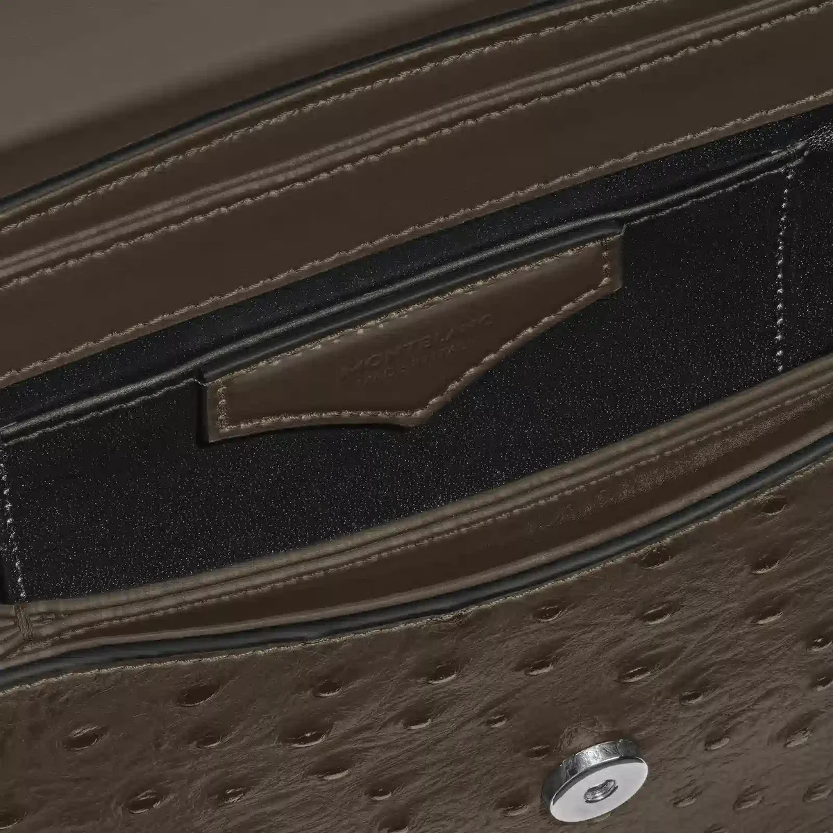 Oplev vores crossbody-taske med strudseprægning, fremstillet i stilfuldt khaki læder. Den er alsidig og iøjnefaldende og har tre rum og en indvendig åben lomme for optimal organisering. Den unikke flaplukning i form af en penespids er en hyldest til Montblancs skrivetradition, mens den justerbare og aftagelige skulderrem giver alsidige bæremuligheder. Denne taske er indbegrebet af Montblancs håndværk, hvor arven fra skrivekulturen er smukt legemliggjort. Bemærk, at dette produkt indeholder magneter. Før du bruger den, bedes du læse afsnittet om magneter i den medfølgende servicevejledning eller afsnittet om kundeservice på Montblancs hjemmeside. Hvis du har spørgsmål, bedes du kontakte din læge. Identifikationsnummer: MB220472 Mål: 195 mm * 70 mm * 140 mm