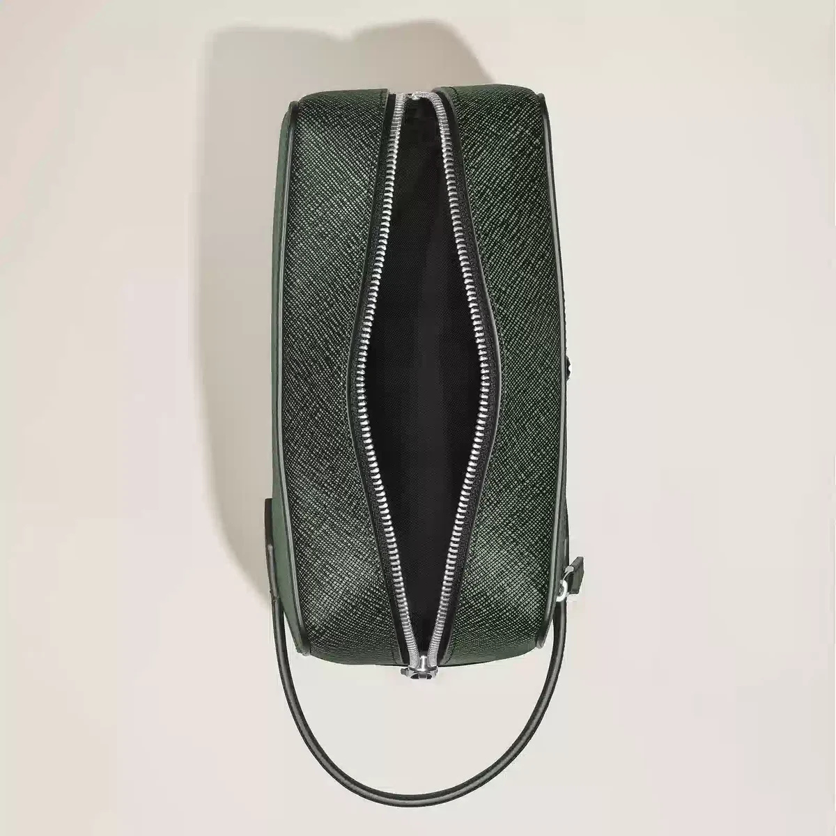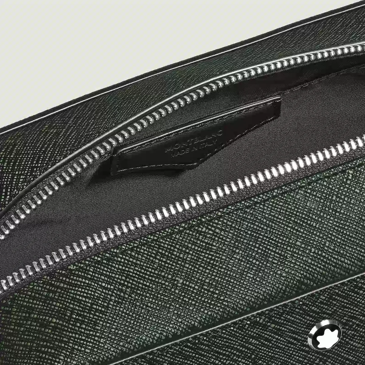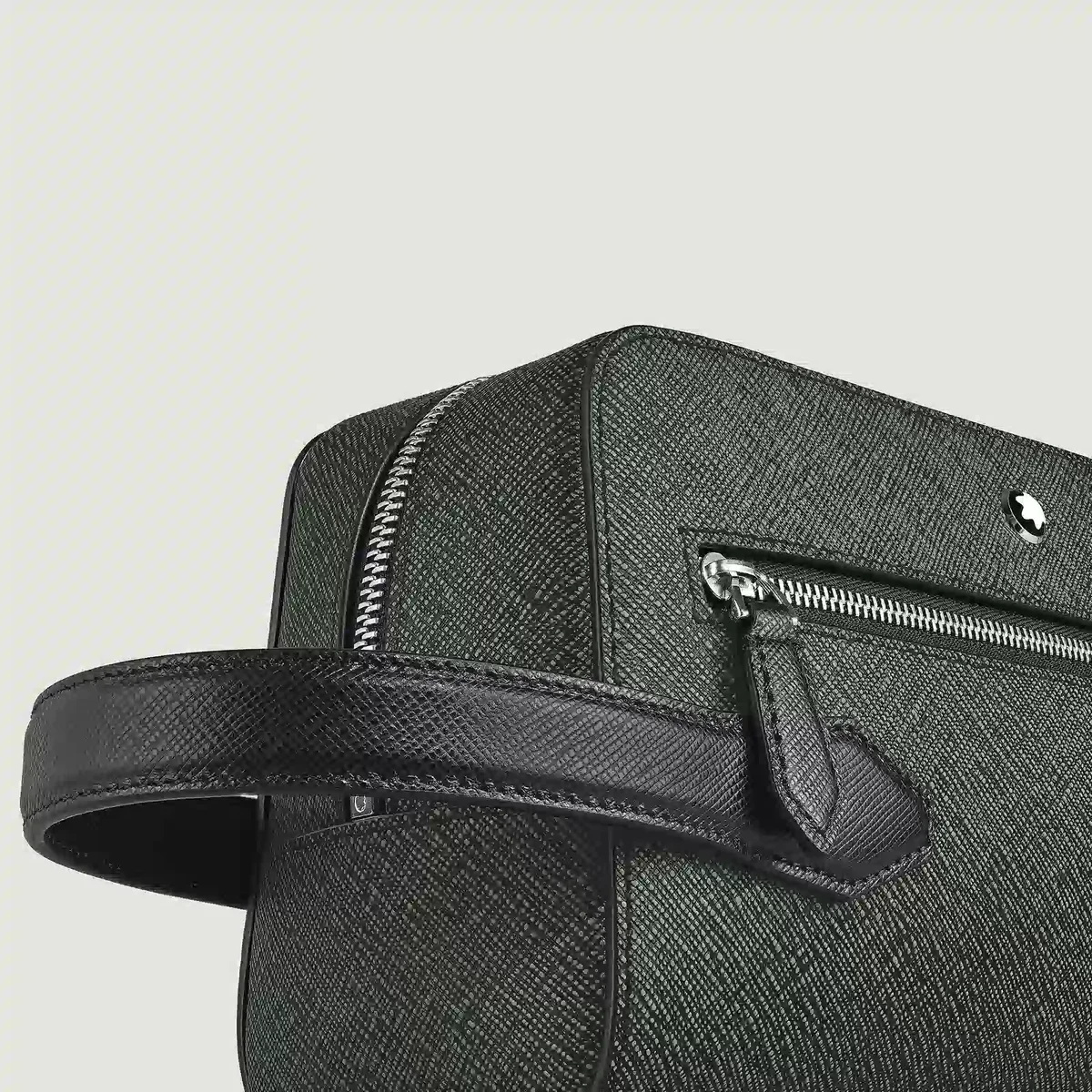 Uanset om det er til forretningsrejser eller ferier, er denne clutch en uundværlig rejsekammerat. Den er fremstillet af præget Sartorial-læder i en raffineret tofarvet kombination af elegant khaki og sort og har et rummeligt interiør og en udvendig lynlåslomme til dine vigtigste ting. Læderhåndtagene gør det muligt at bære den i hånden eller pakke den ned i en rejsetaske.