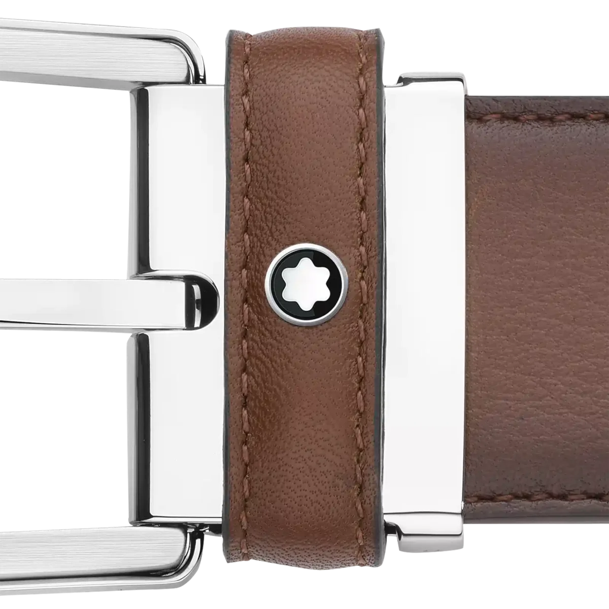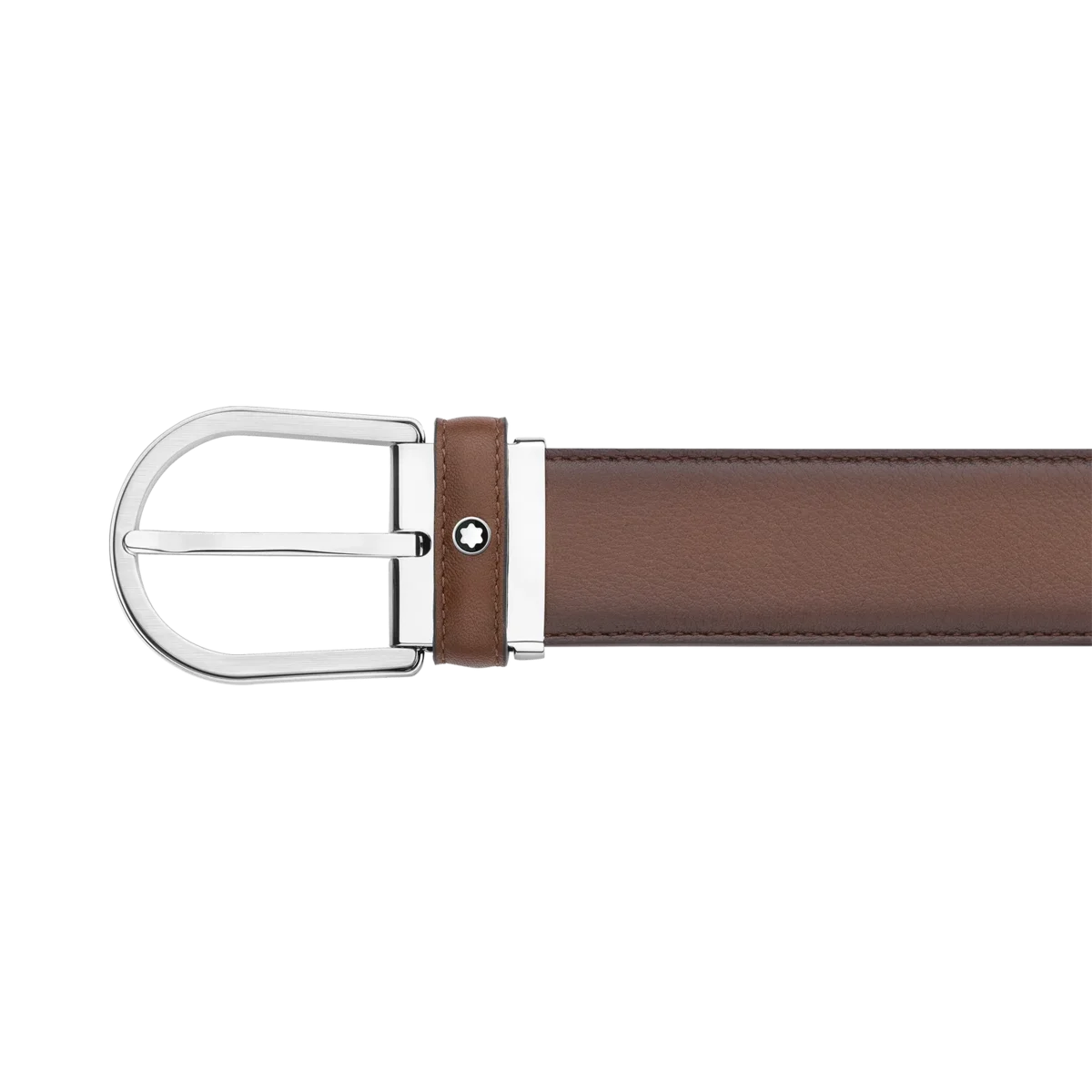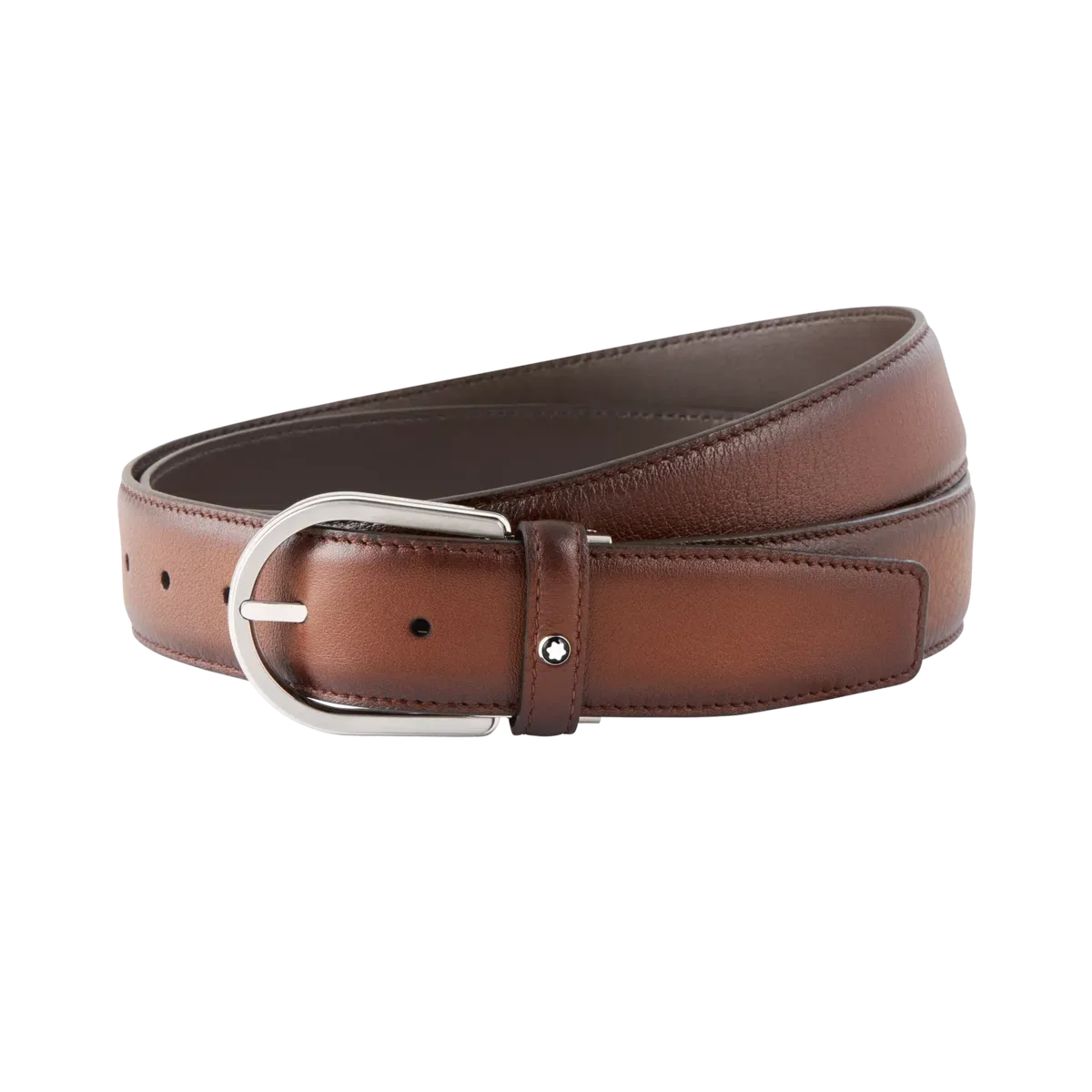 Hesteskoformet blank og mat spænde i rustfrit stål. Selvjusterbar, 3,5 cm x 120 cm, brun læderrem med den unikke patina af håndmalet læder med en delikat farveovergang. Identifikationsnummer MB118413 Mål 1200 mm * 35 mm * 5 mm