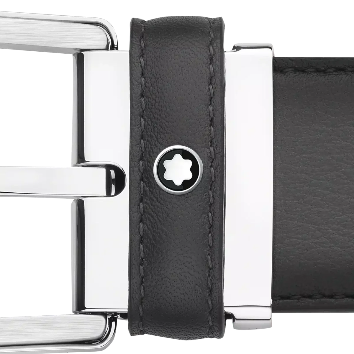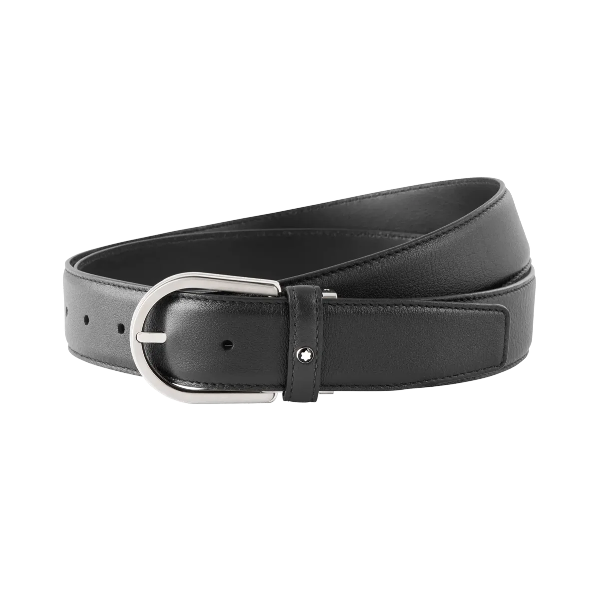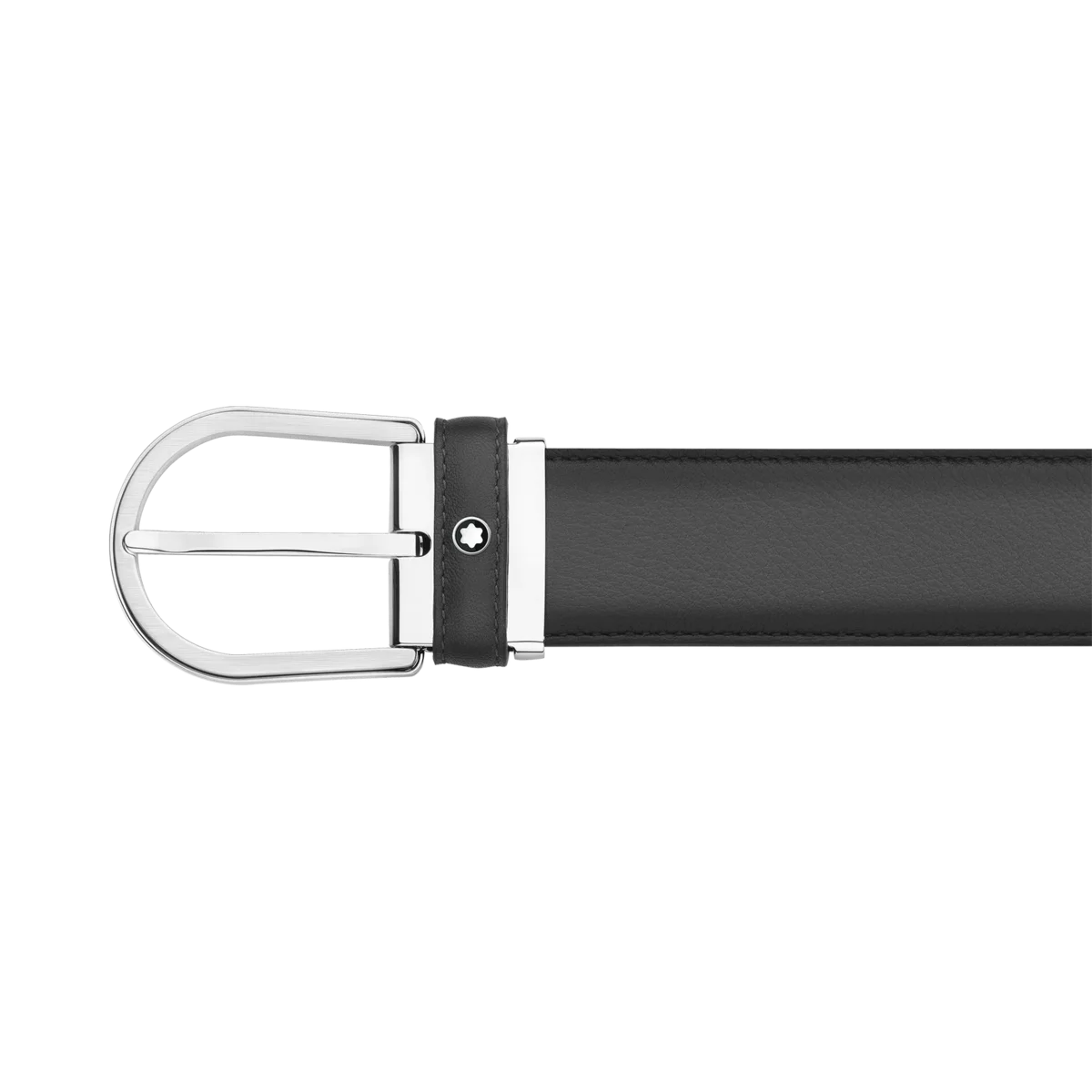 Hesteskoformet, skinnende og mat spænde i rustfrit stål. Selvjusterende, 3,5 cm x 120 cm, grå læderrem med den unikke patina fra håndmalet læder med en delikat farveovergang.MB118414