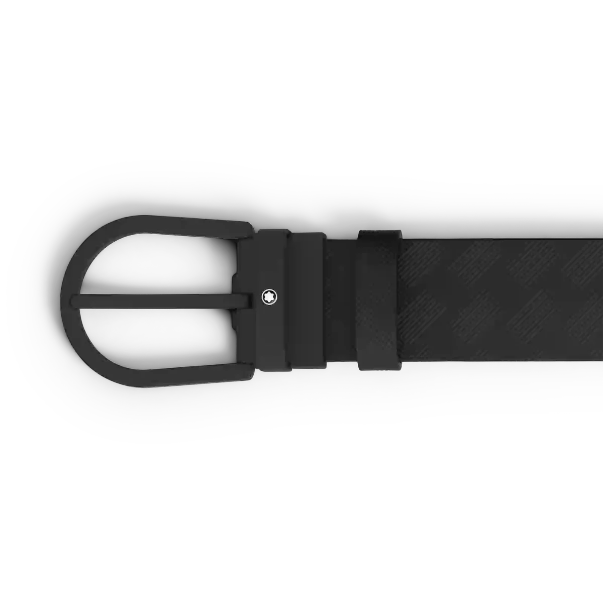 Dette 3,5 x 120 cm store bælte er en pålidelig ledsager til ethvert outfit. Det er fremstillet af det karakteristiske Extreme 3.0-læder med tryk og har en sort hesteskoformet spænde med gummibelægning og et diskret Montblanc-emblem.