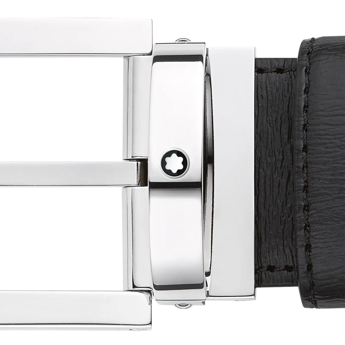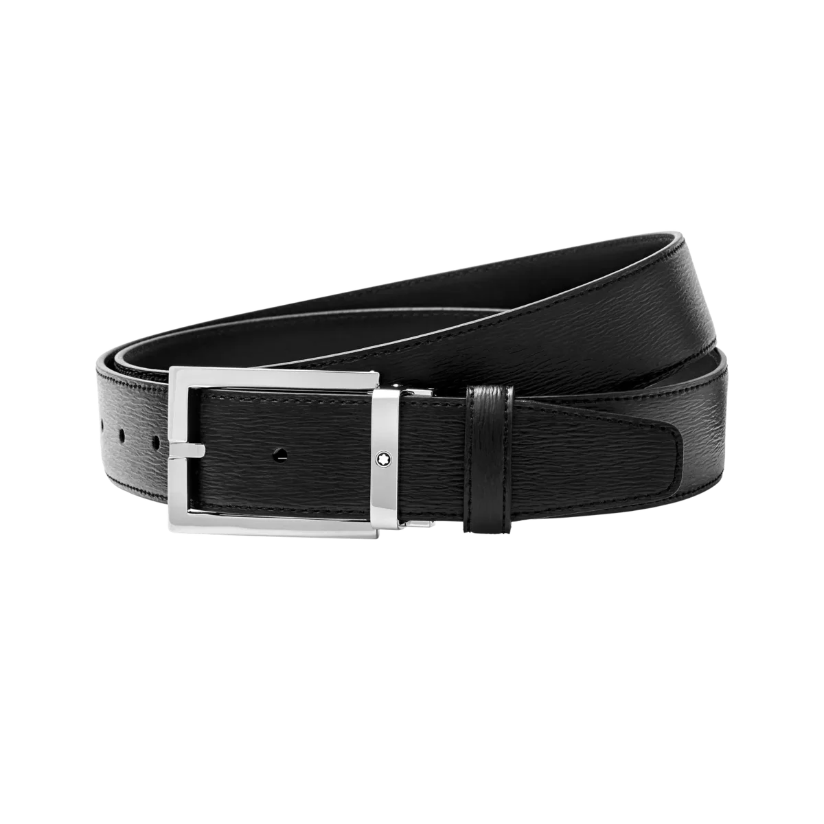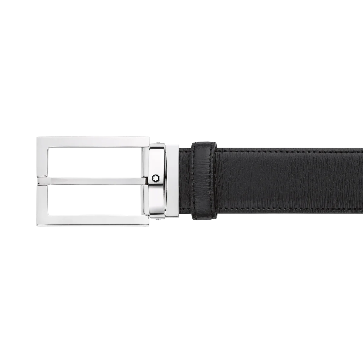 Rektangulær, blank spænde i rustfrit stål. Selvjusterbar, 3,5 cm x 120 cm, sort Westside læderrem.
