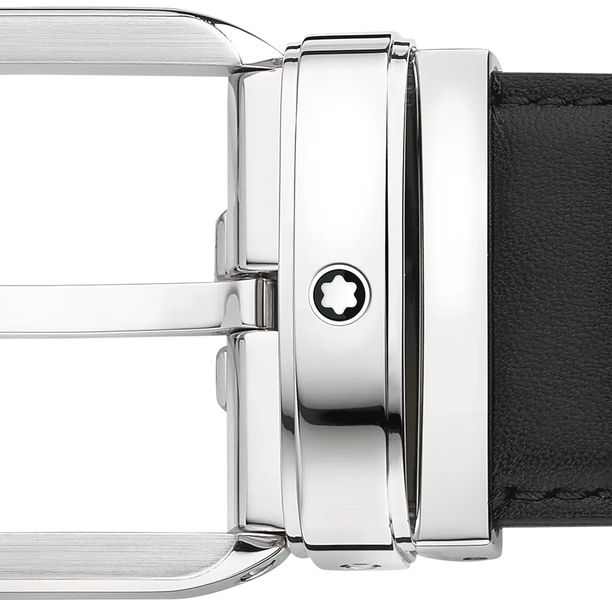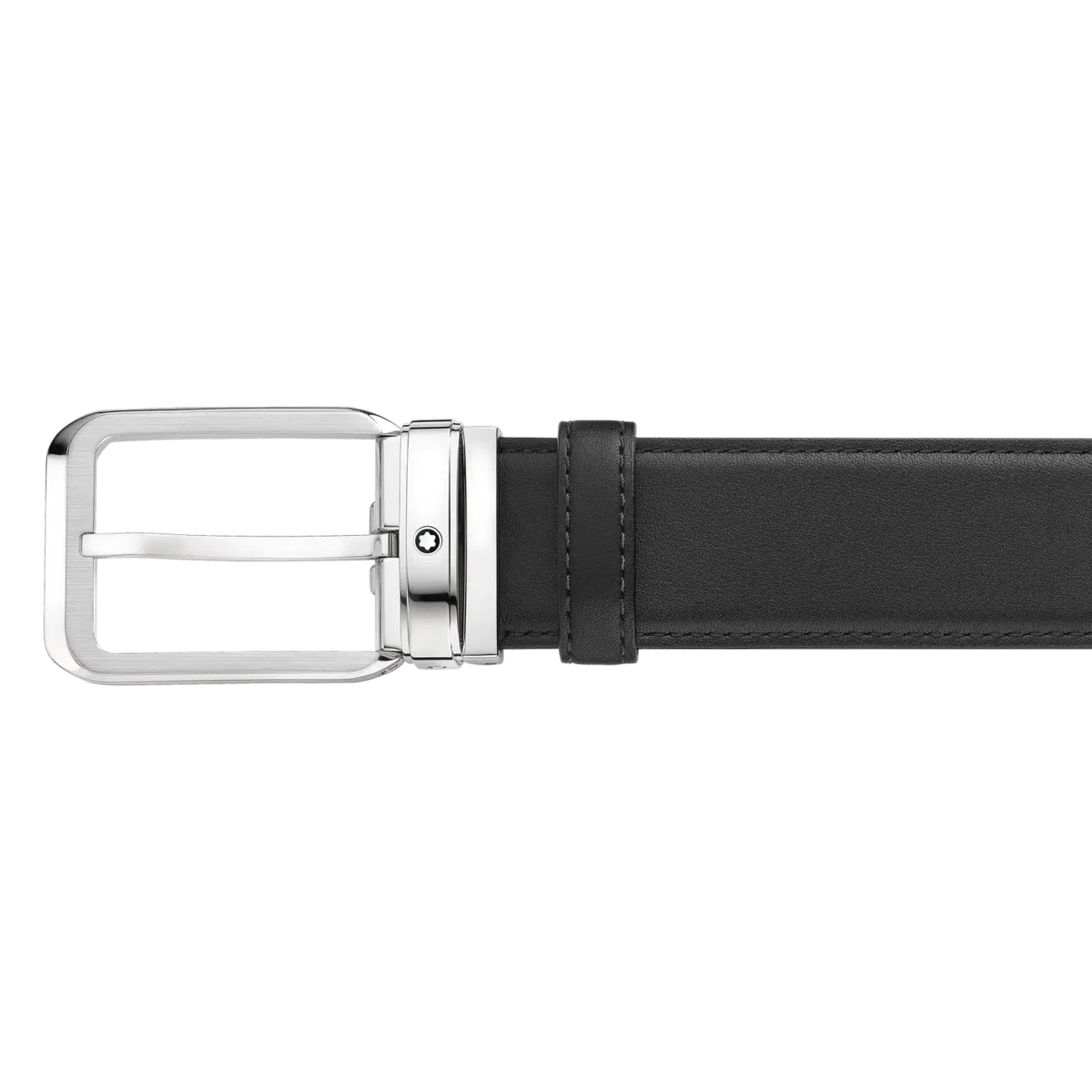 Rektangulær spænde i rustfrit stål. Selvjusterbar, 3,5 cm x 120 cm, rem i sort glat læder. Dette bælte passer både til forretningstøj og moderne looks.