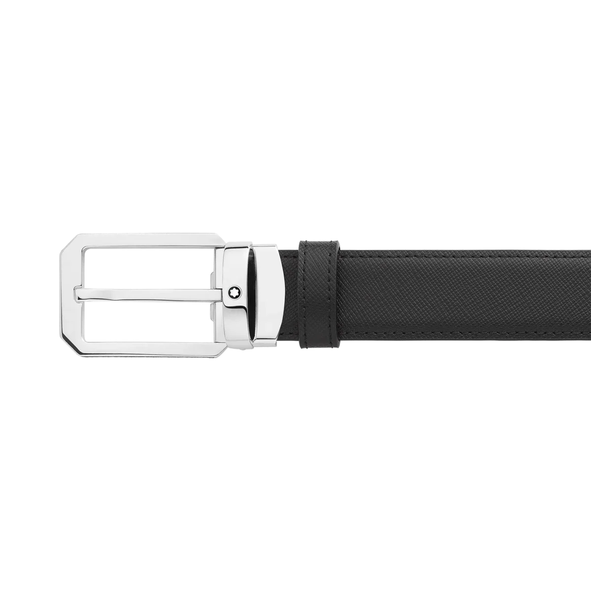 Trapezformet, skinnende spænde med palladiumfinish og læderdetaljer. Selvjusterbar, 3 cm x 120 cm, vendbar saffiano-læderrem i sort og brun. Designet til et klassisk look med et twist. Identifikationsnummer MB128759 Mål 1200 mm * 30 mm * 5 mm