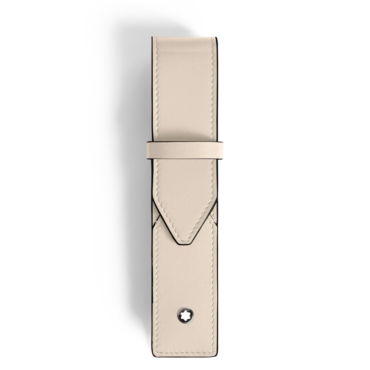 Meisterstück-penneetuiet er håndlavet af glat læder i skyet beige og er en stilfuld måde at opbevare dit skriveinstrument sikkert på. Det robuste etui er designet til at rumme en pen på størrelse med Montblanc Meisterstück Classique eller LeGrand og passer komfortabelt i lommen.