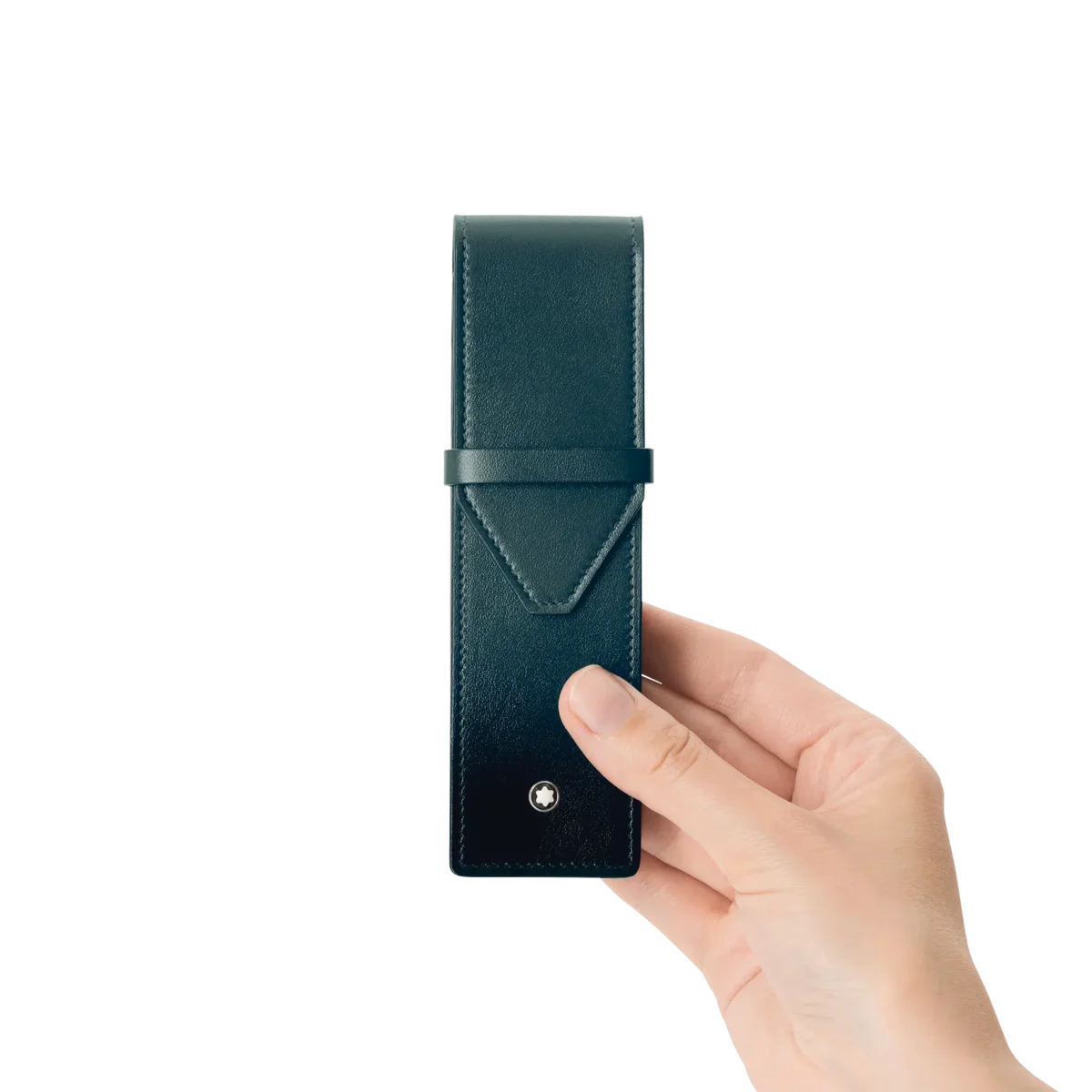 Bær dine skriveinstrumenter med stil i denne alsidige Meisterstück-pennepose. Den er designet til at være din stilfulde ledsager på kontoret og andre steder og giver plads til to skriveinstrumenter. Den er omhyggeligt fremstillet af raffineret britisk grønt læder med dyb glans og en manuelt påført sfumato-effekt. Den konvolutformede design åbner op og afslører et dedikeret rum. Den har plads til to skriveinstrumenter i Meisterstück LeGrand- eller Classique-størrelse. Hold øje med Montblanc-emblemet på frontklappen. Opbevar dine penne sikkert og sæt dit præg med dette uundværlige tilbehør.
